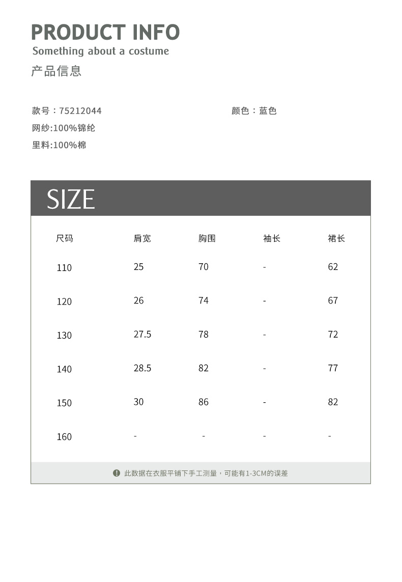 参考身高: 110cm 120cm 130cm 140cm 150cm