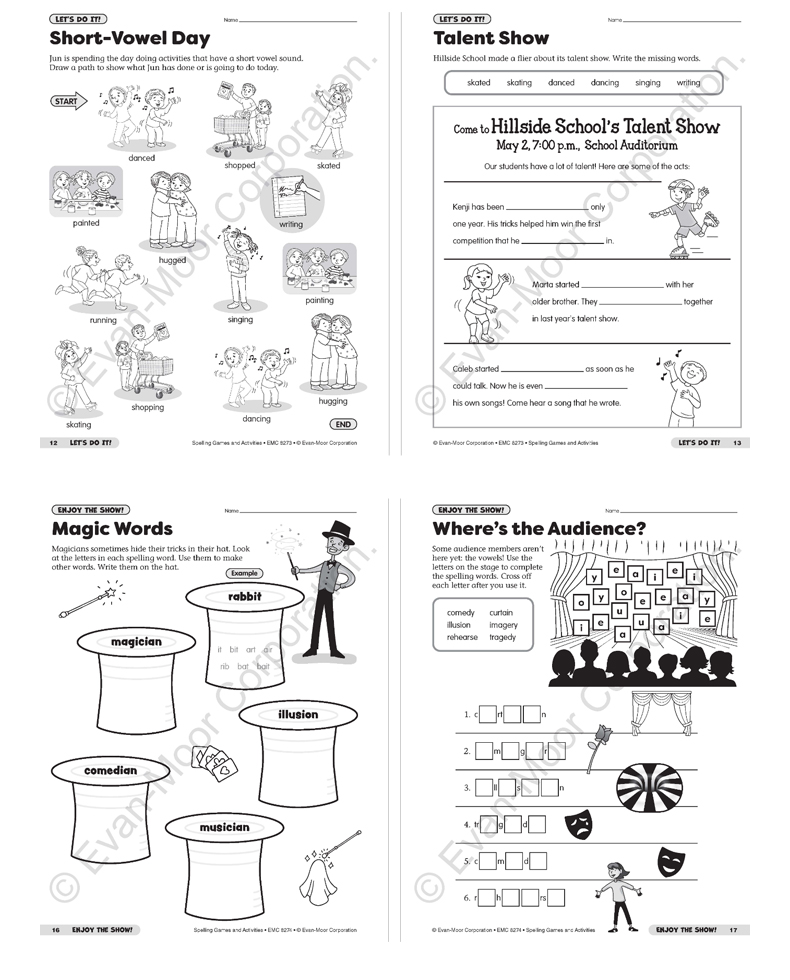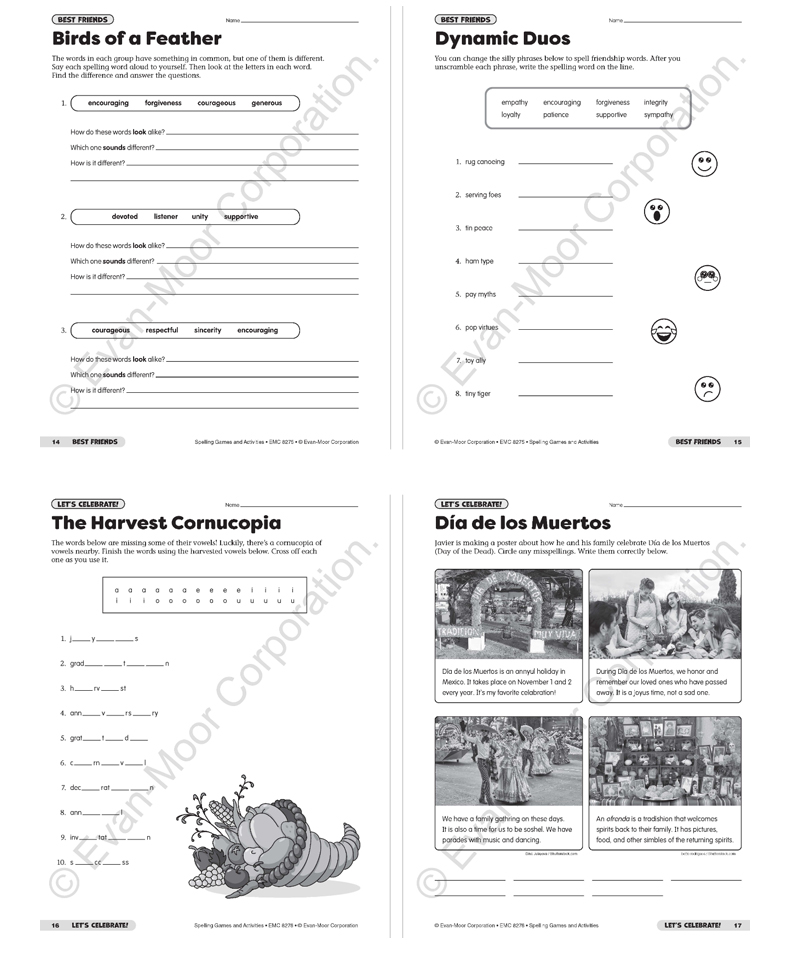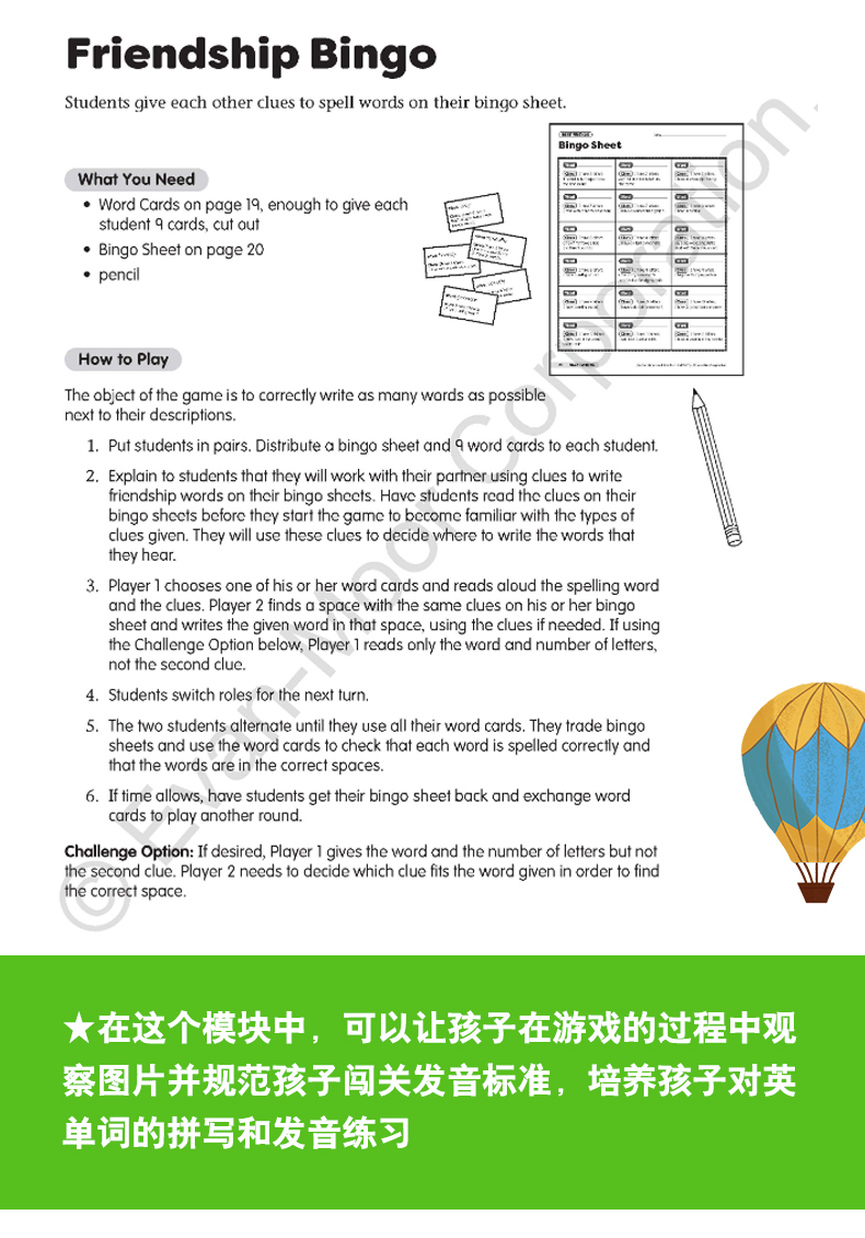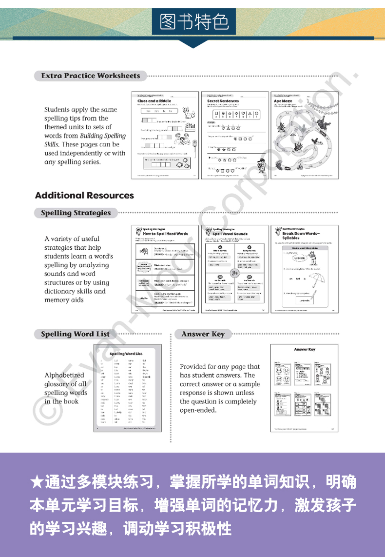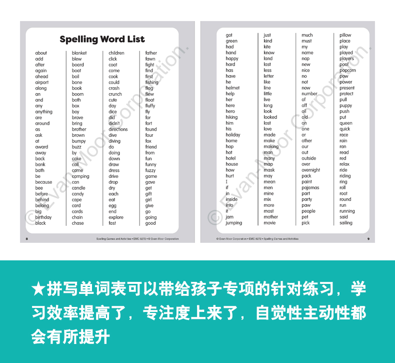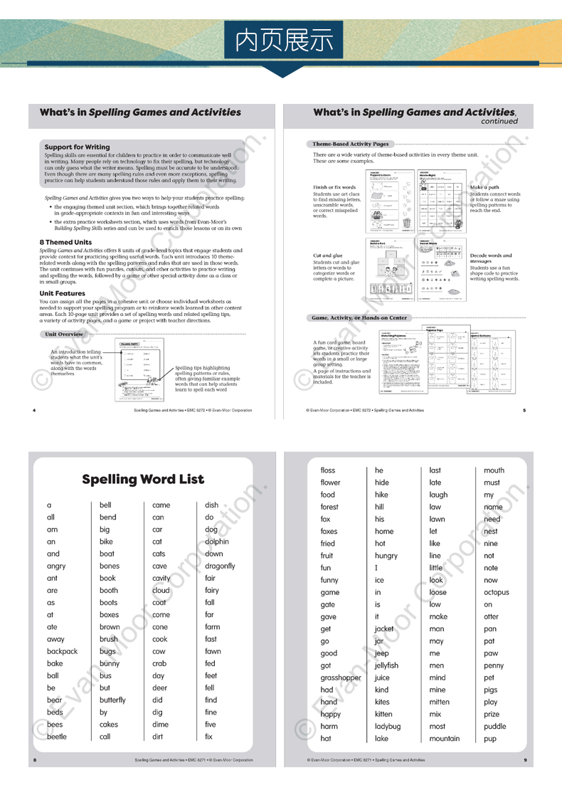 Evan-Moor Spelling Games and Activities Grade 1-6 拼写游戏和活动(教师版) 美国加州教辅 evanmoor