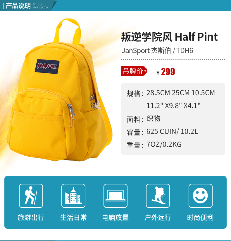JANSPORT迷你时尚双背包 TDH6 69E 黄色
