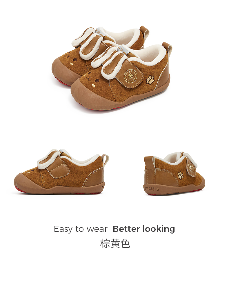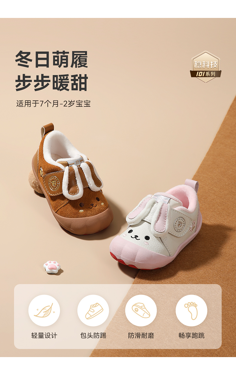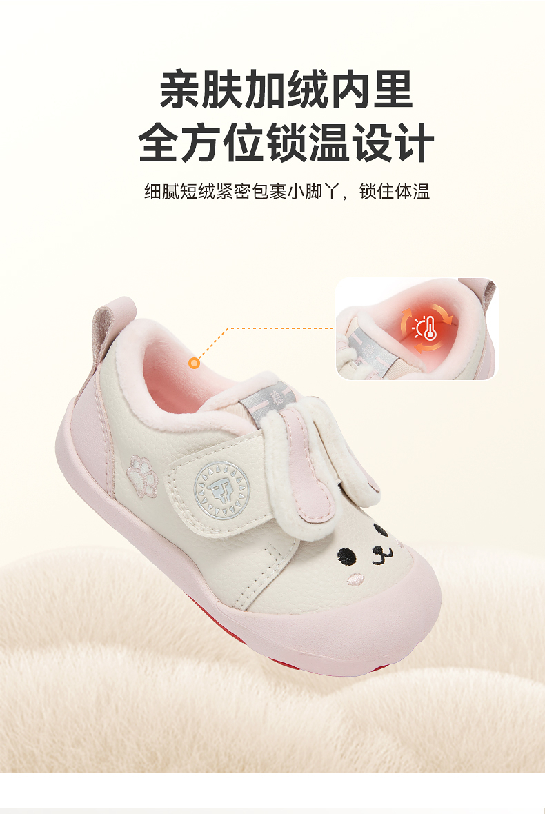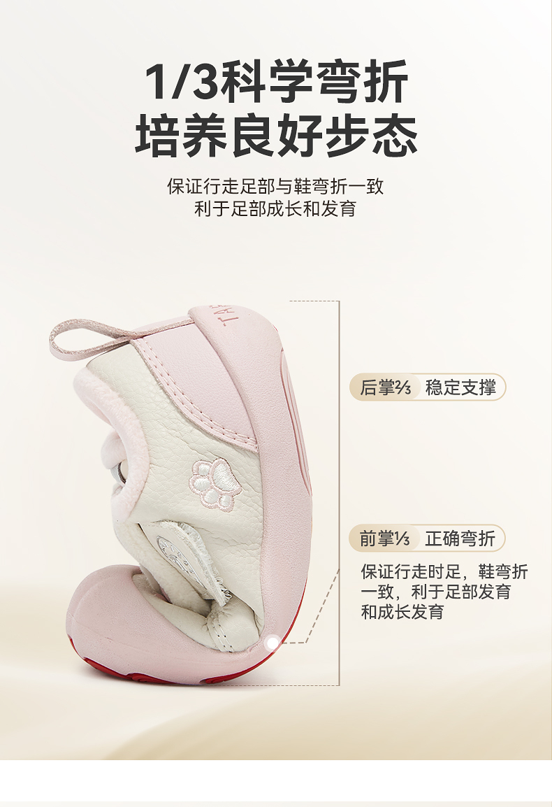 泰兰尼斯101冬季新款步前鞋男宝宝牛皮婴儿鞋加绒保暖女童赤足鞋T24B5D6665