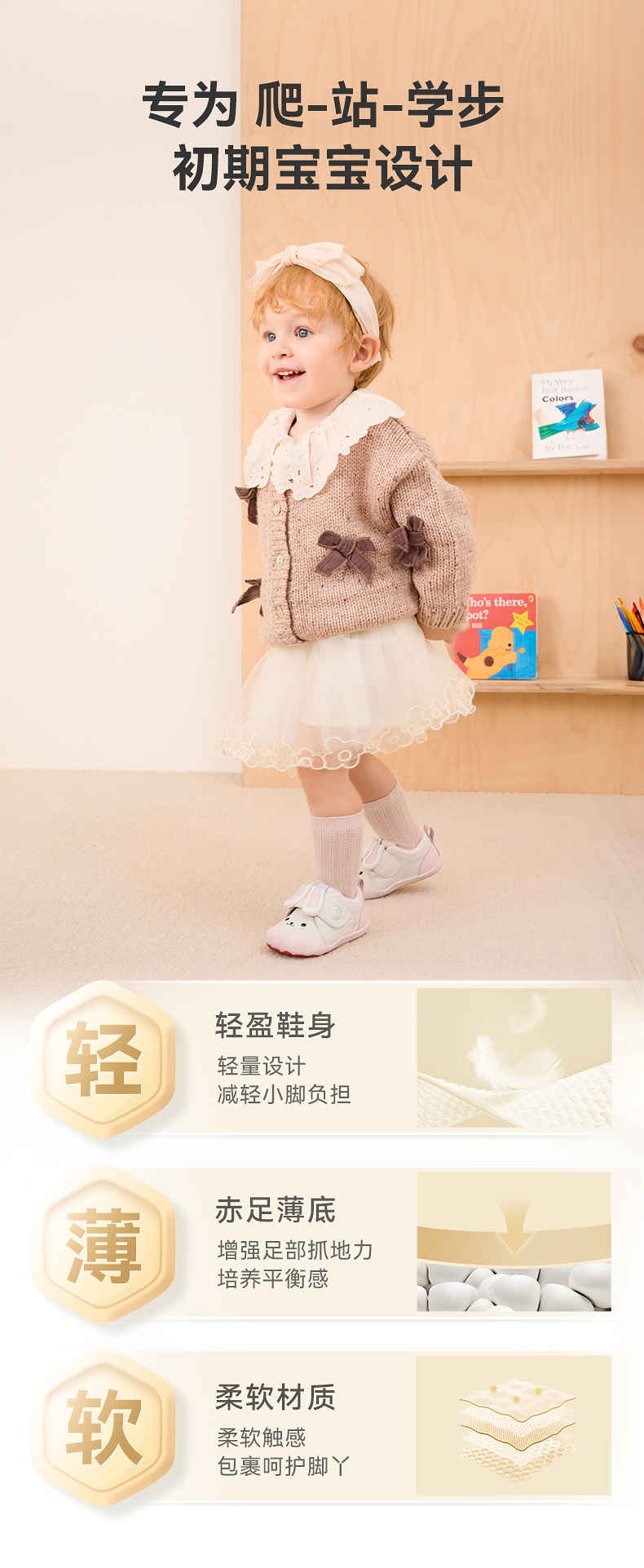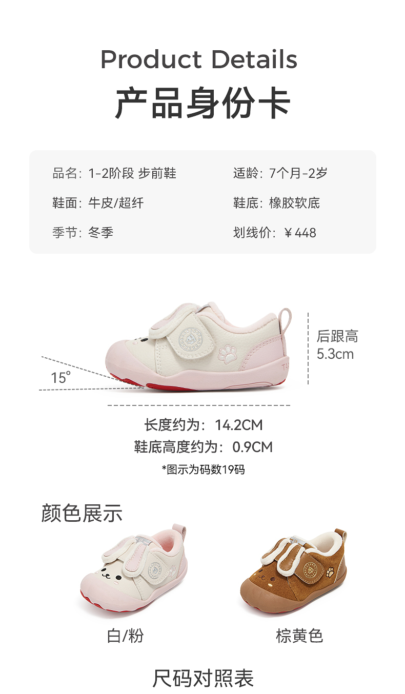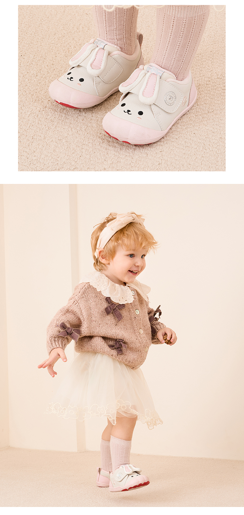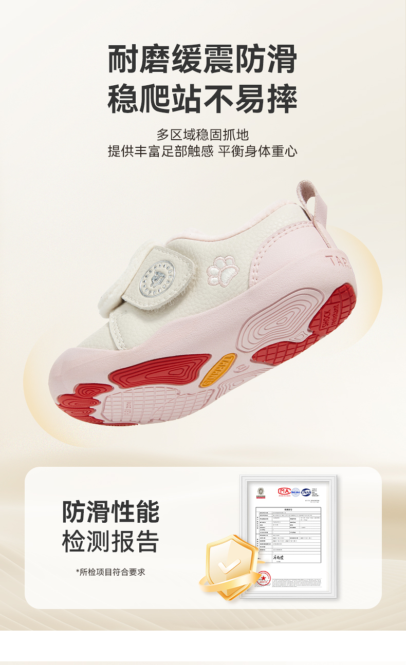 泰兰尼斯101冬季新款步前鞋男宝宝牛皮婴儿鞋加绒保暖女童赤足鞋T24B5D6665