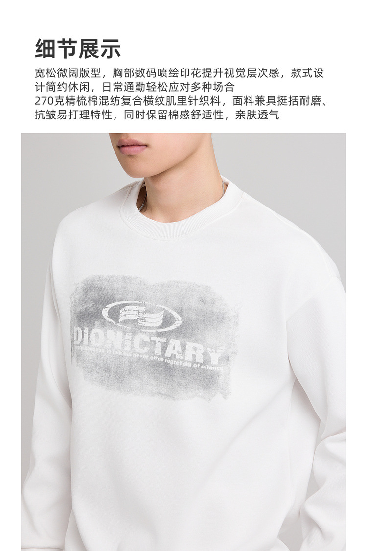 墨麦客喷绘印花休闲卫衣男2025秋季新款精梳棉混纺男士卫衣55798