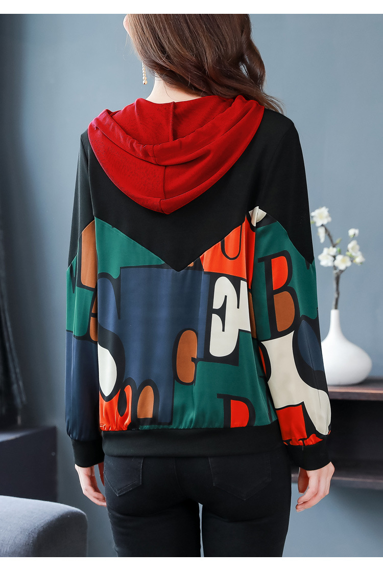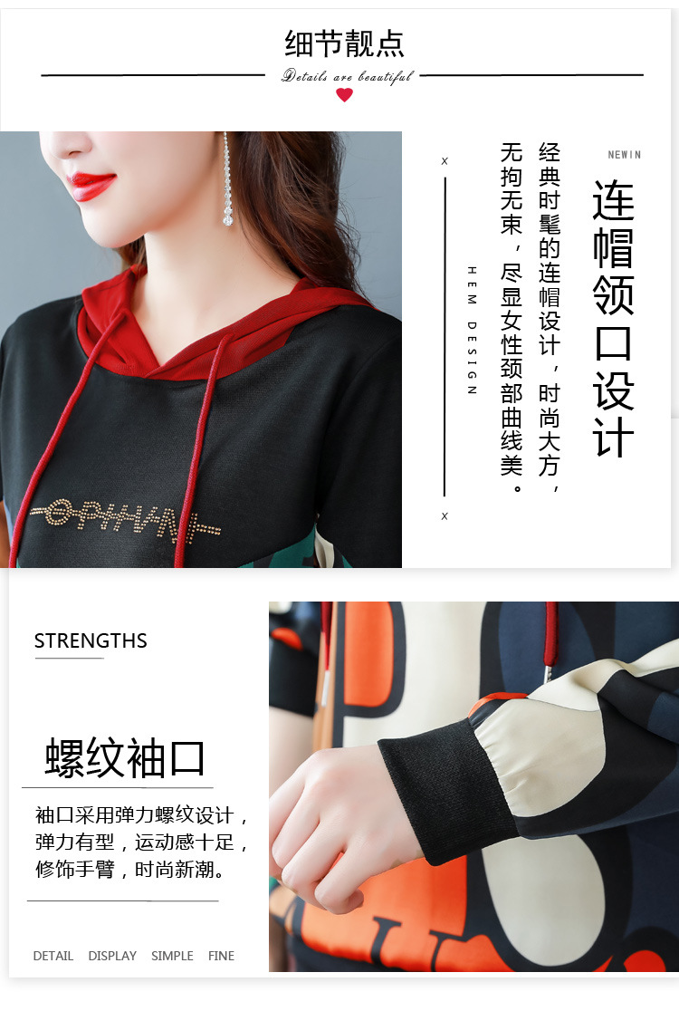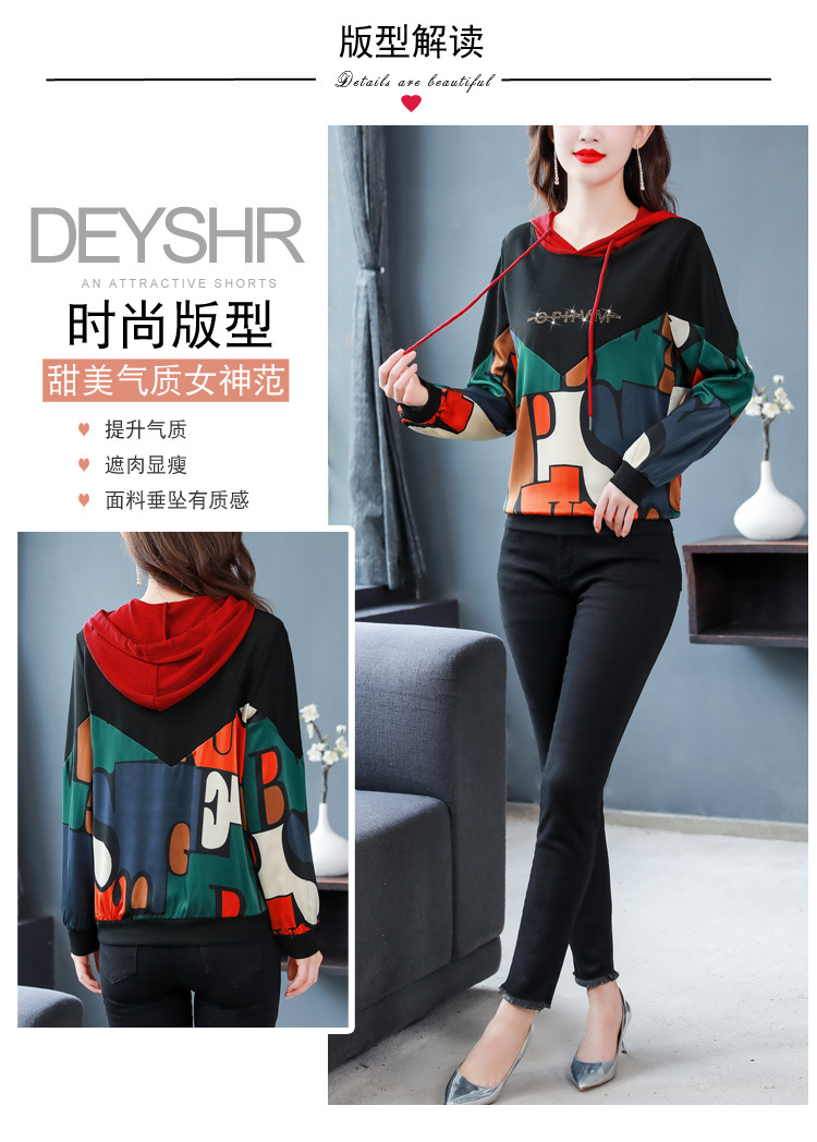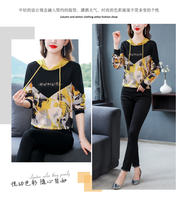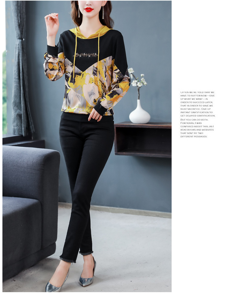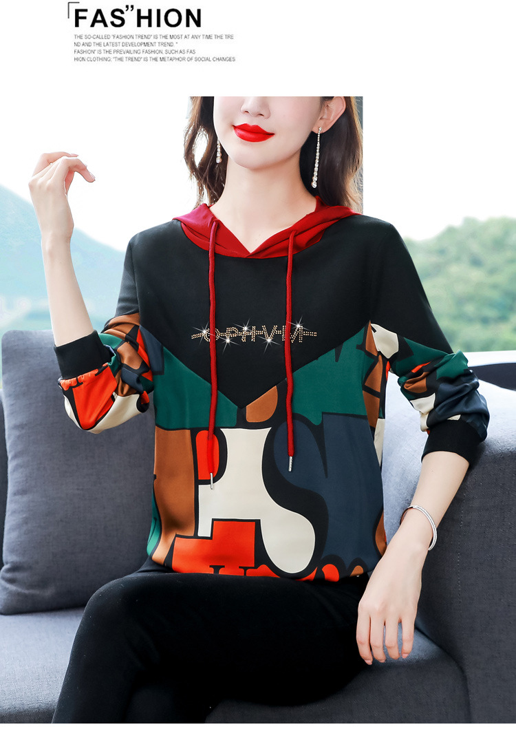 新款时尚缎面拼接镶钻连帽卫衣打底衫宽松显瘦上衣KQL-D31M912