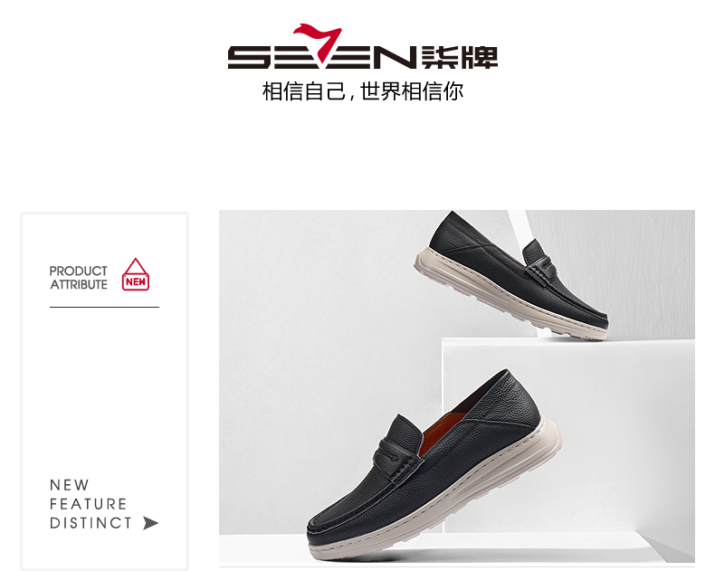 柒牌皮鞋男2024秋季新款轻便舒适日常百搭圆头套脚商务休闲懒人鞋 127X70090