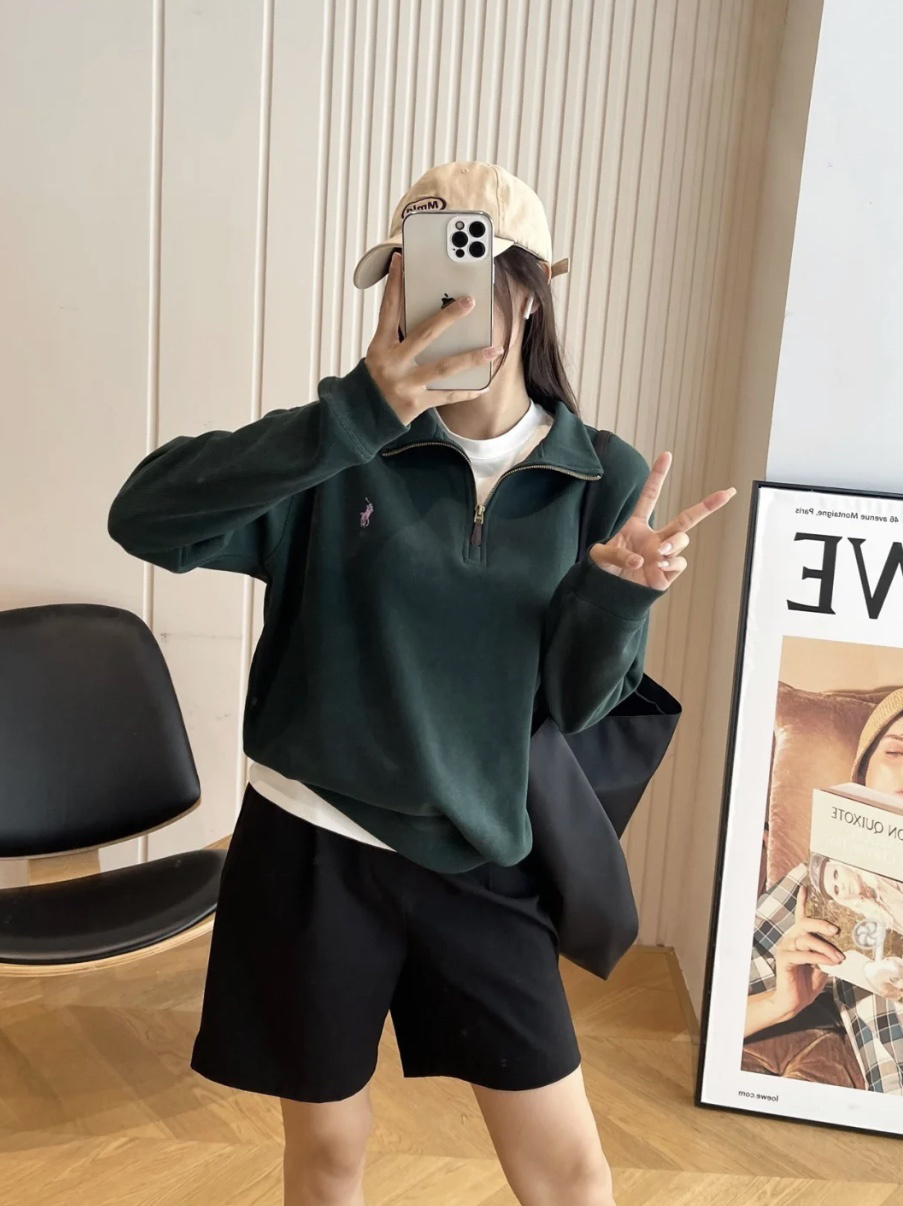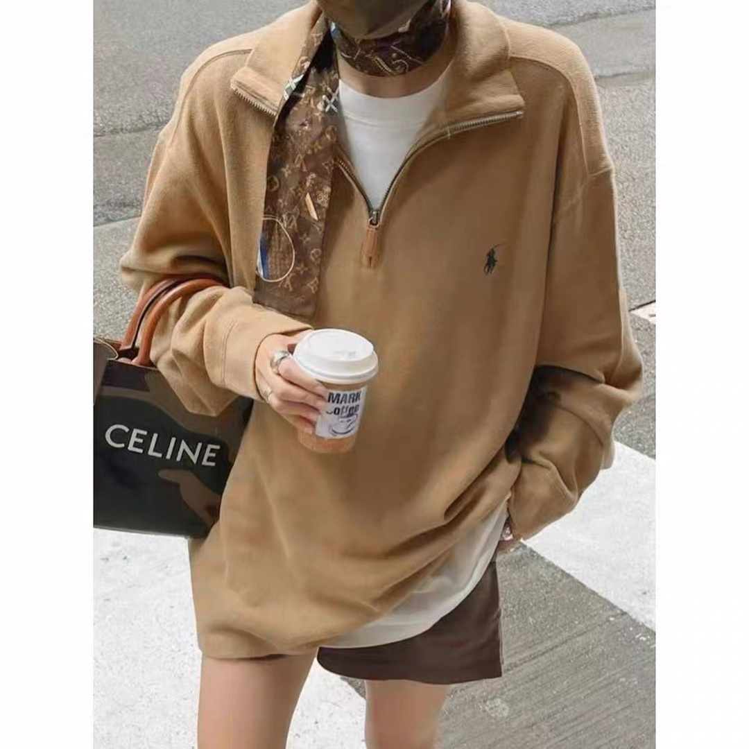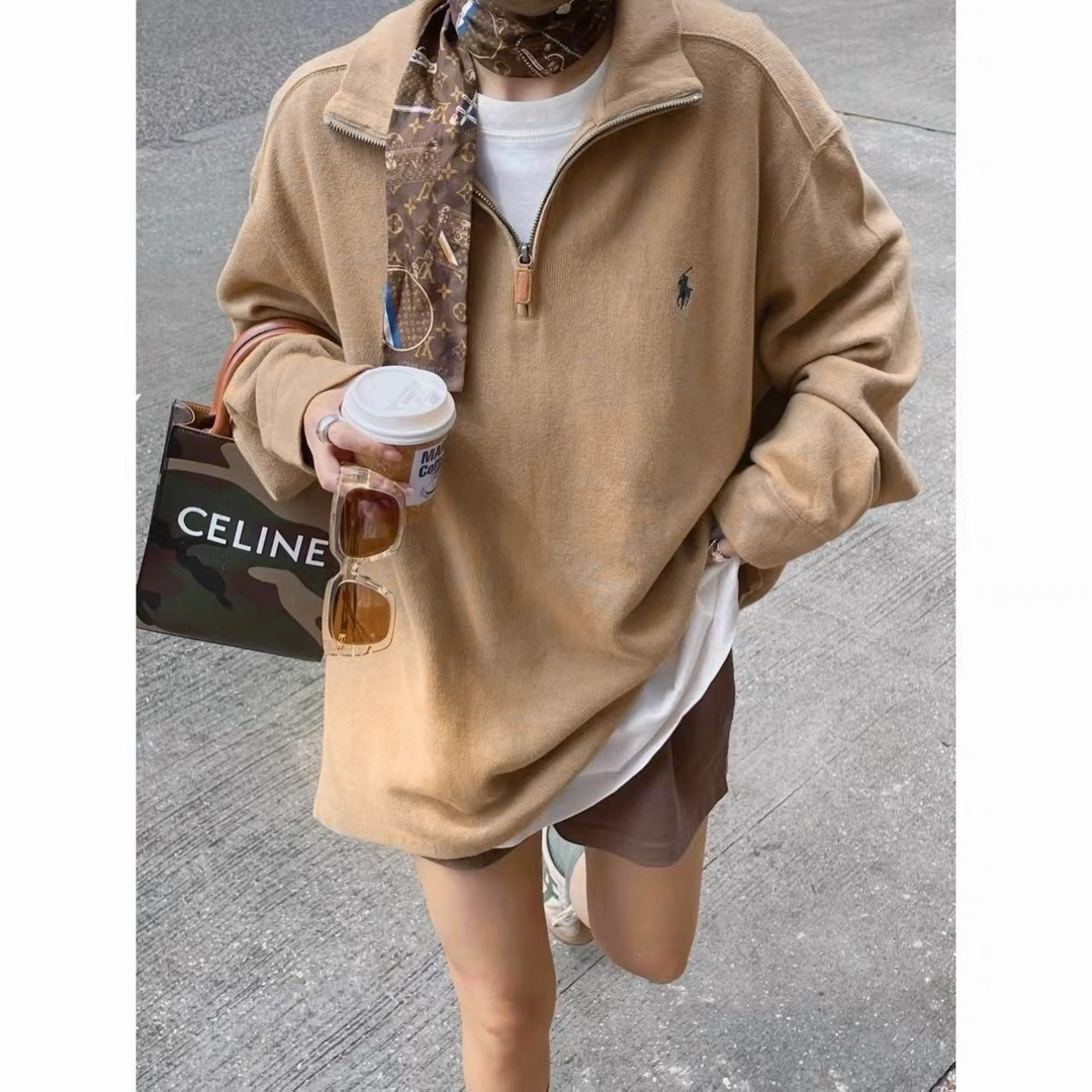 简冰同款 RL半高领卫衣,男女同款复古翻领宽松休闲上衣,说实在的,这个半拉链古着卫衣,今年真的火爆到难以自持,自带英式复古的调调,不单单是因为好看,相当的有设计感,又能完美解决你的日常搭配,手感也很软糯,不扎不戳,简约又百搭的美式复古高领半拉链卫衣,随便套一下,时尚指数直线飙升
