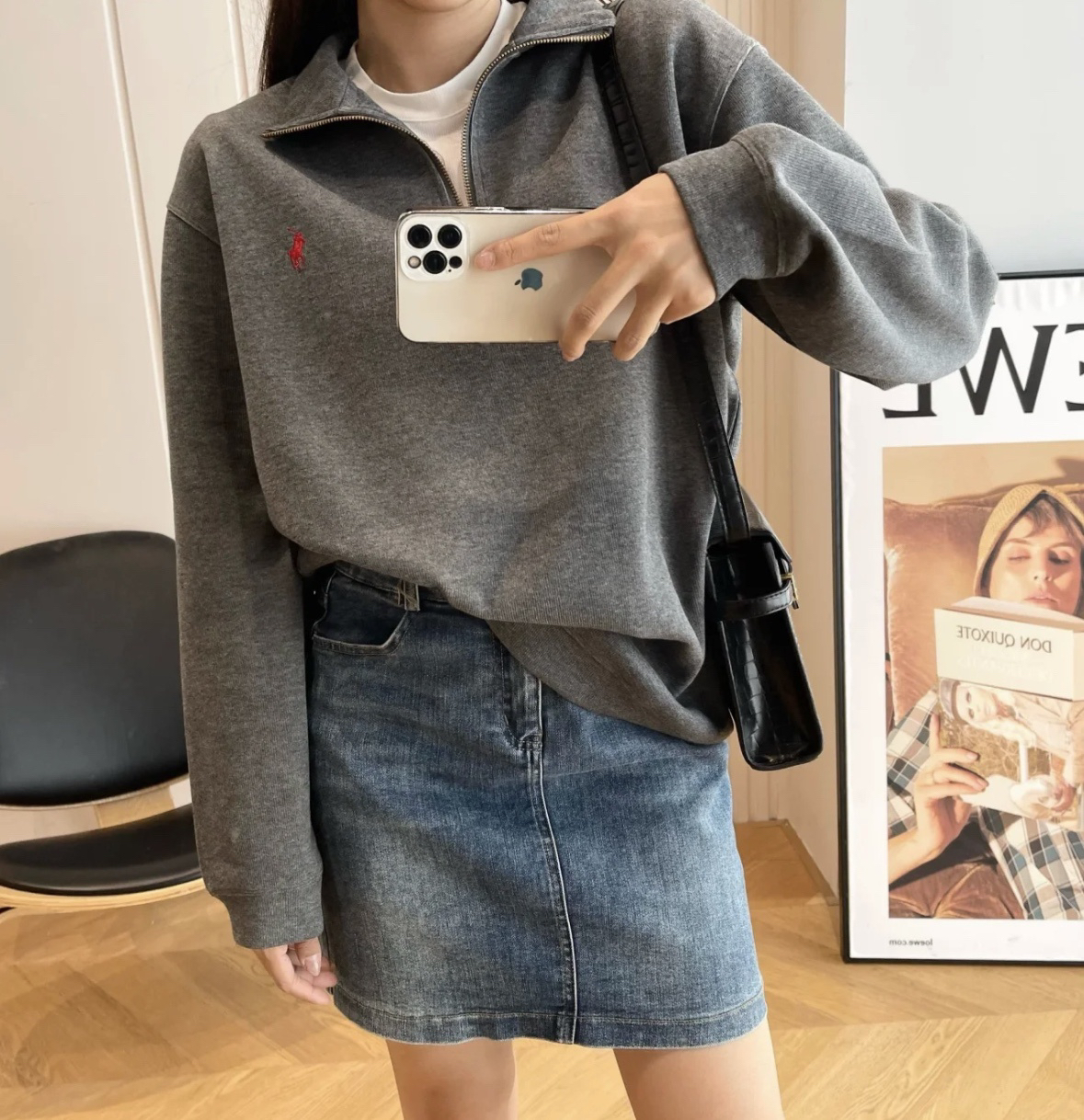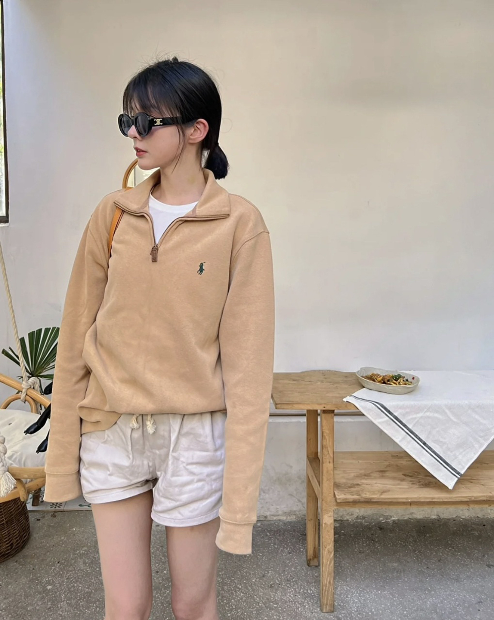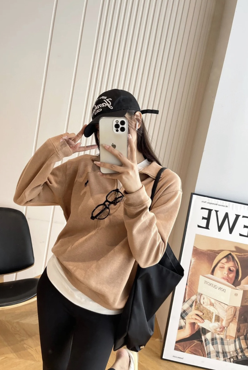 简冰同款 RL半高领卫衣,男女同款复古翻领宽松休闲上衣,说实在的,这个半拉链古着卫衣,今年真的火爆到难以自持,自带英式复古的调调,不单单是因为好看,相当的有设计感,又能完美解决你的日常搭配,手感也很软糯,不扎不戳,简约又百搭的美式复古高领半拉链卫衣,随便套一下,时尚指数直线飙升