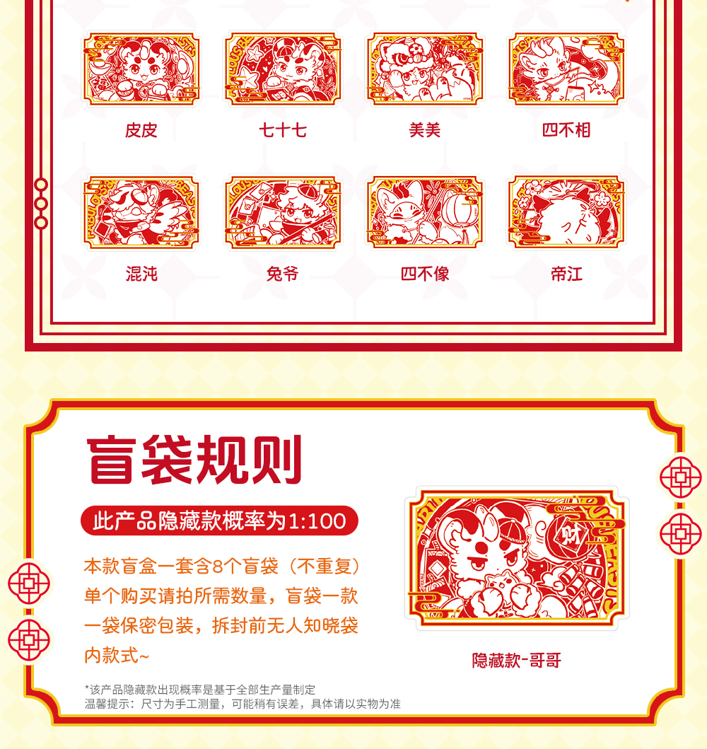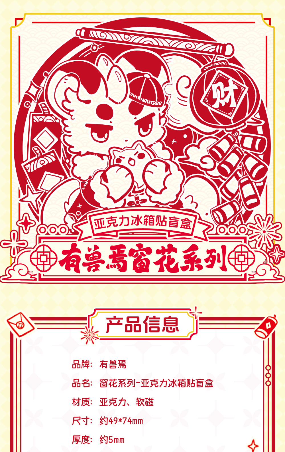 《非人哉官方店》有兽焉窗花系列亚克力冰箱贴盲盒新年创意装饰磁贴