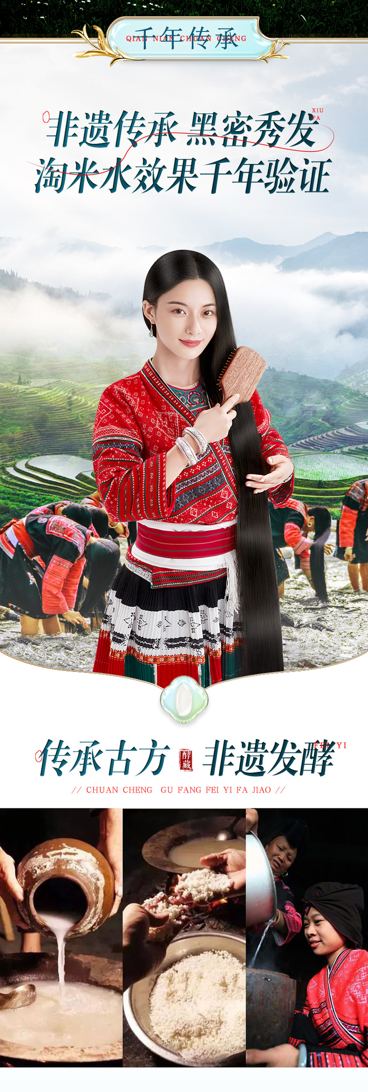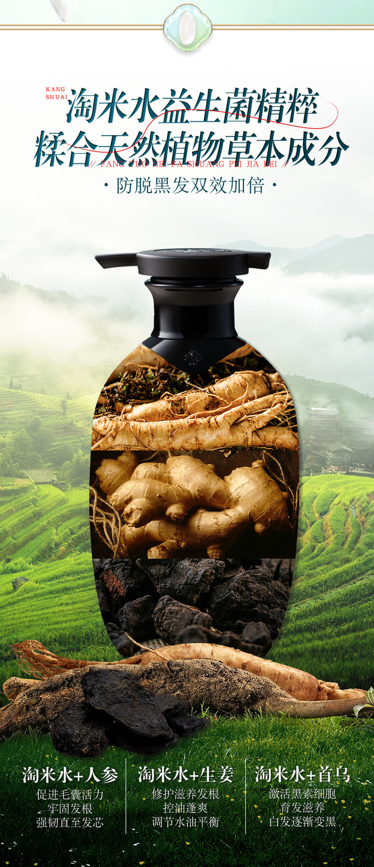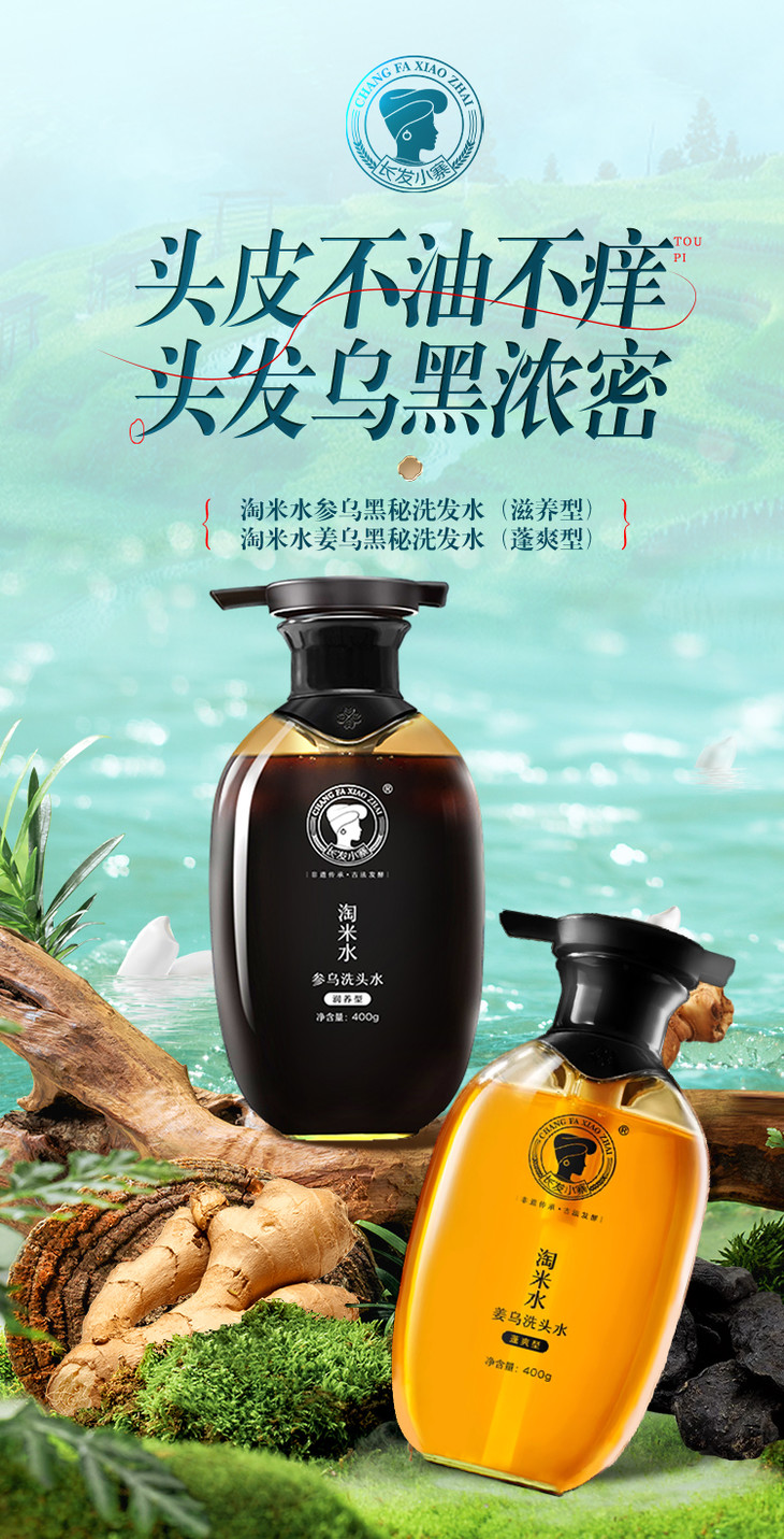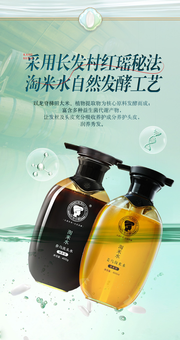 参乌淘米水洗发水400g/瓶 送洗发水+养发乳 A-2885-1 长发小寨