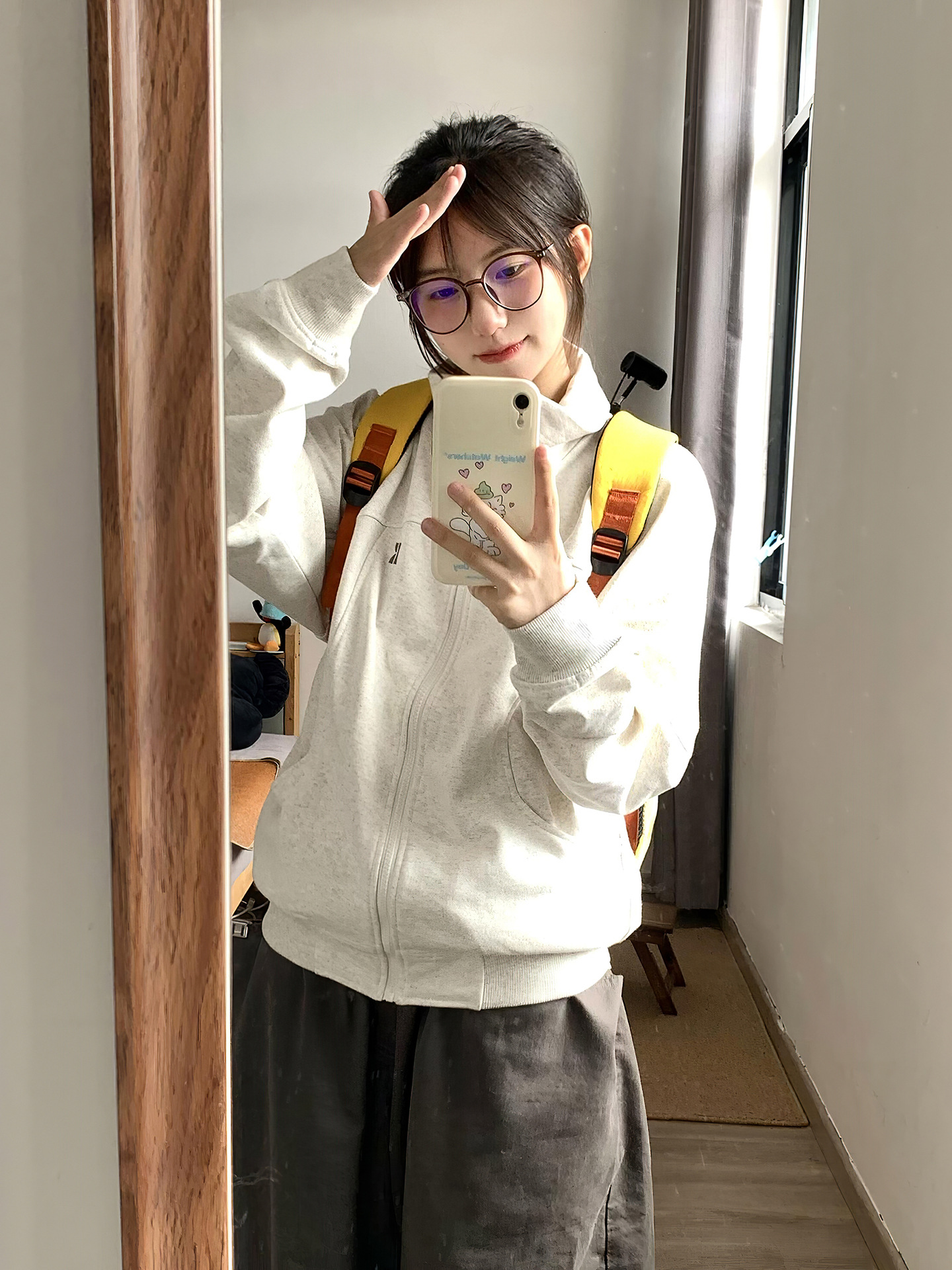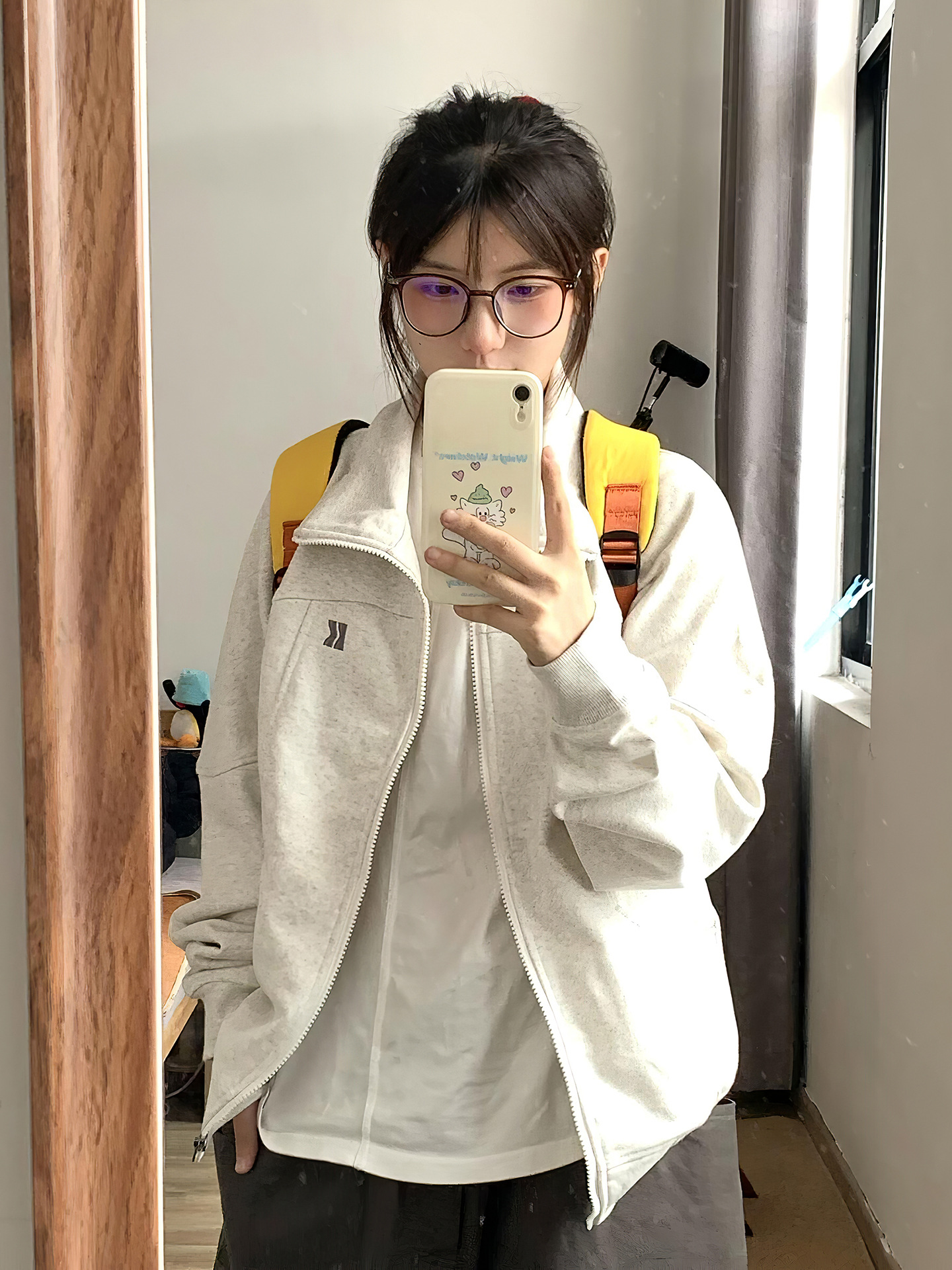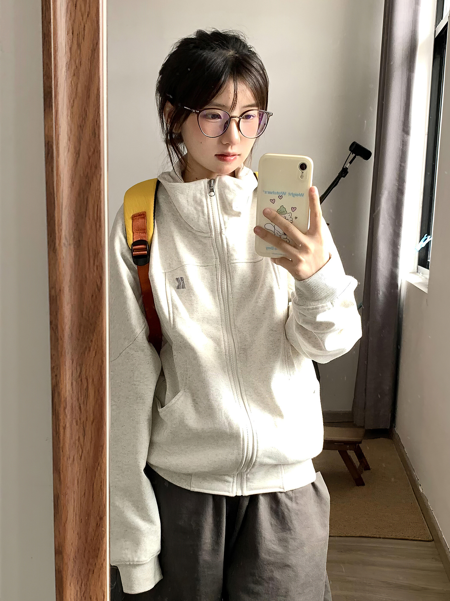 立领开衫卫衣外套女2026新款春秋季美式慵懒chic休闲夹克拉链上衣
