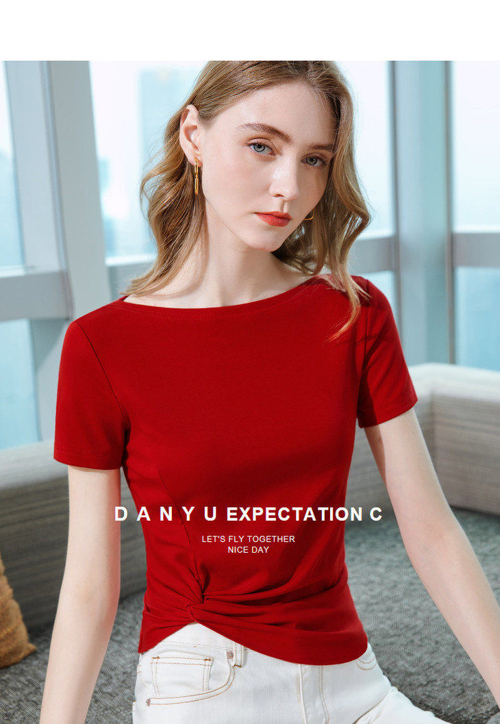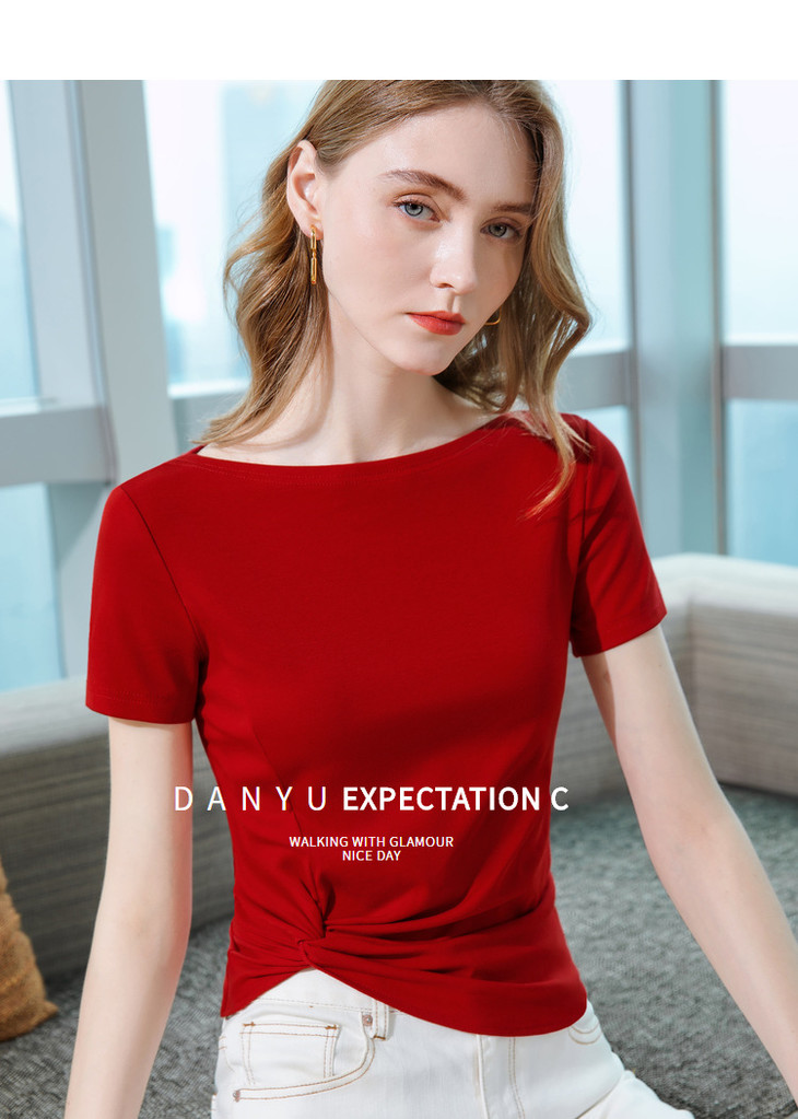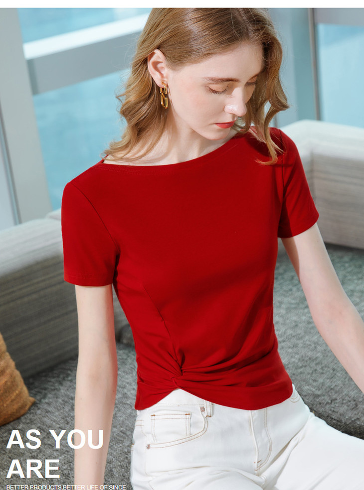 短袖t恤夏一字肩棉体恤SG-T2X2318