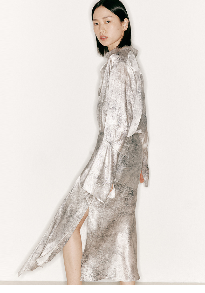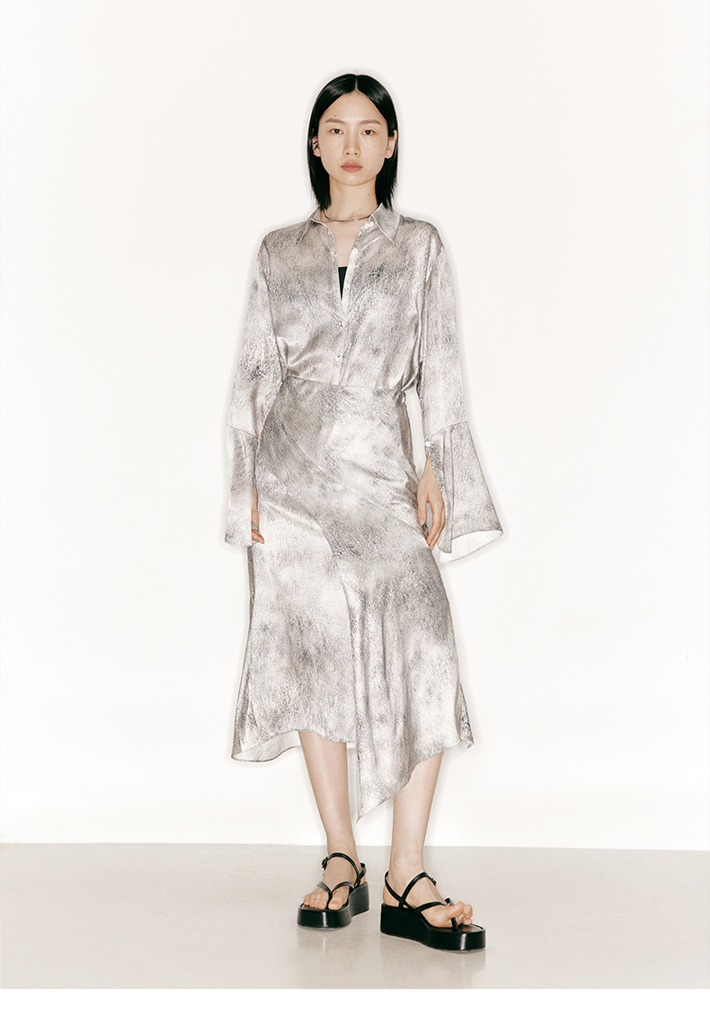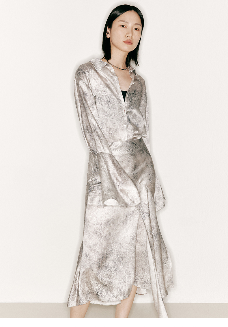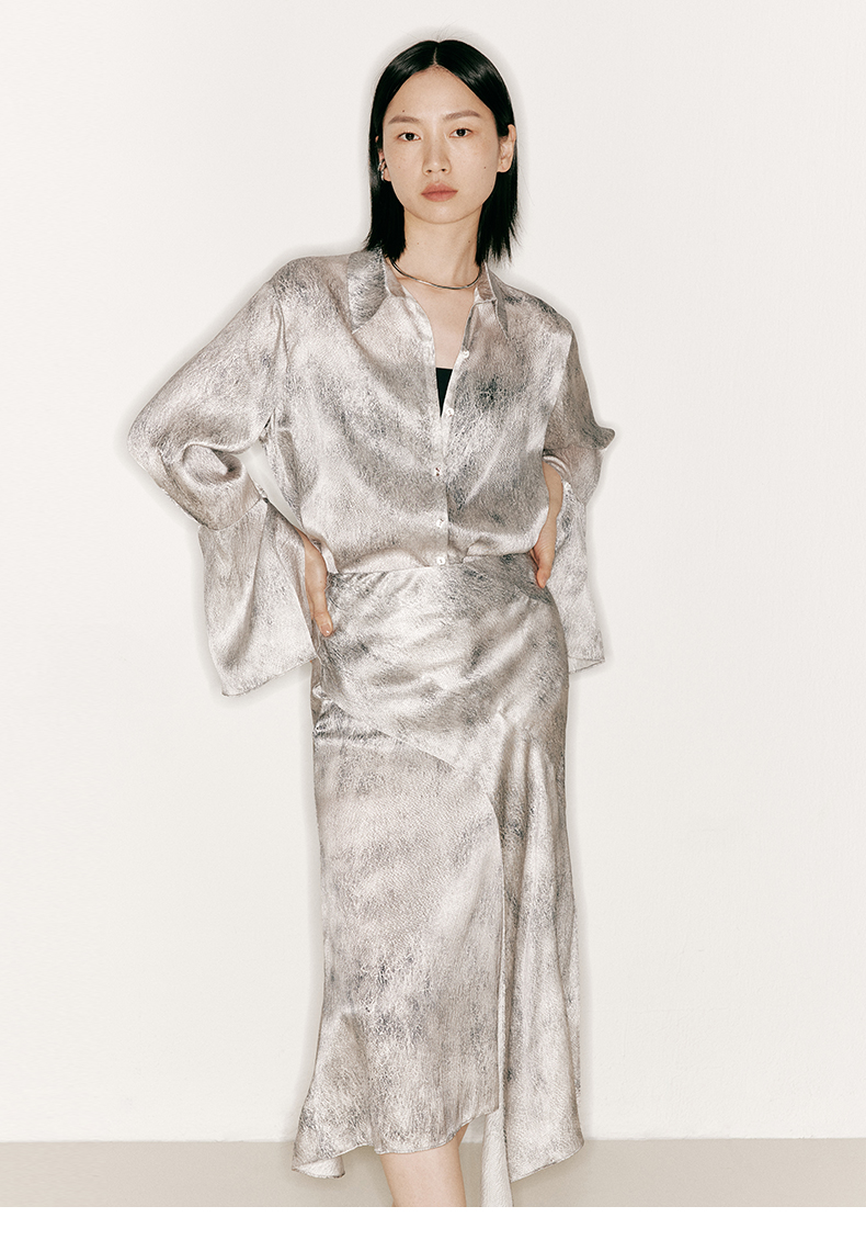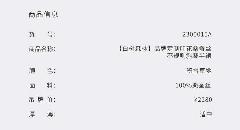 【白树森林】品牌定制印花桑蚕丝不规则斜裁半裙/2300015A