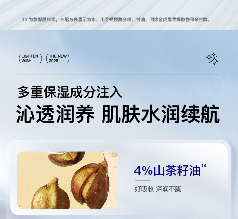 - 护肤新理念,吸收是关键。光希Lightenwish,科技护肤领先者。脂质体纳米微球,活性成分透皮吸收,直达肌底高效养肤。遇见光希,封存美丽。