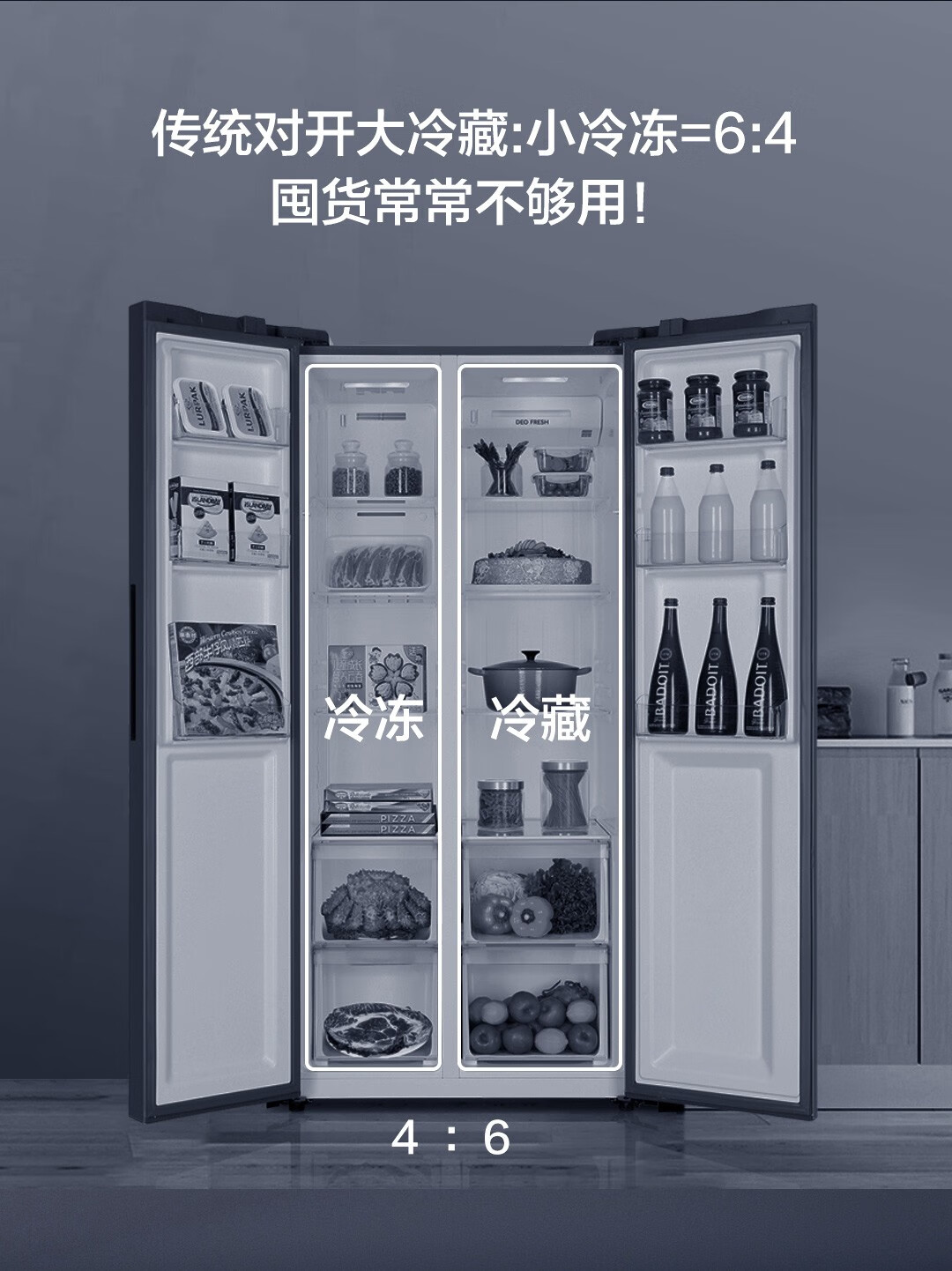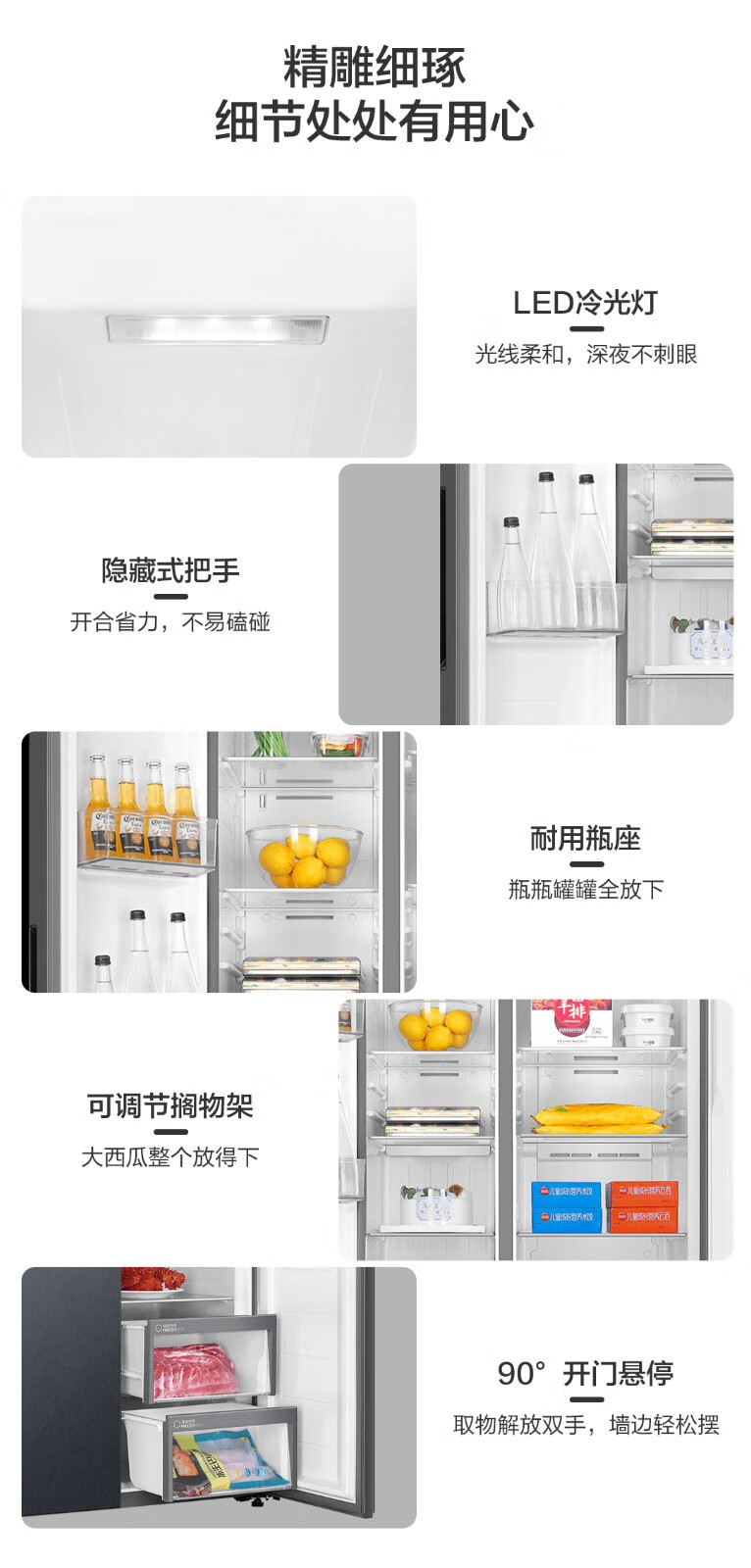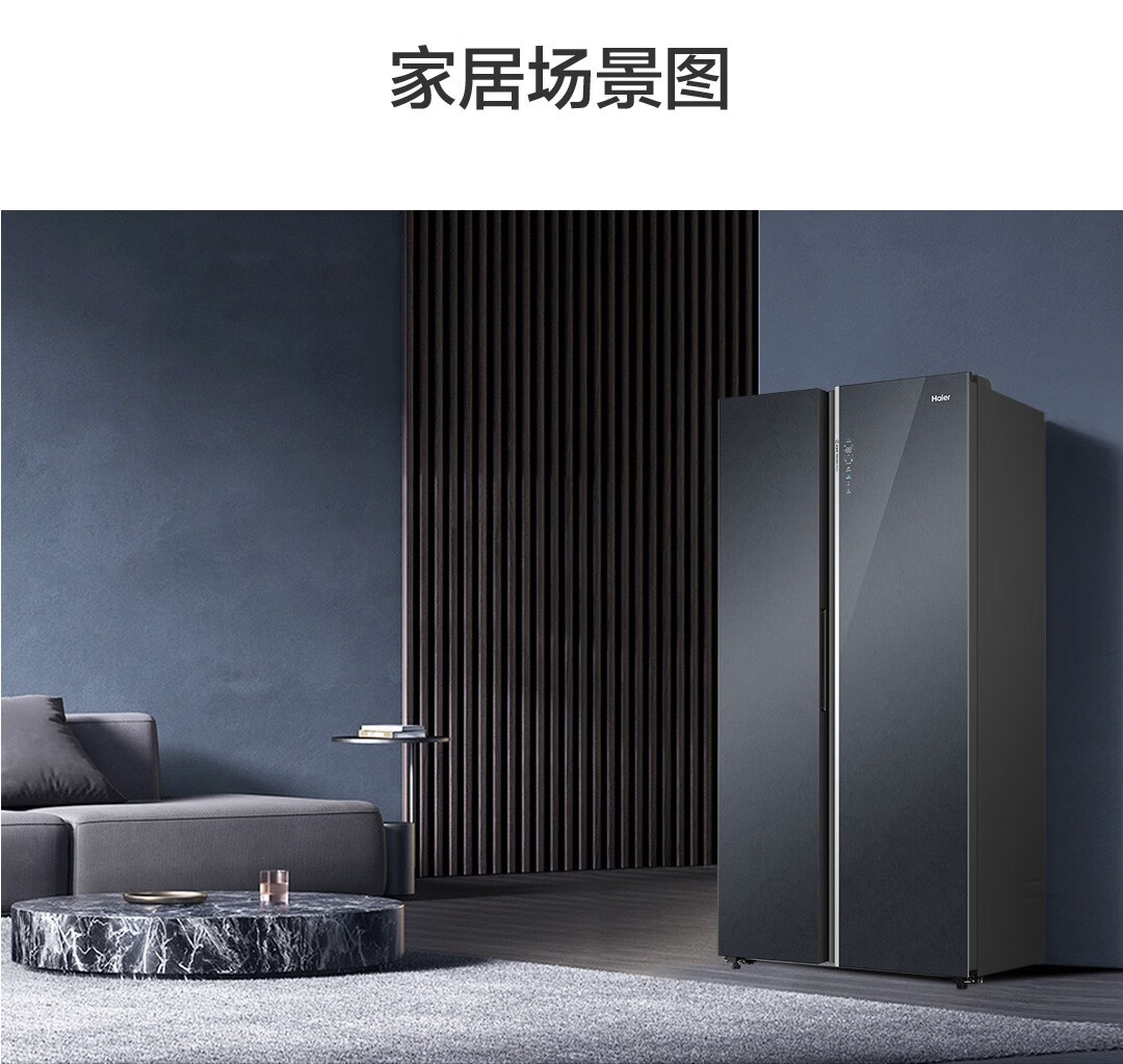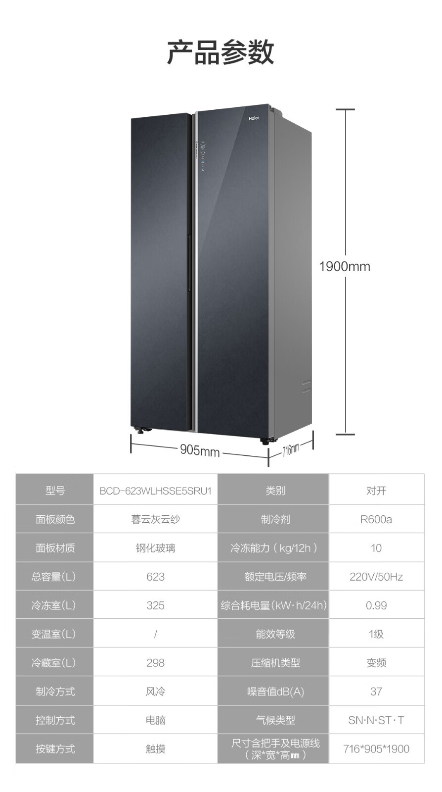 海尔(Haier)冰箱一级能效 彩晶玻璃面板系列 风冷无霜电冰箱家用大容量 智能双变频 623升暮云灰【阻氧干湿分储+黑金净化除菌】