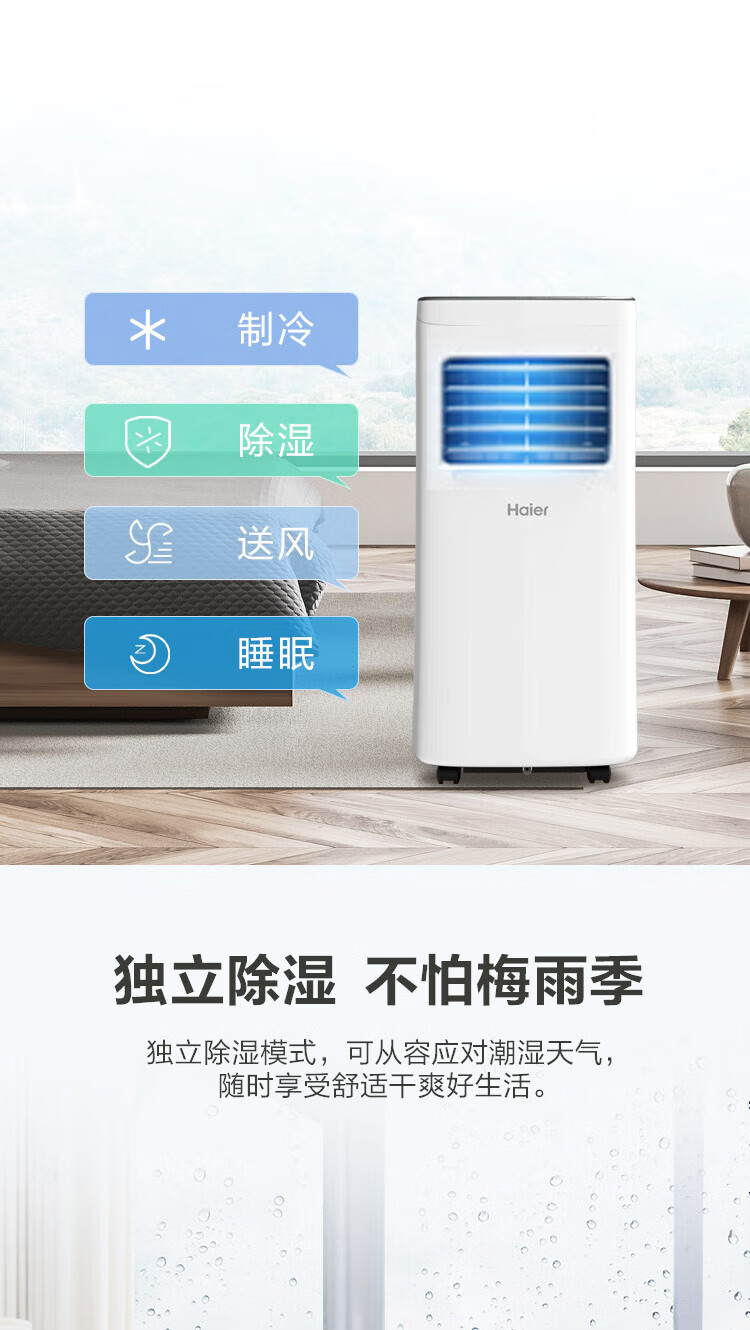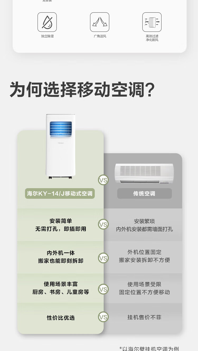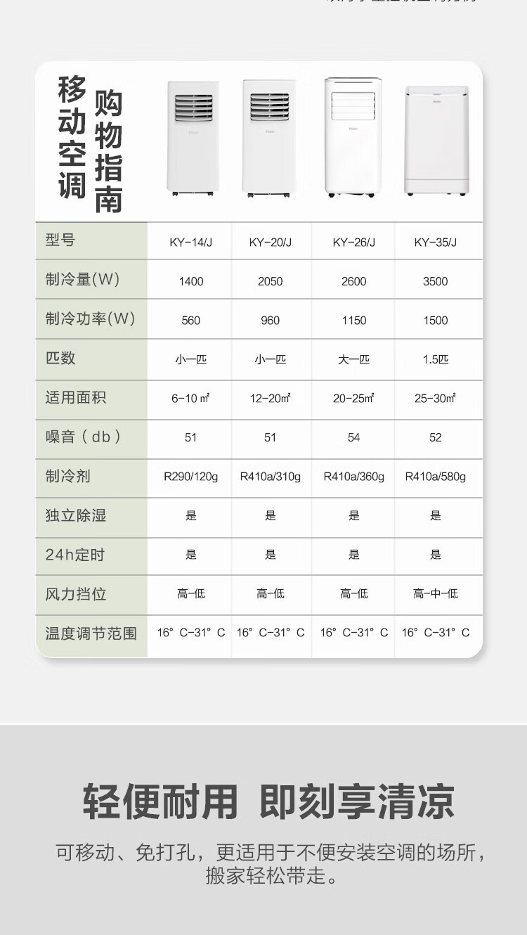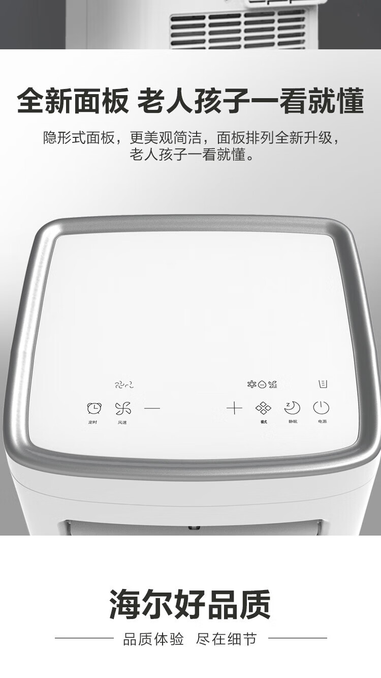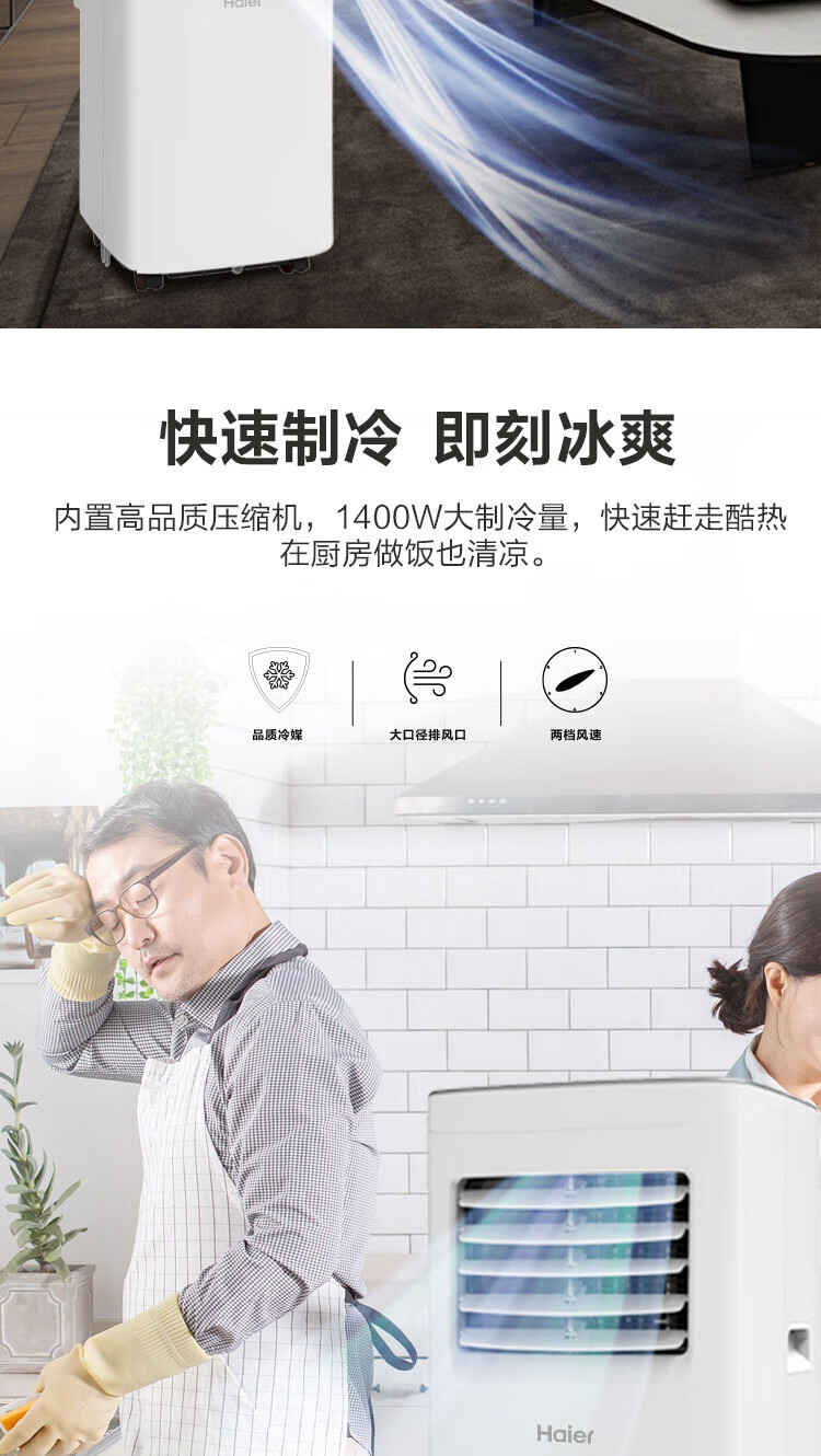 海尔(Haier)移动空调小1匹单冷 家用客厅厨房空调出租房空调一体机免挂机安装便携立式空调KY-14J 小1匹单冷(10㎡内)