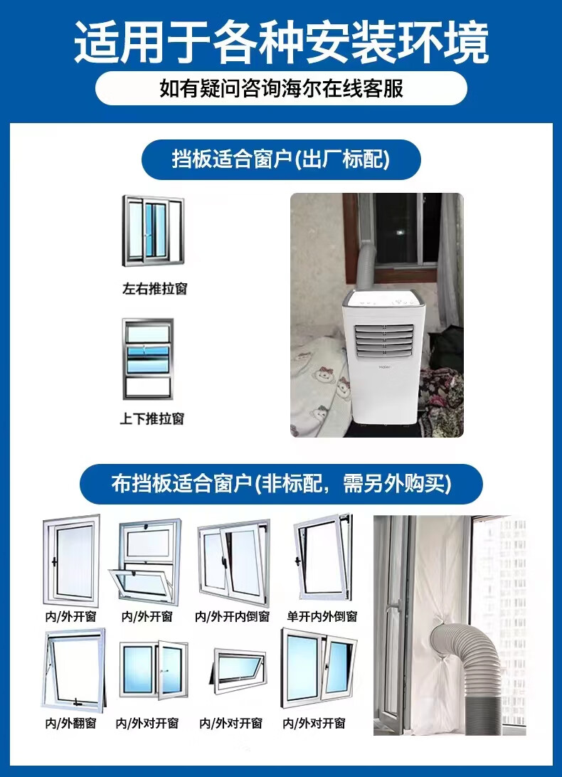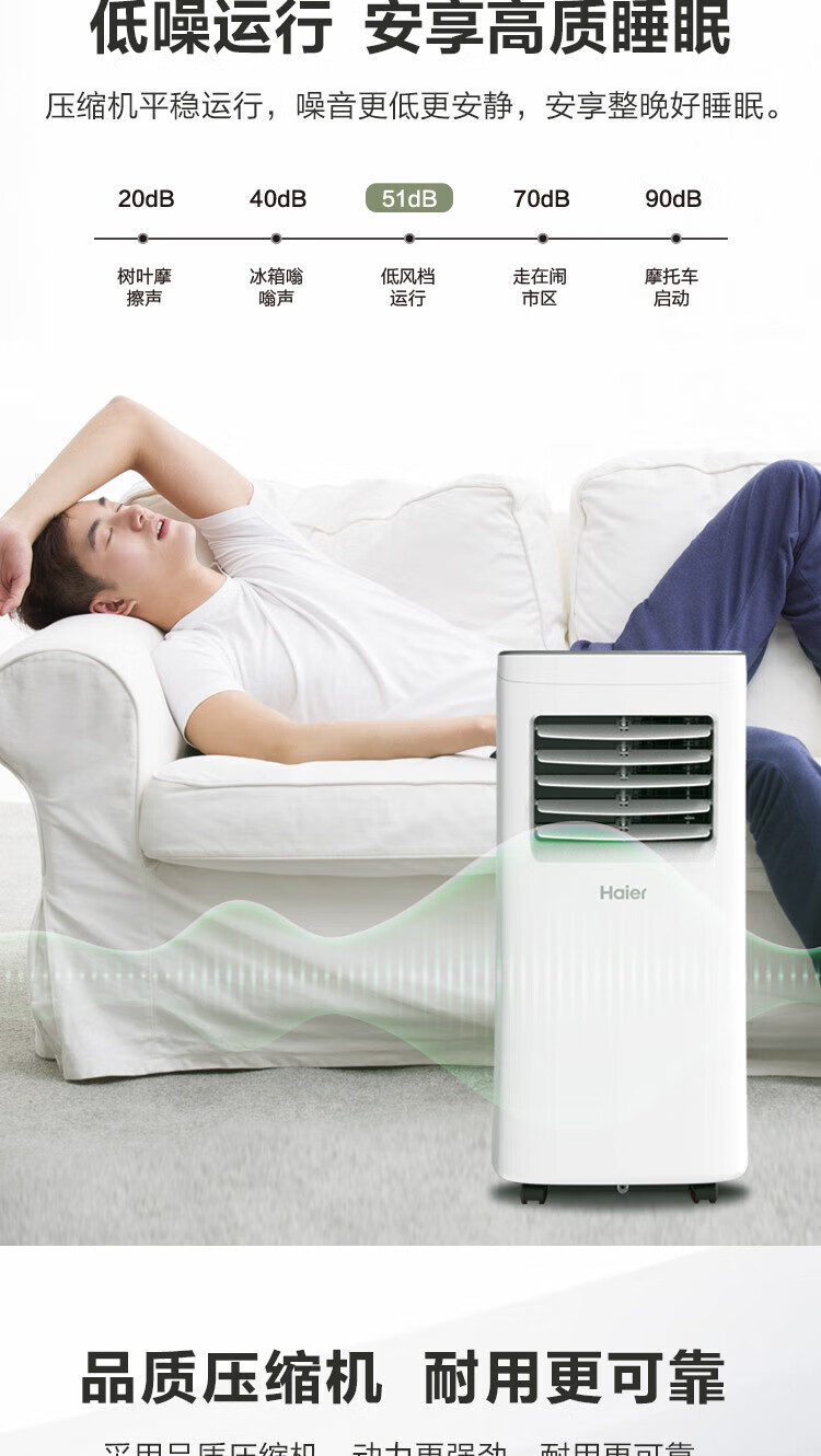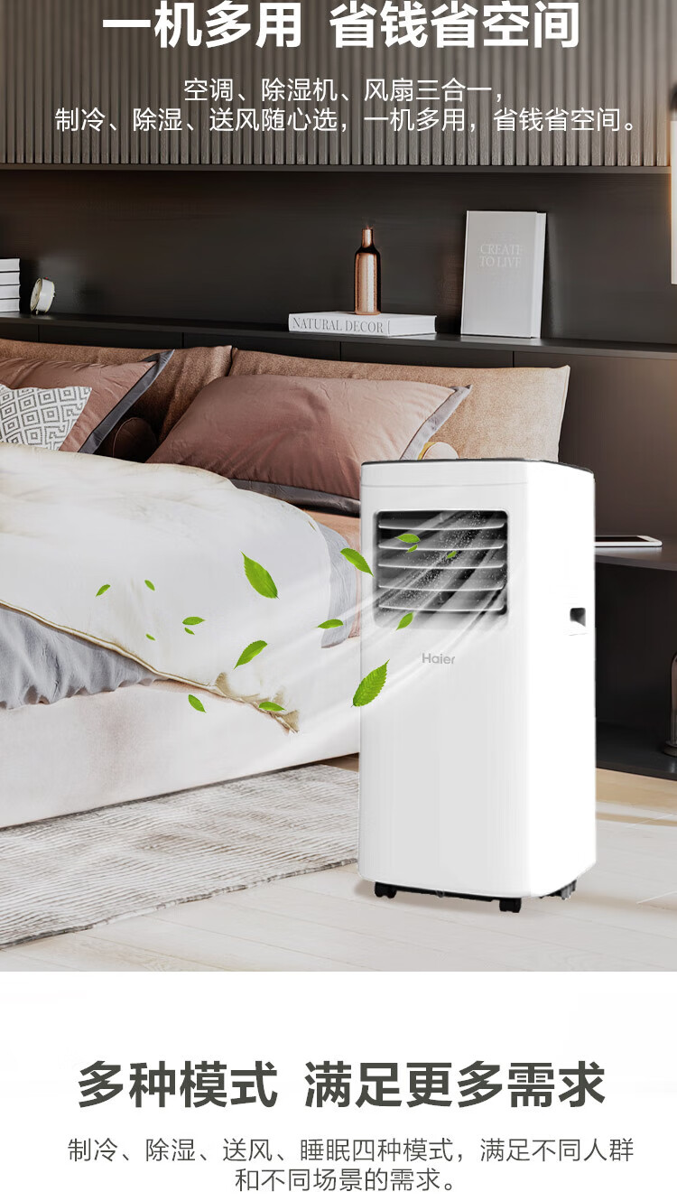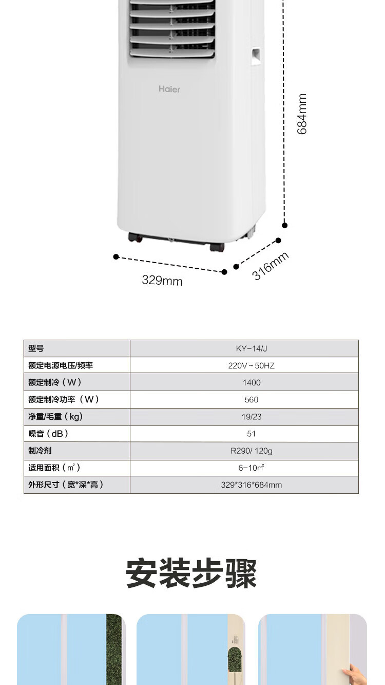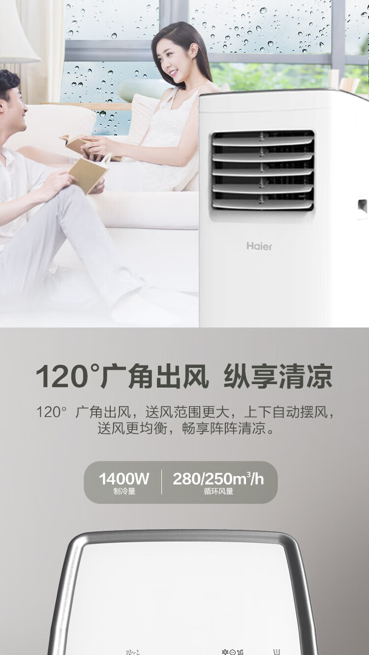 海尔(Haier)移动空调小1匹单冷 家用客厅厨房空调出租房空调一体机免挂机安装便携立式空调KY-14J 小1匹单冷(10㎡内)