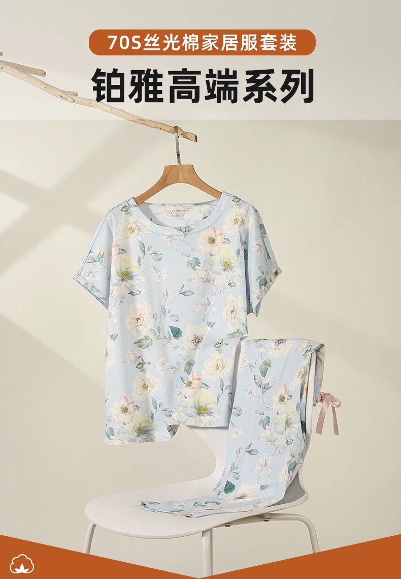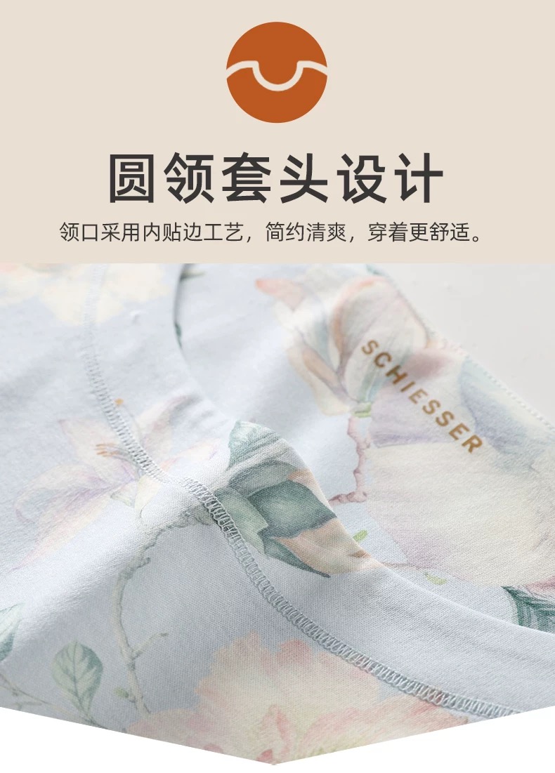 【70S100%丝光棉】SCHIESSER德国舒雅高端铂雅女士短袖七分裤套装100%高支双面丝光棉91/24773H