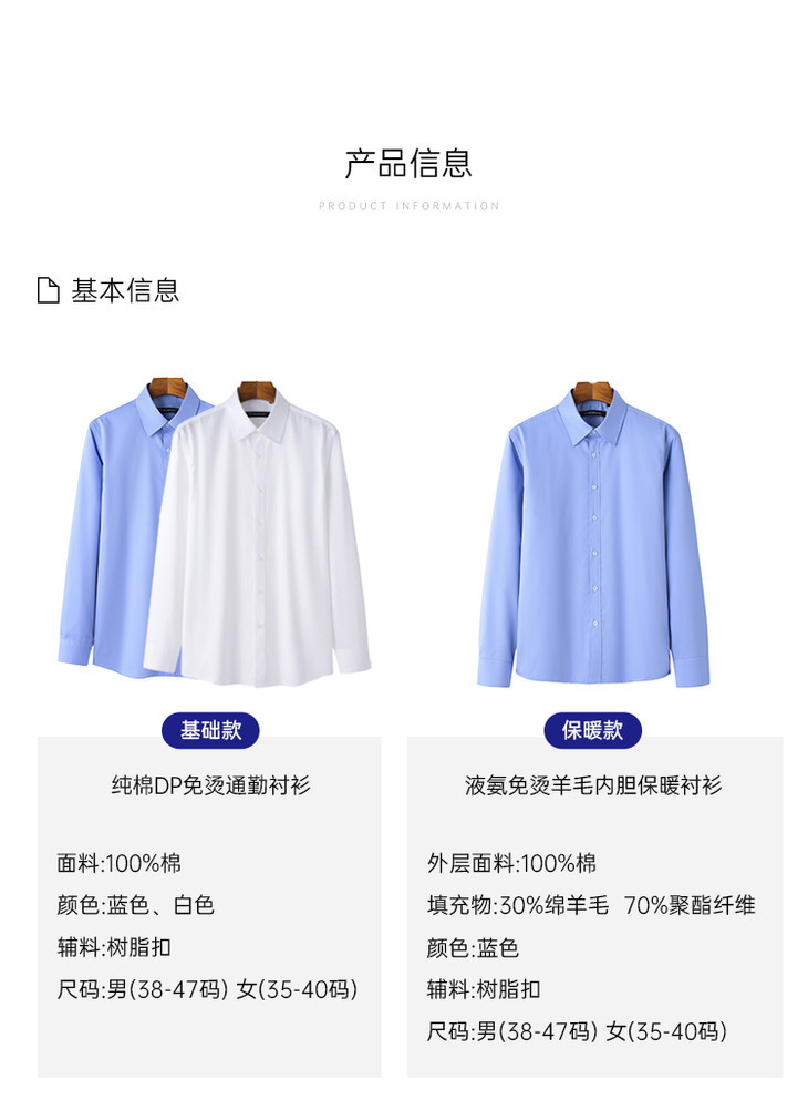 【蜀黍蓝】棉质通勤衬衫(DP免烫)男女款加厚外套免烫保暖衬衫