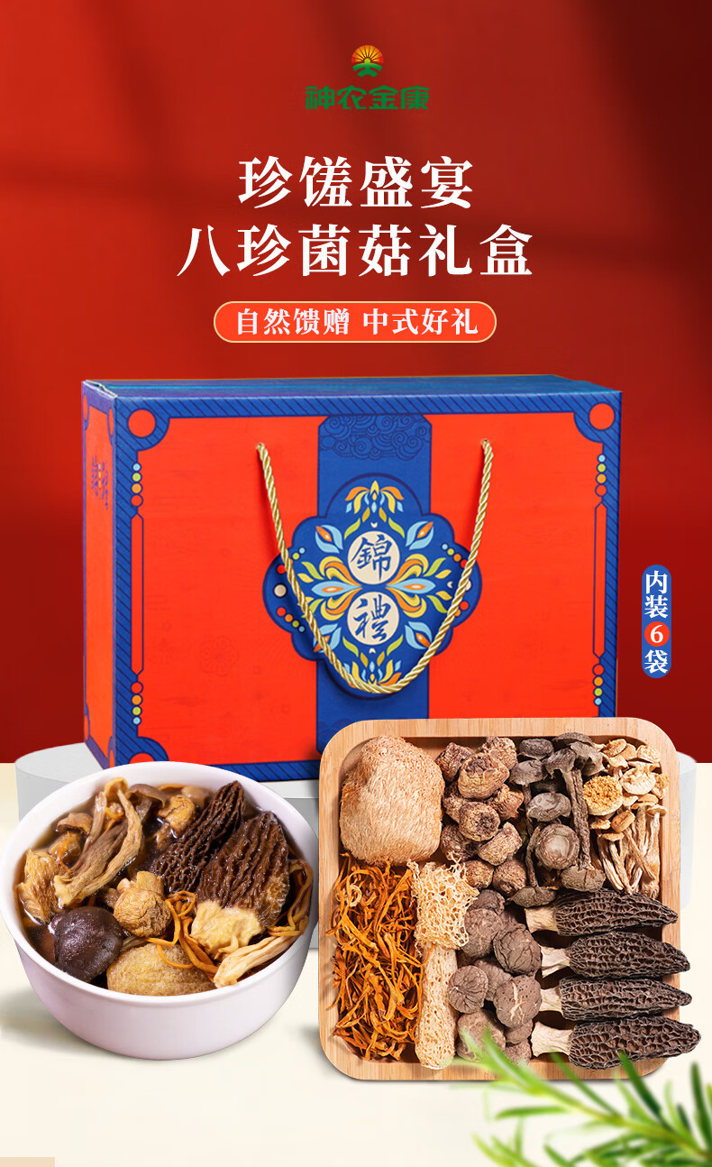 【中秋礼盒】神农金康 七彩菌汤包干货礼盒420g 羊肚菌姬松茸鹿茸菌菌菇煲汤材料新中式滋补礼 原生态真滋补 喝护家人健康
