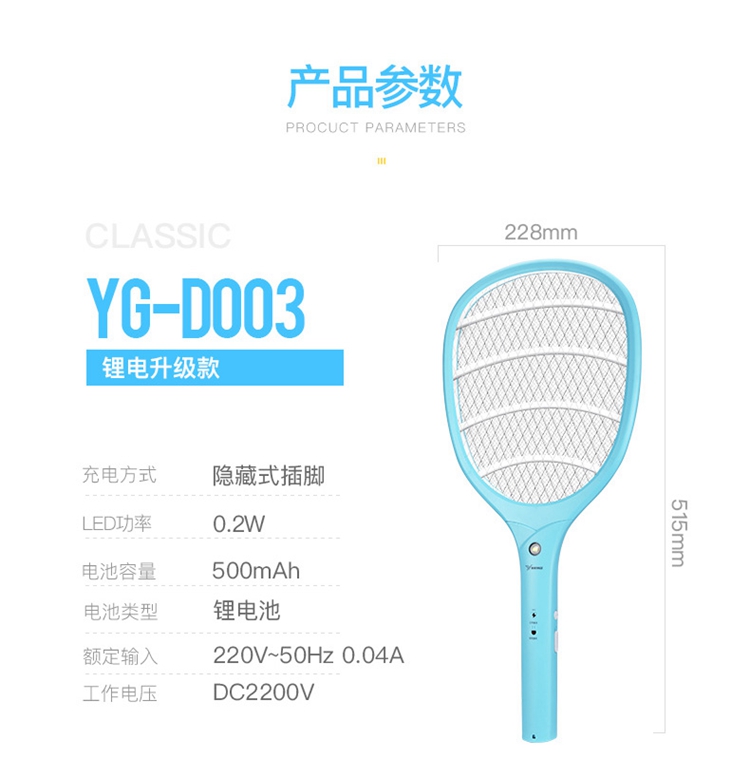 雅格 充电锂电电蚊拍 YG-D003C(包邮直发)