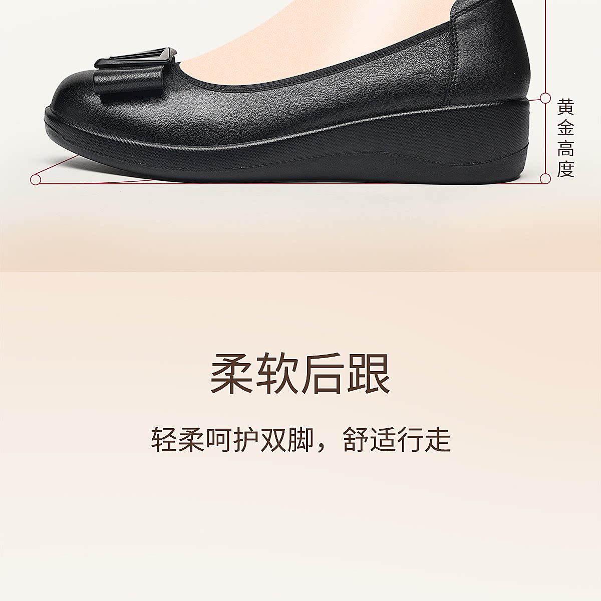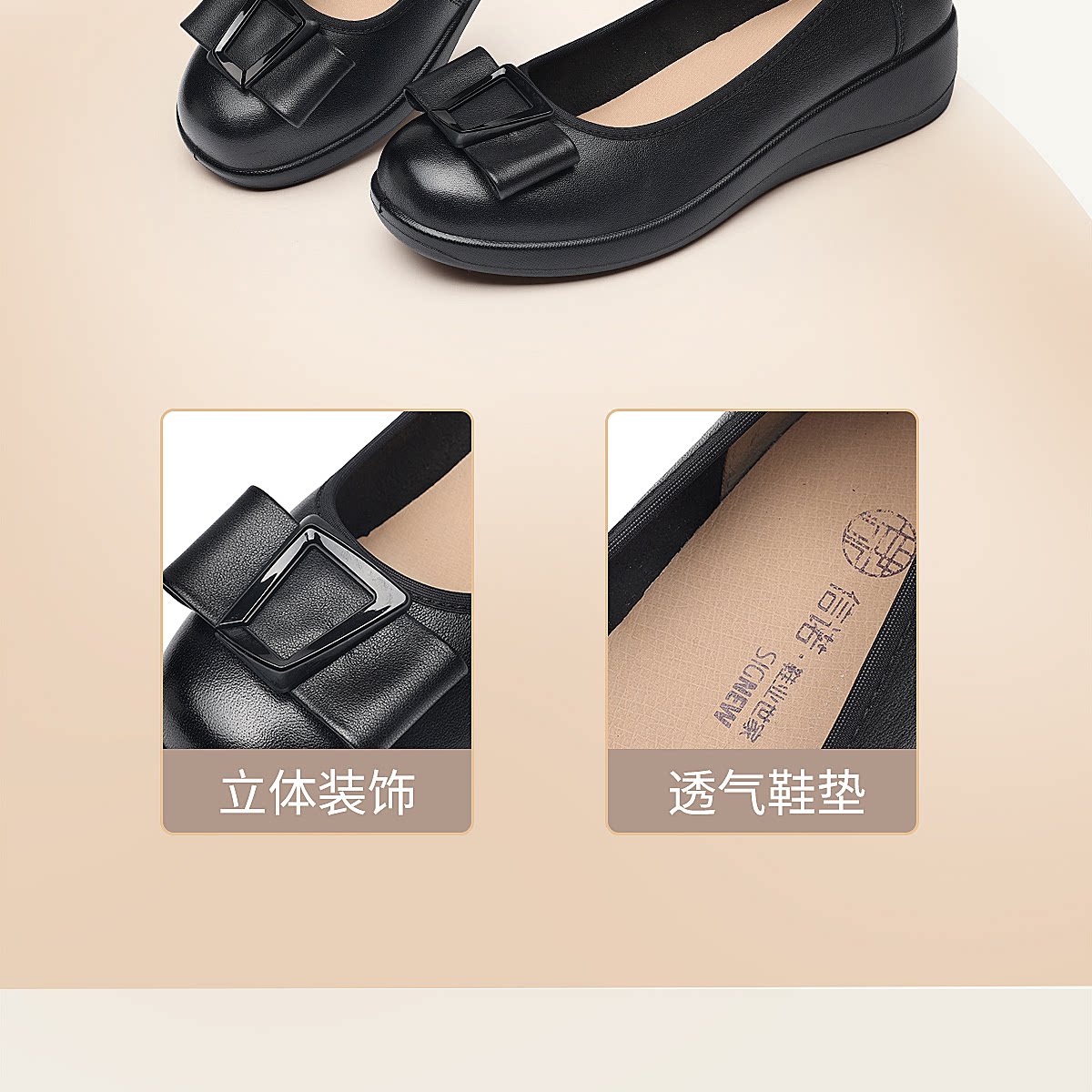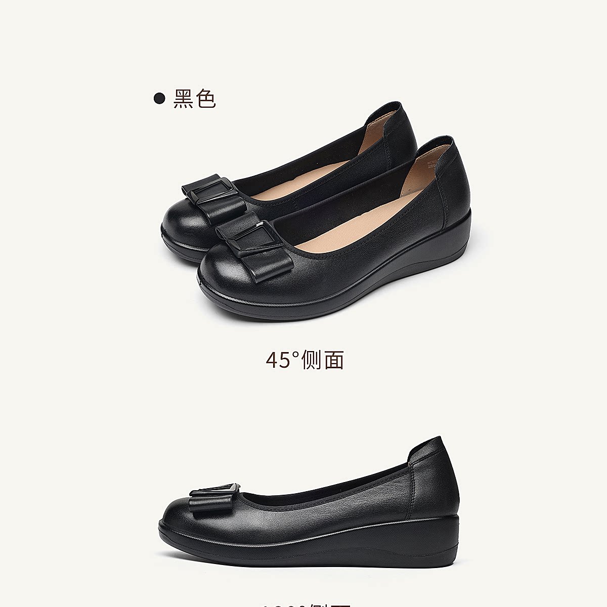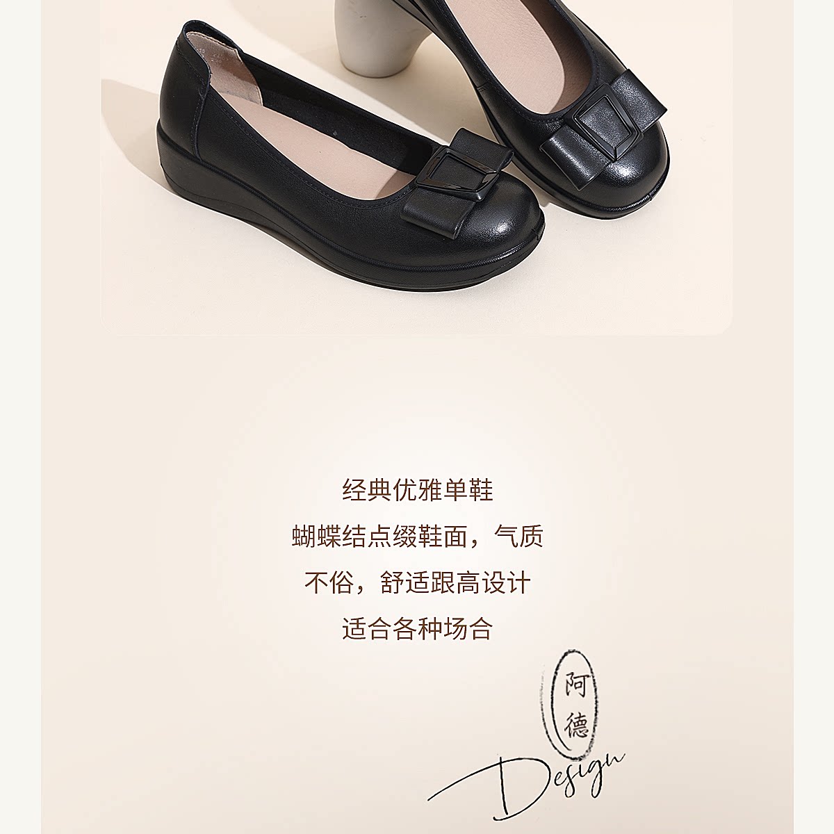 真皮蝴蝶结粗跟单鞋女通勤风软底舒适百搭妈妈鞋工作鞋6C9317-25