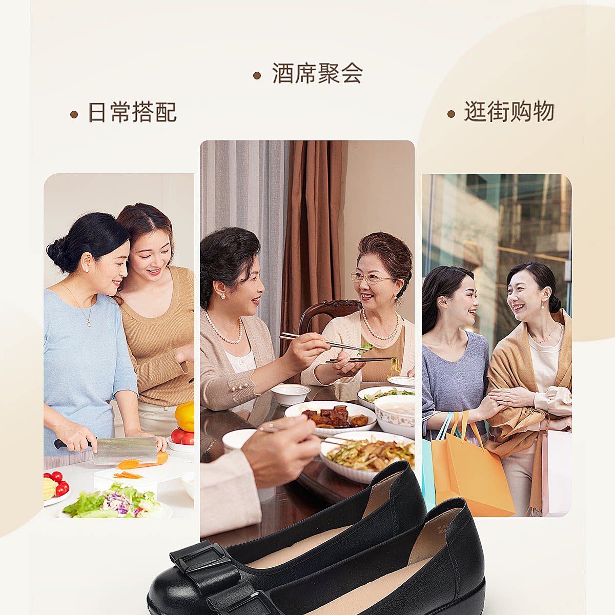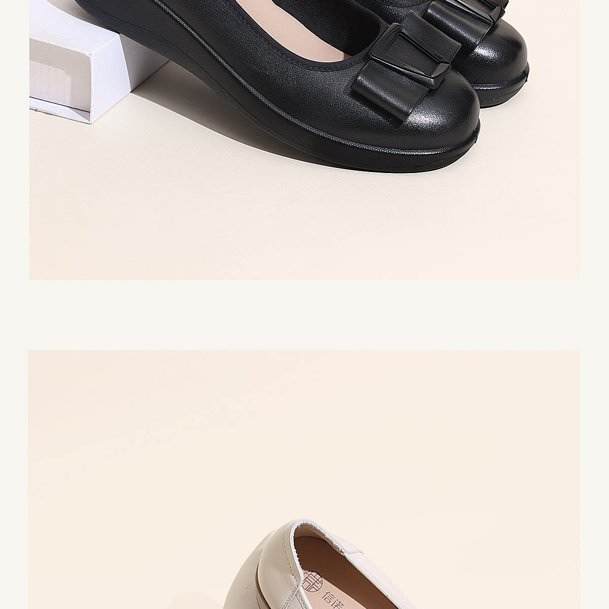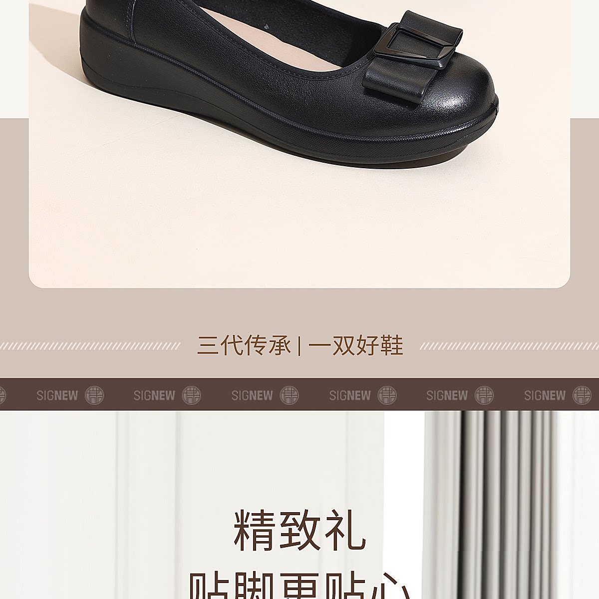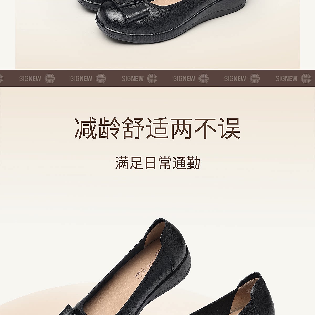 真皮蝴蝶结粗跟单鞋女通勤风软底舒适百搭妈妈鞋工作鞋6C9317-25