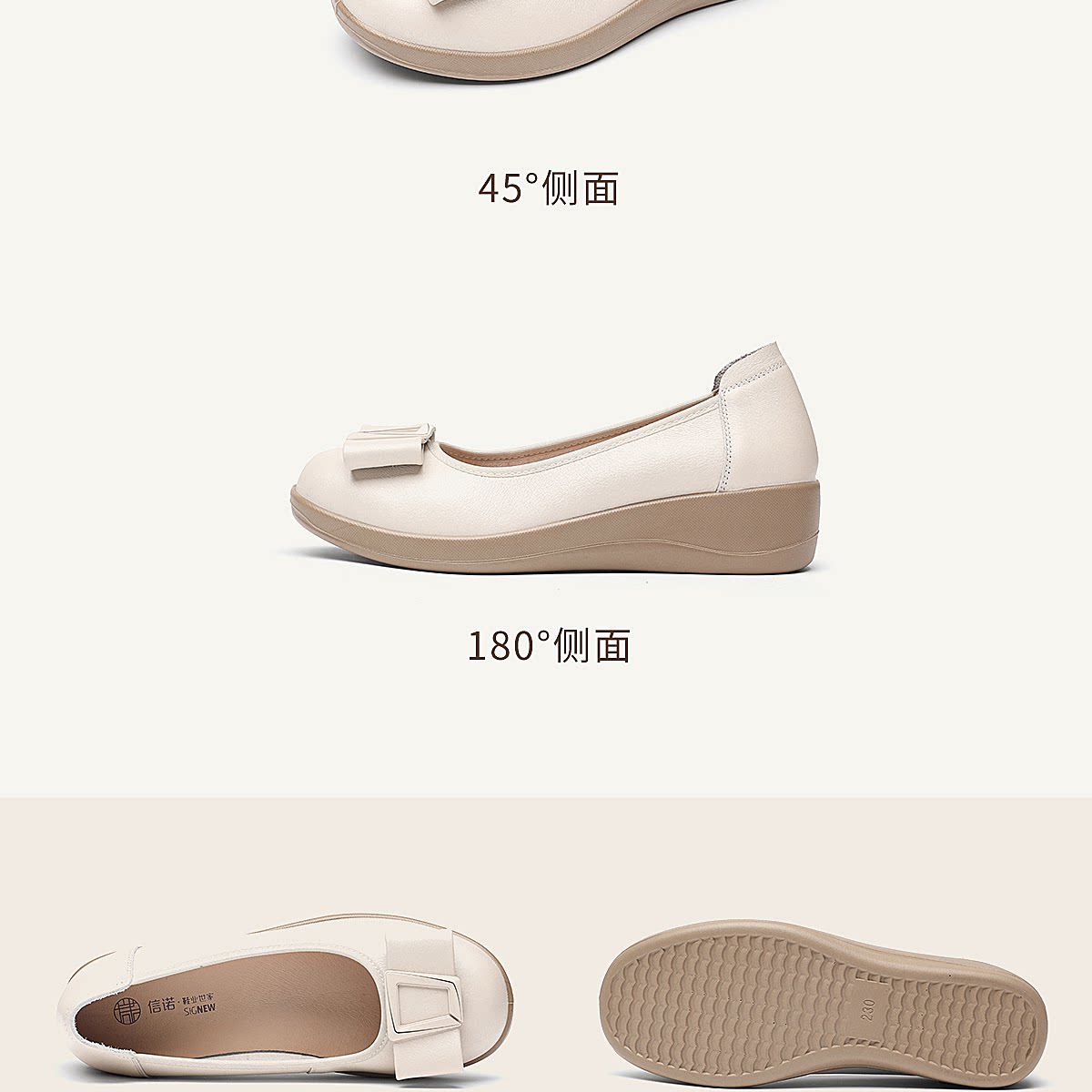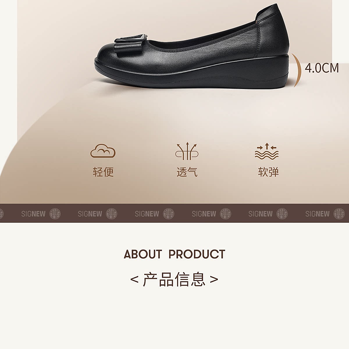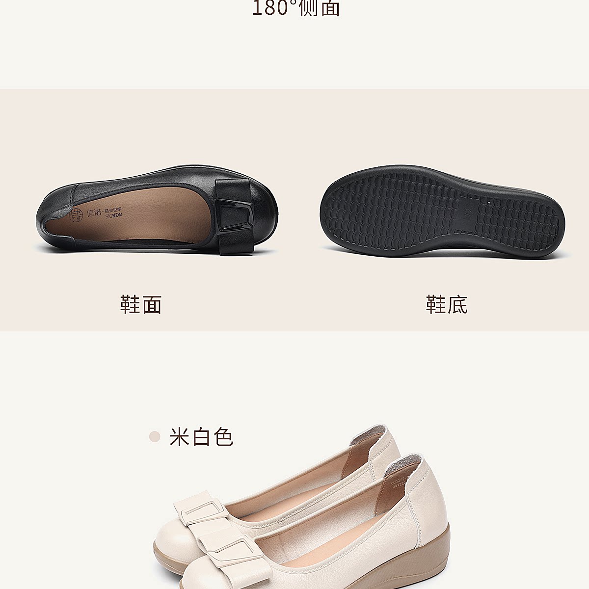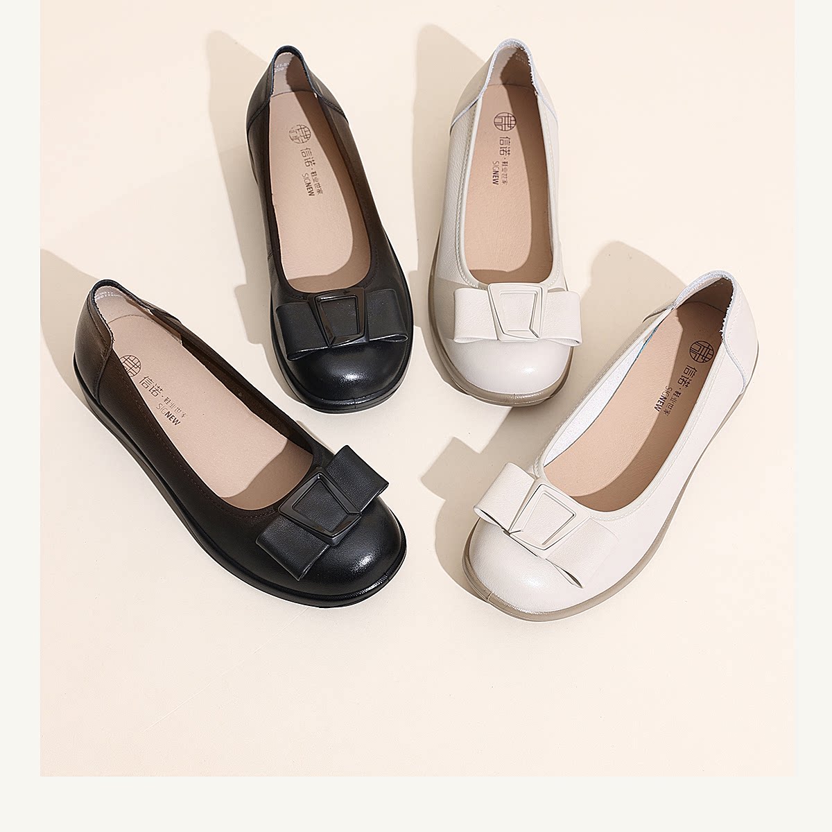 真皮蝴蝶结粗跟单鞋女通勤风软底舒适百搭妈妈鞋工作鞋6C9317-25