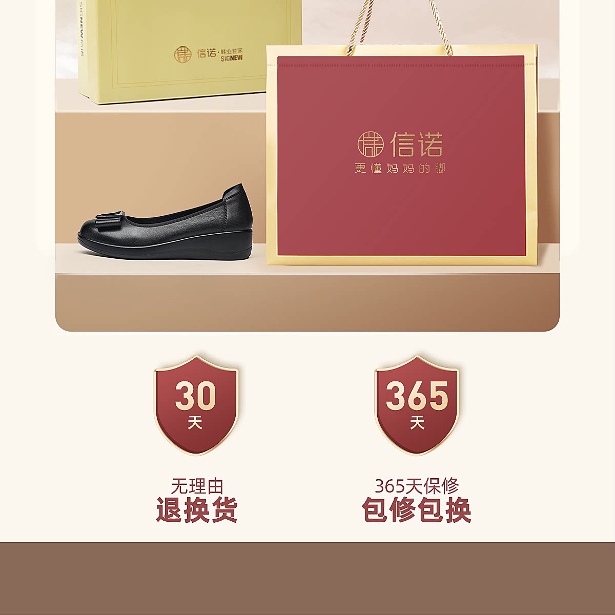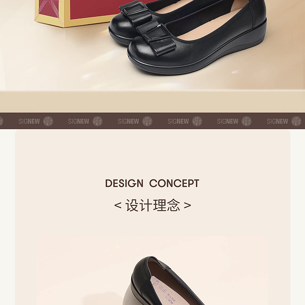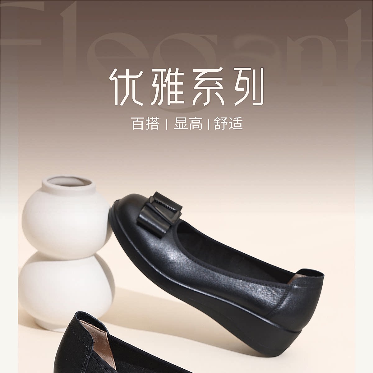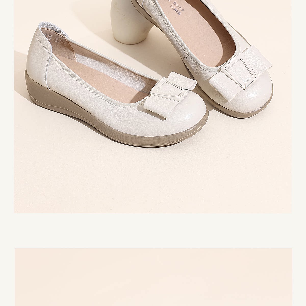 真皮蝴蝶结粗跟单鞋女通勤风软底舒适百搭妈妈鞋工作鞋6C9317-25