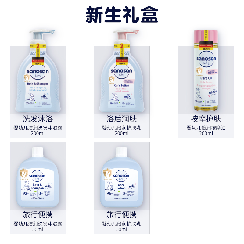 【中欧班列精选】德国哈罗闪新生儿呵护礼盒 原装进口哈洗发沐浴露200ml+护肤乳+按摩油+洁润洗发沐浴露+倍润护肤乳