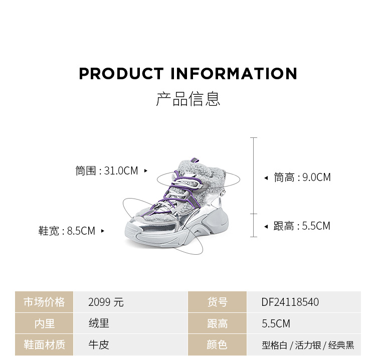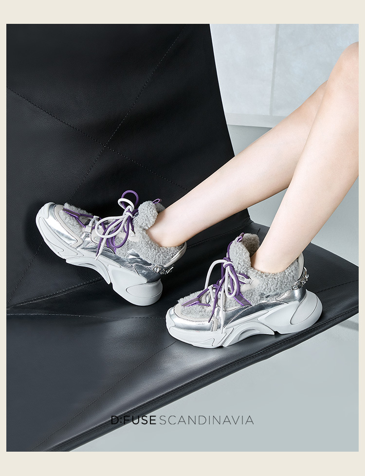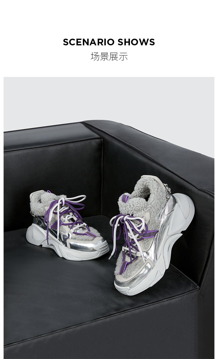 DFuse迪芙斯2022冬季新款牛皮厚底增高老爹鞋运动鞋女DF24118540