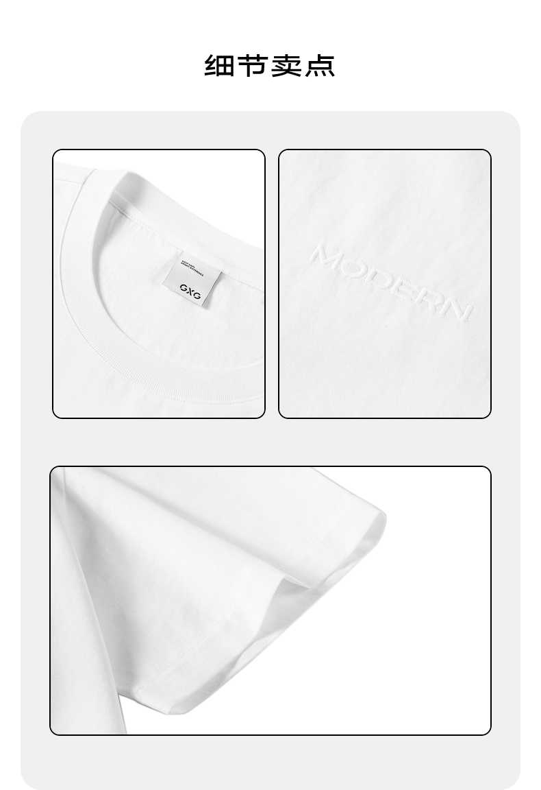 GXG男装 白色简约圆领短袖T恤满身植绒 夏季新品