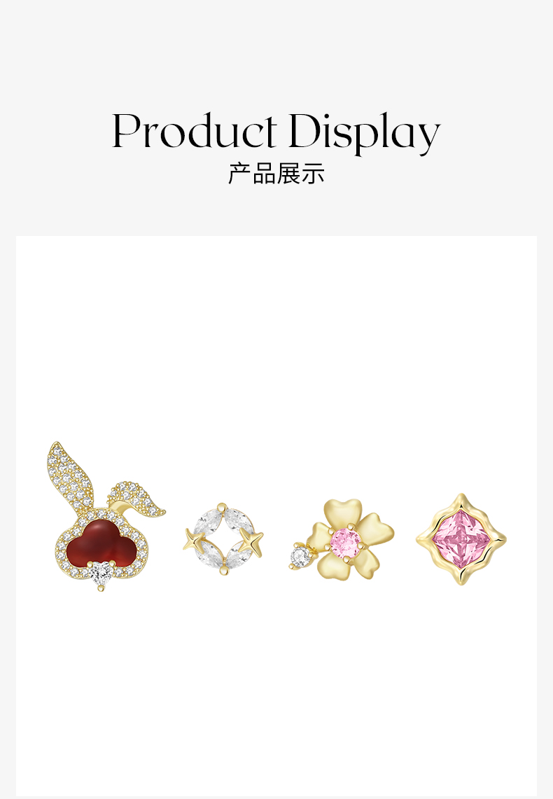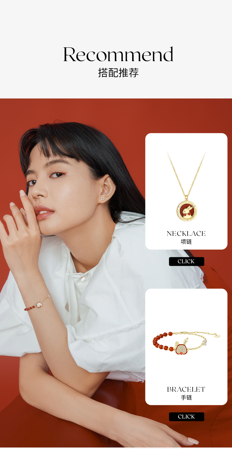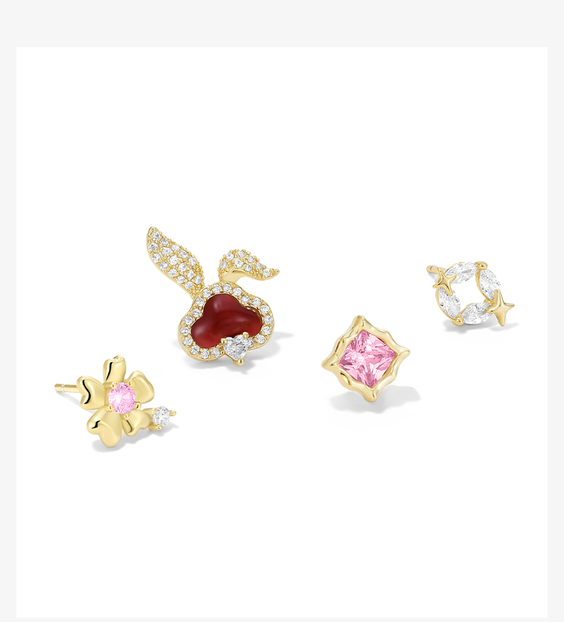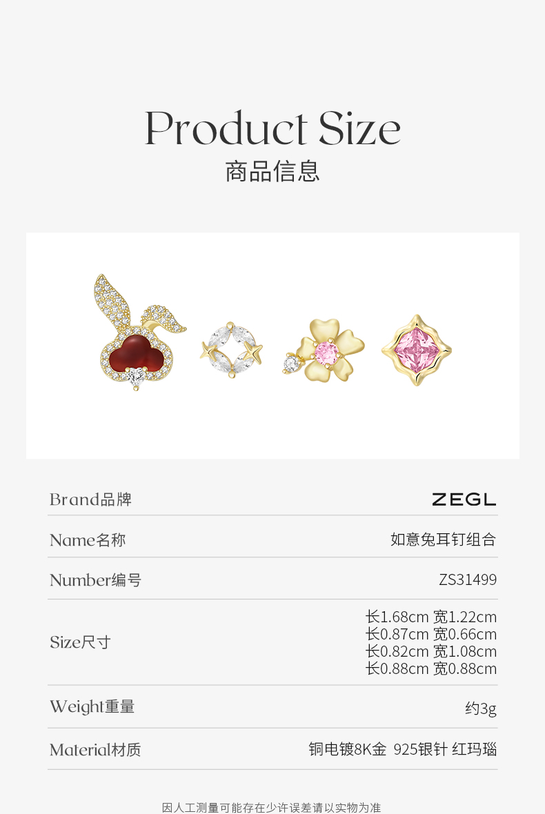 ZEGL设计师本命年系列如意兔子耳钉女红玛瑙耳环925银针耳饰套装