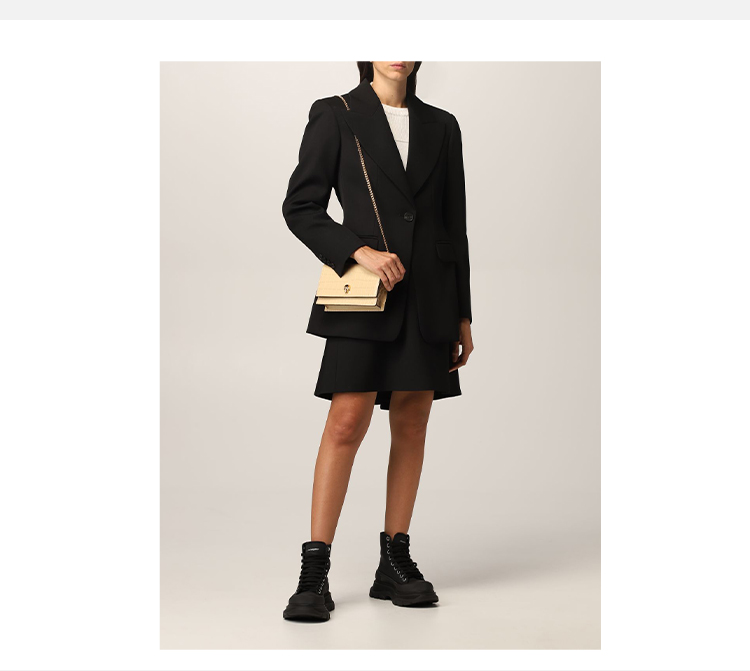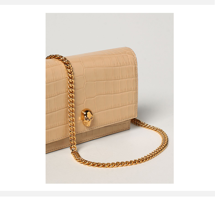 ALEXANDER MCQUEEN 亚历山大.麦昆 女士仿鳄皮纹浮雕骷髅头铆钉单肩包 女士单肩包 杏色 613088 1HB0G 9740