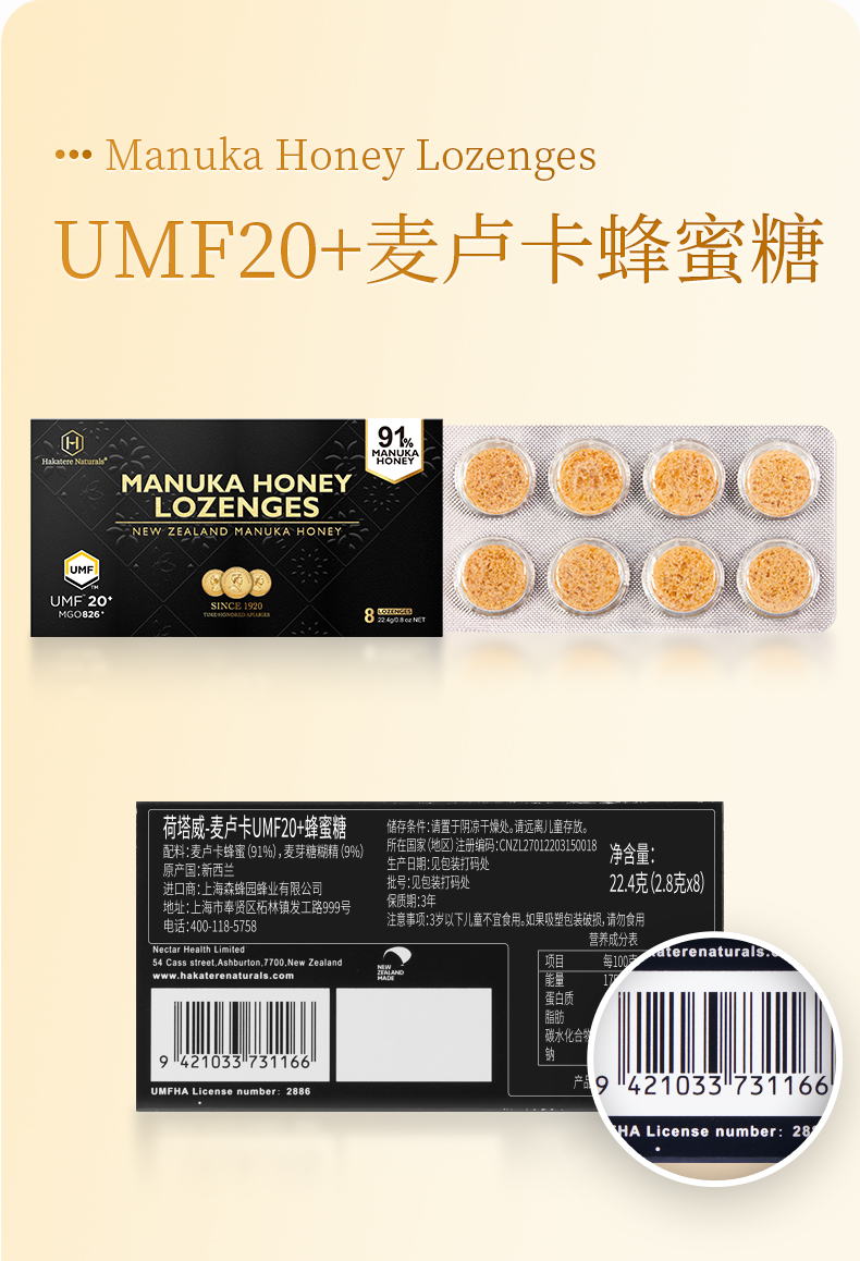 荷塔威UMF20+91%麦卢卡蜂蜜糖含片 压片喉糖 27.5804