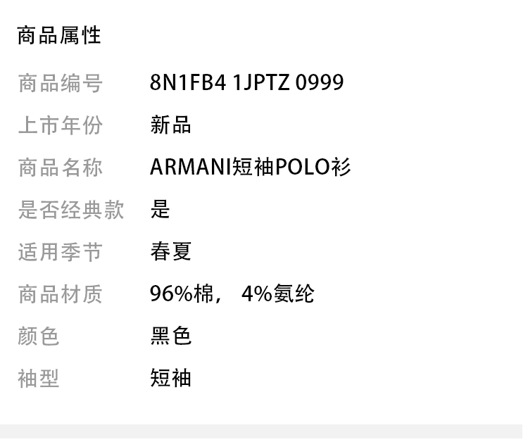 【二】EMPORIO ARMANI 阿玛尼 男士短袖T恤 黑色 8N1FB4 1JPTZ 0999