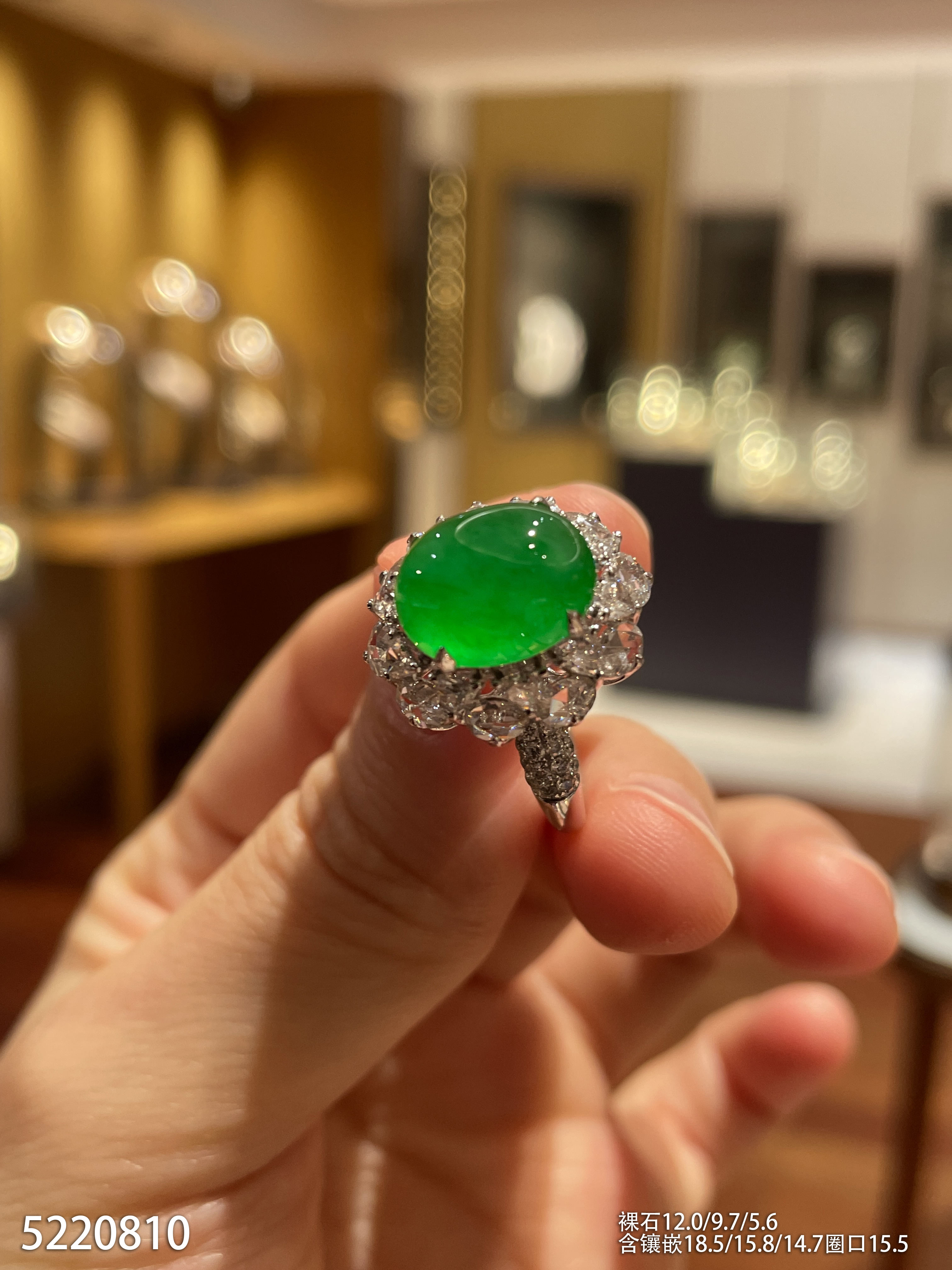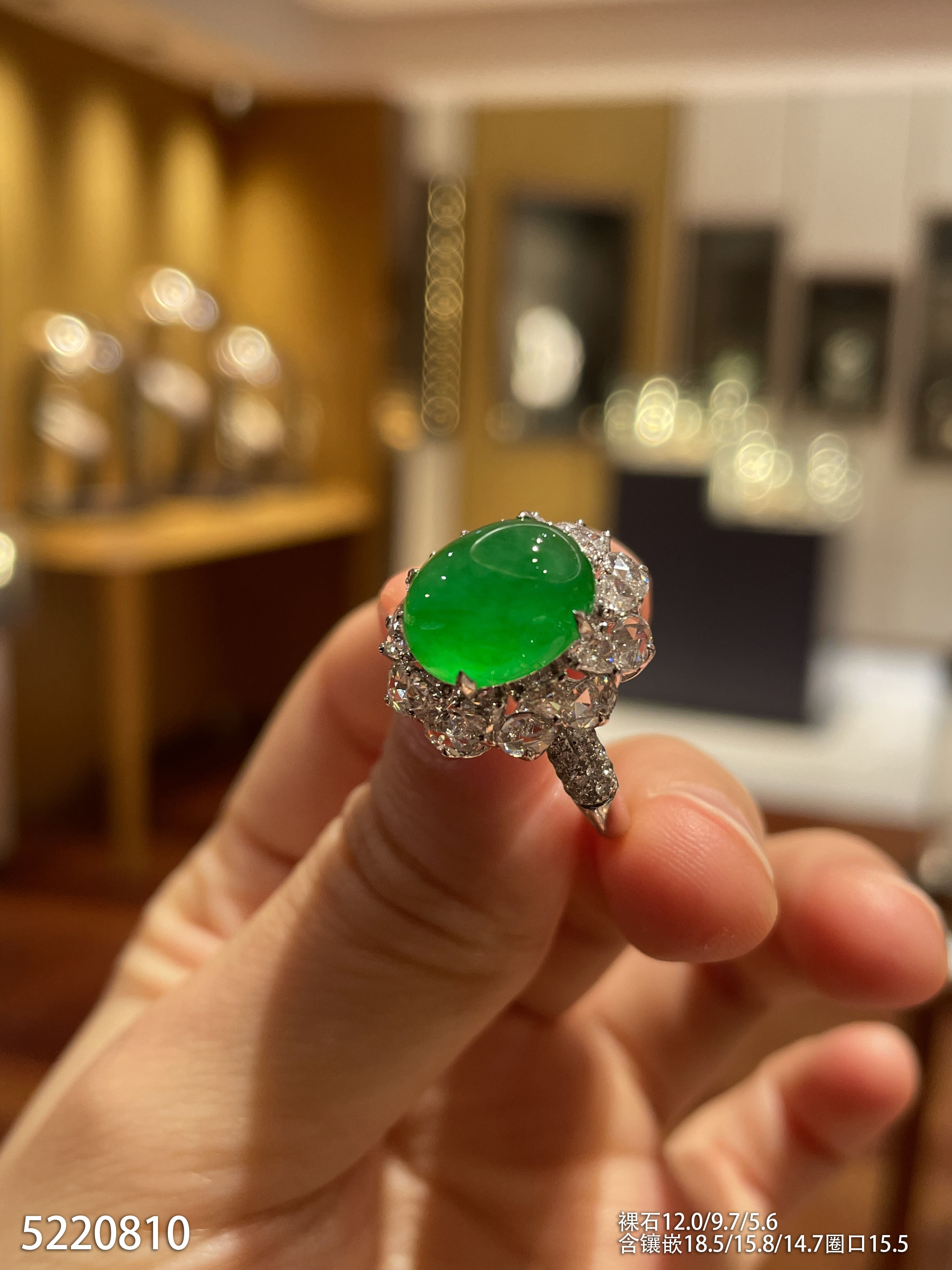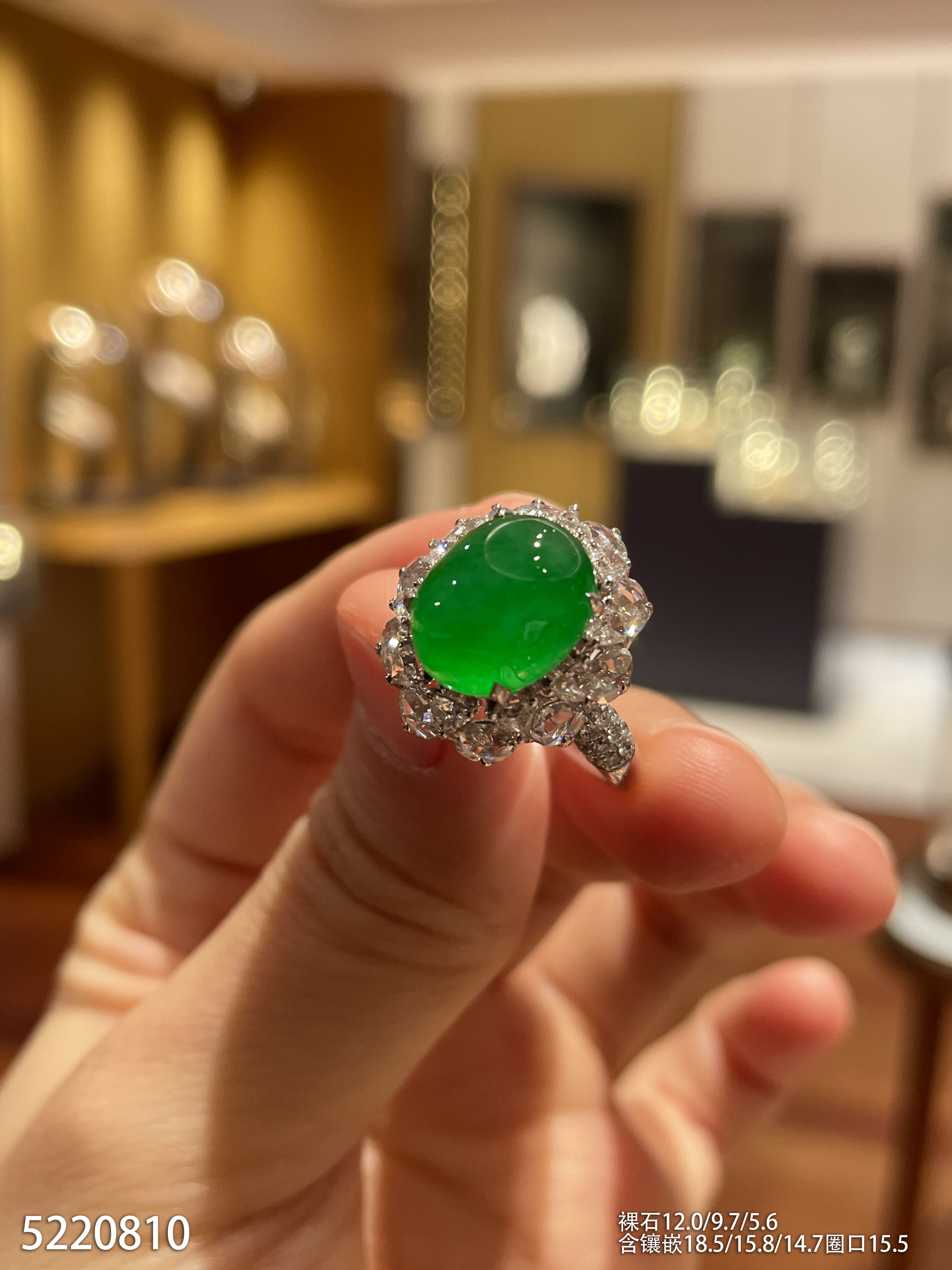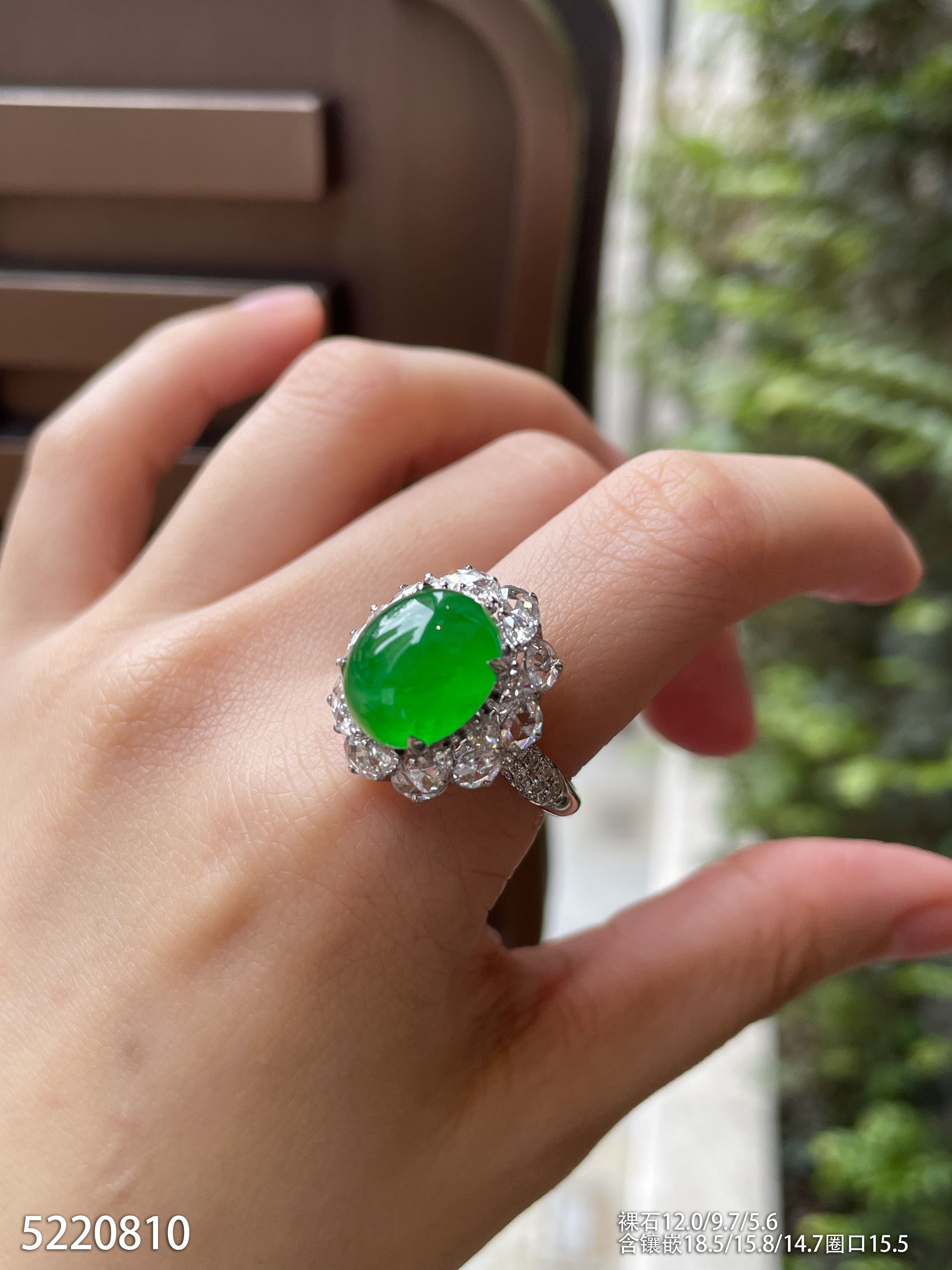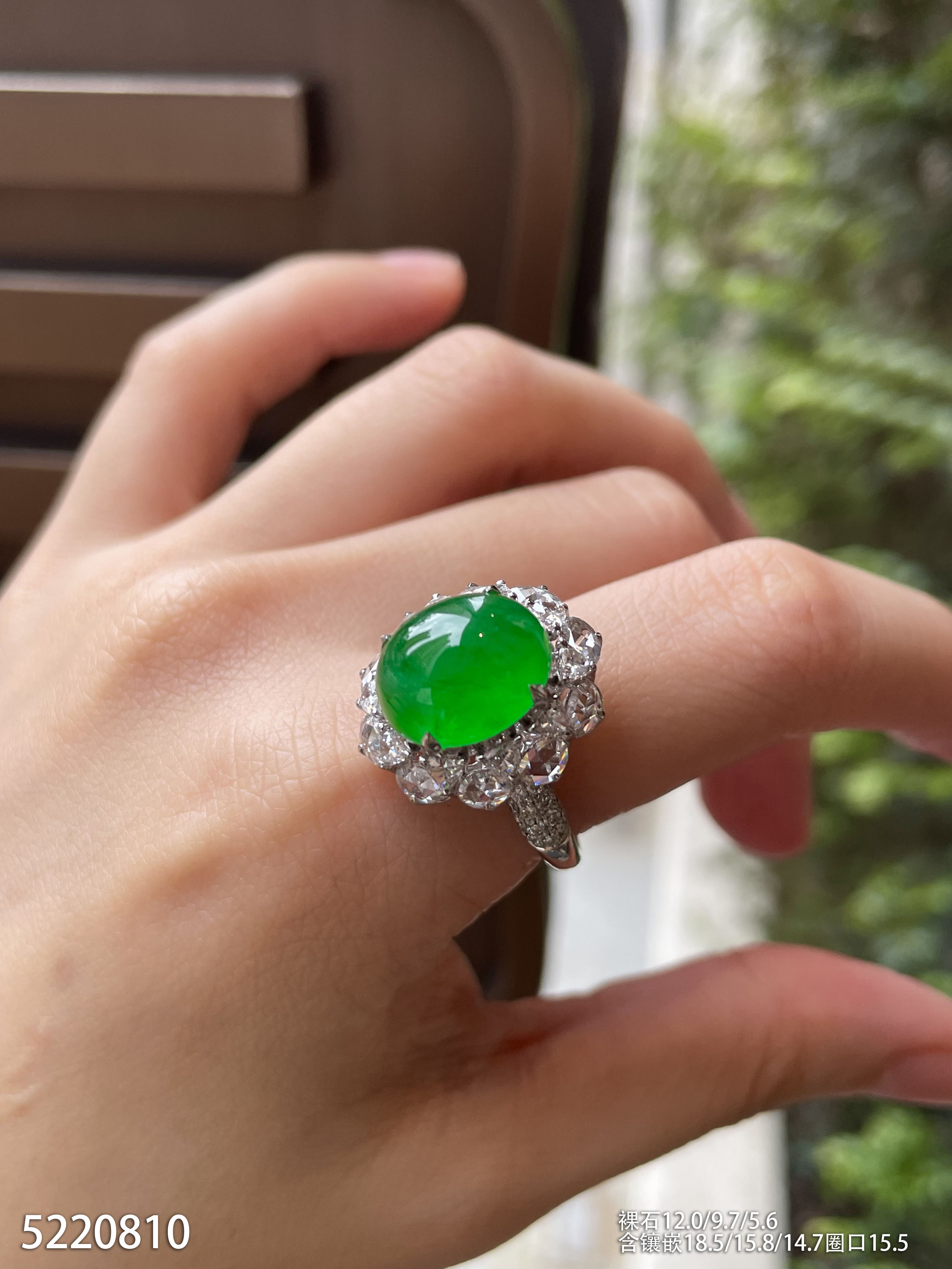 冰艳绿蛋面戒指【5220810】具体价格微信咨询