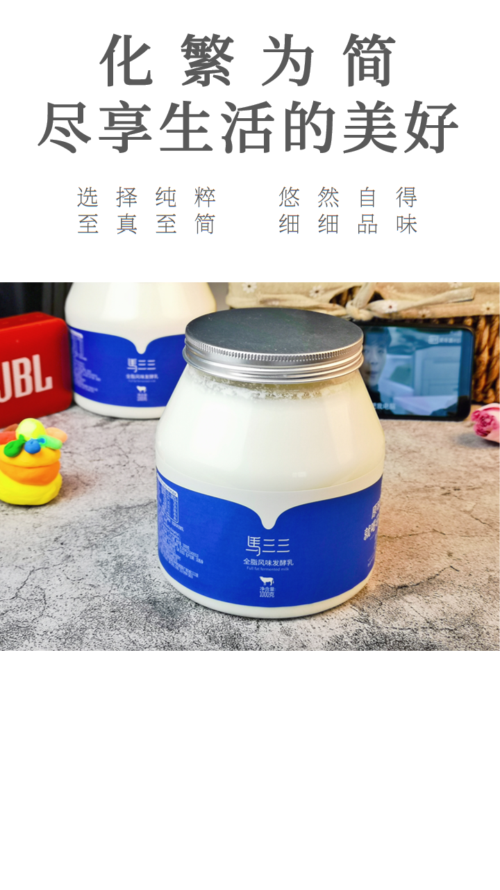 马三三原味酸奶家庭实惠装1kg*2罐 0添加