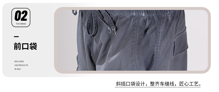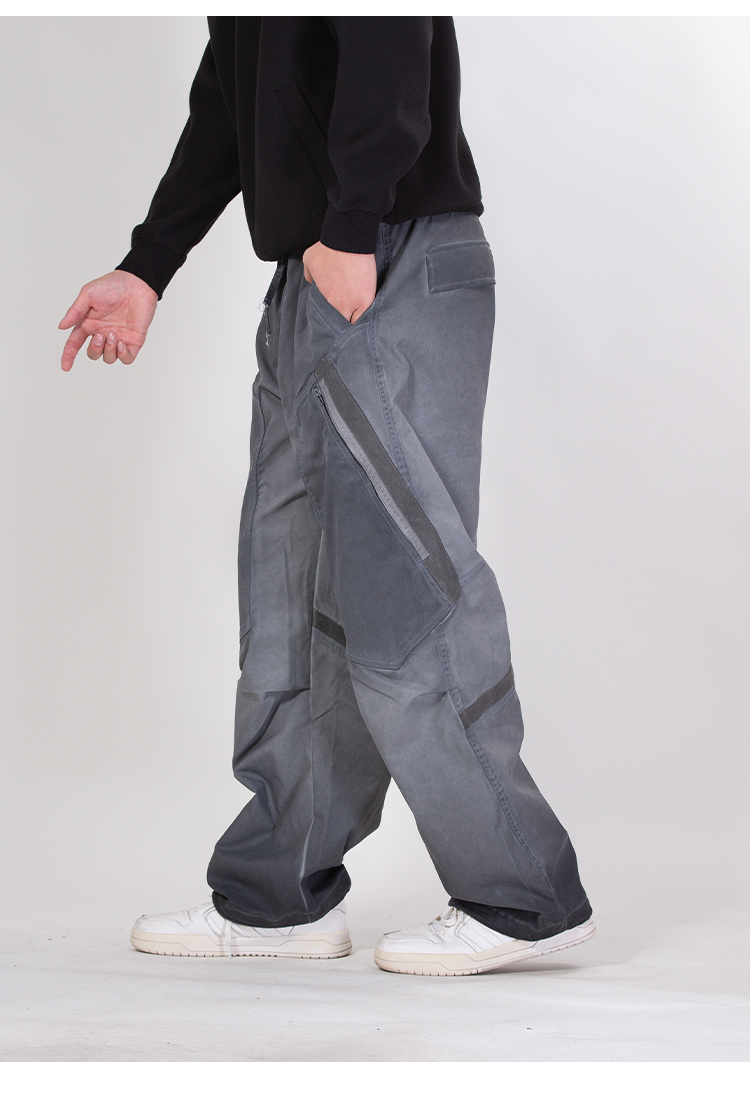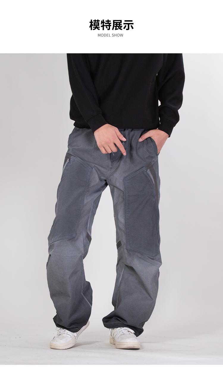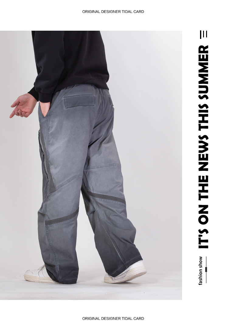 DRONKOO 2025 抽绳松紧腰前贴袋织带拉链做旧中厚工装长裤