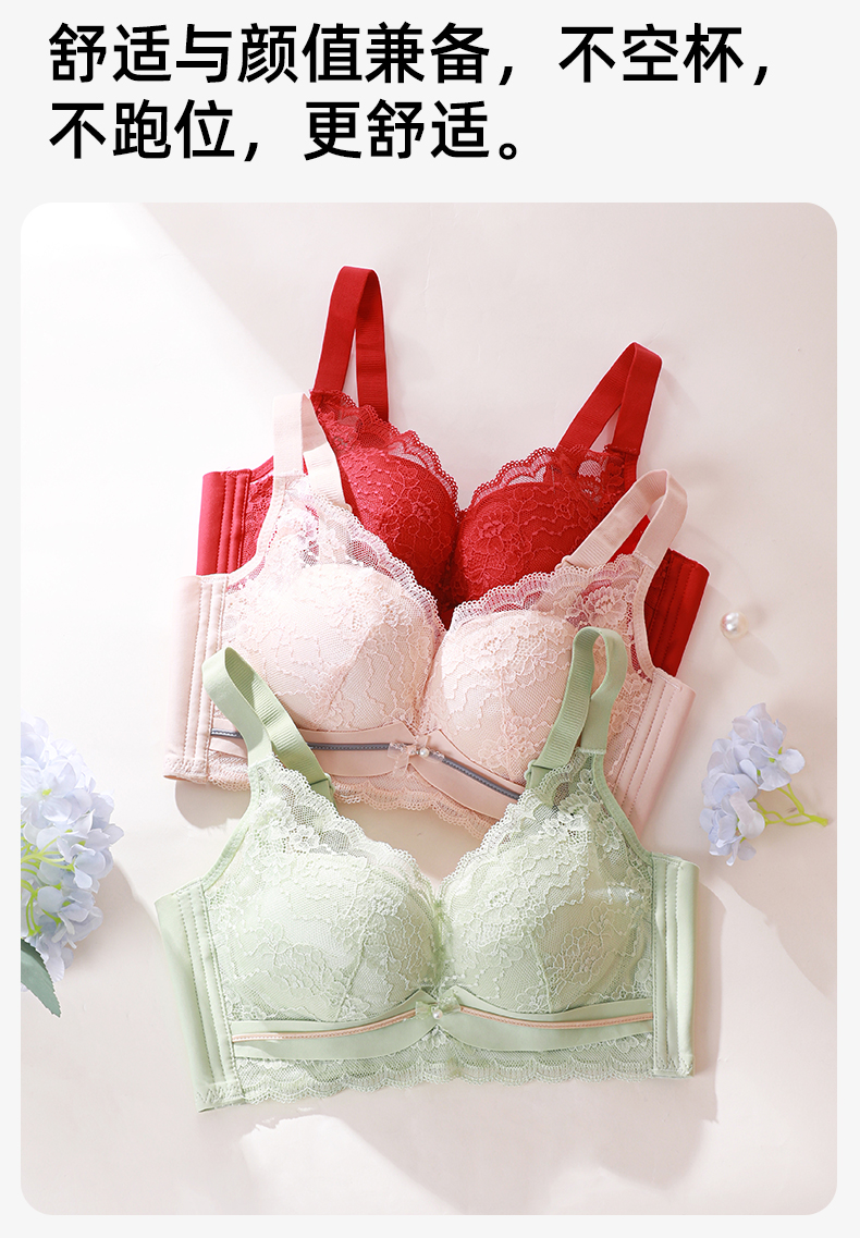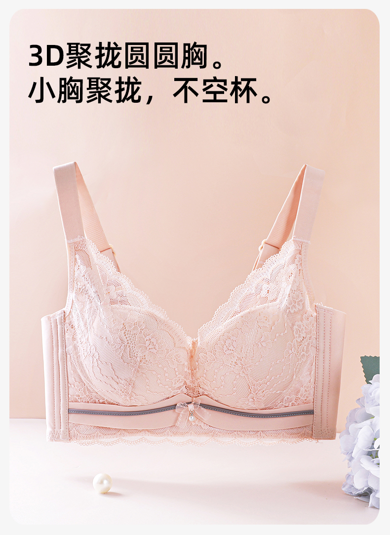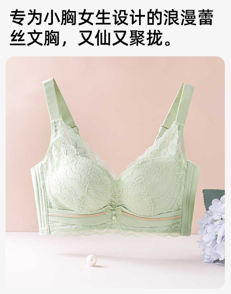 熳洁儿 内衣女小胸聚拢文胸撞色舒适无钢圈性感蕾丝不空杯23761507