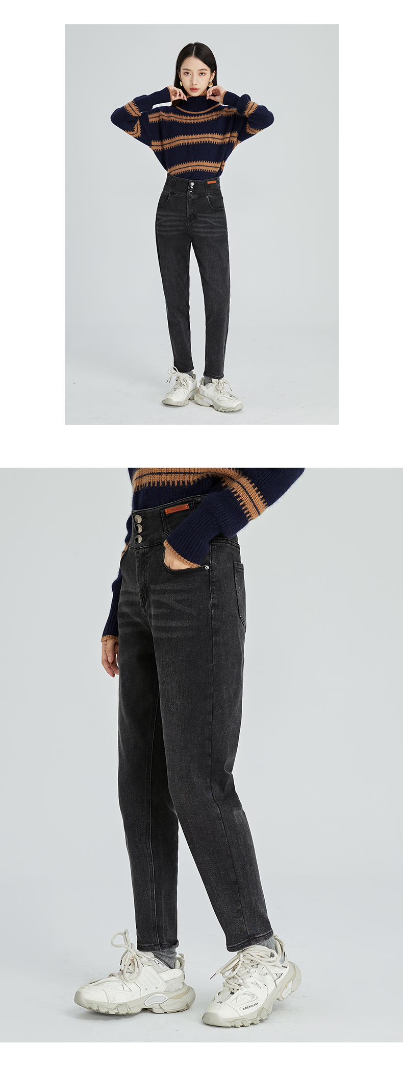 oldcolour2022冬季新款黑色高腰直筒显瘦时尚百搭九分牛仔裤女GN41113989