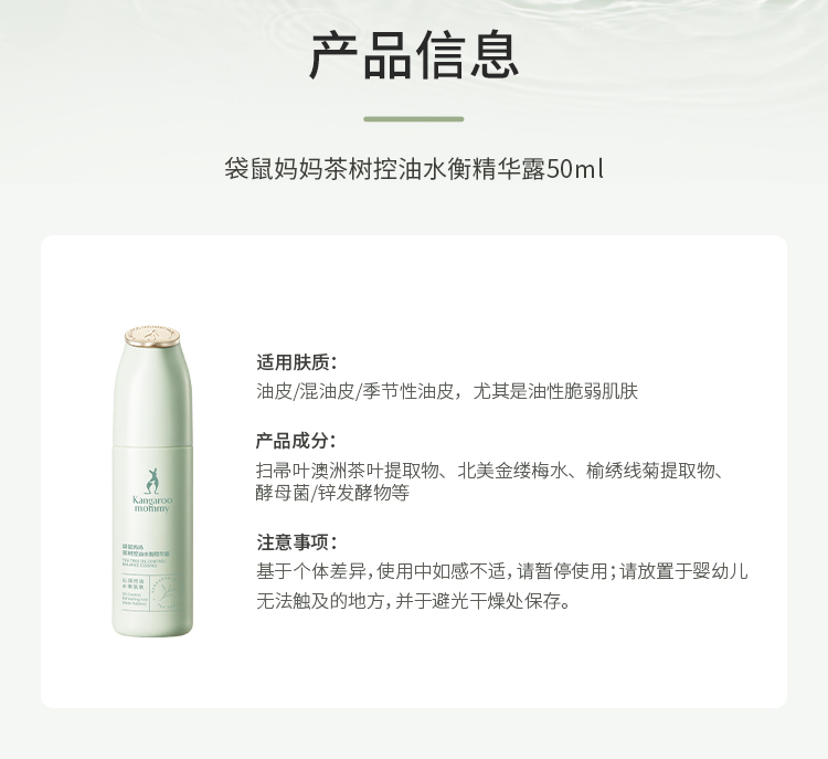 【控油精华】 油痘肌适用 清爽控油 调节水油平衡 细致毛孔 茶树控油水衡精华露(50ml)