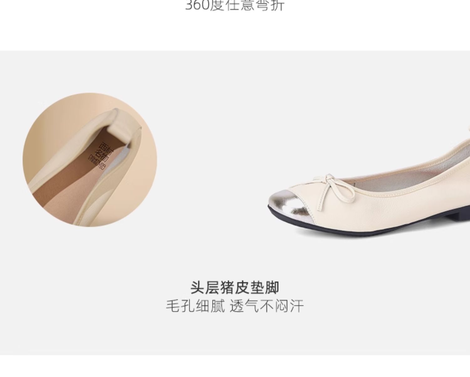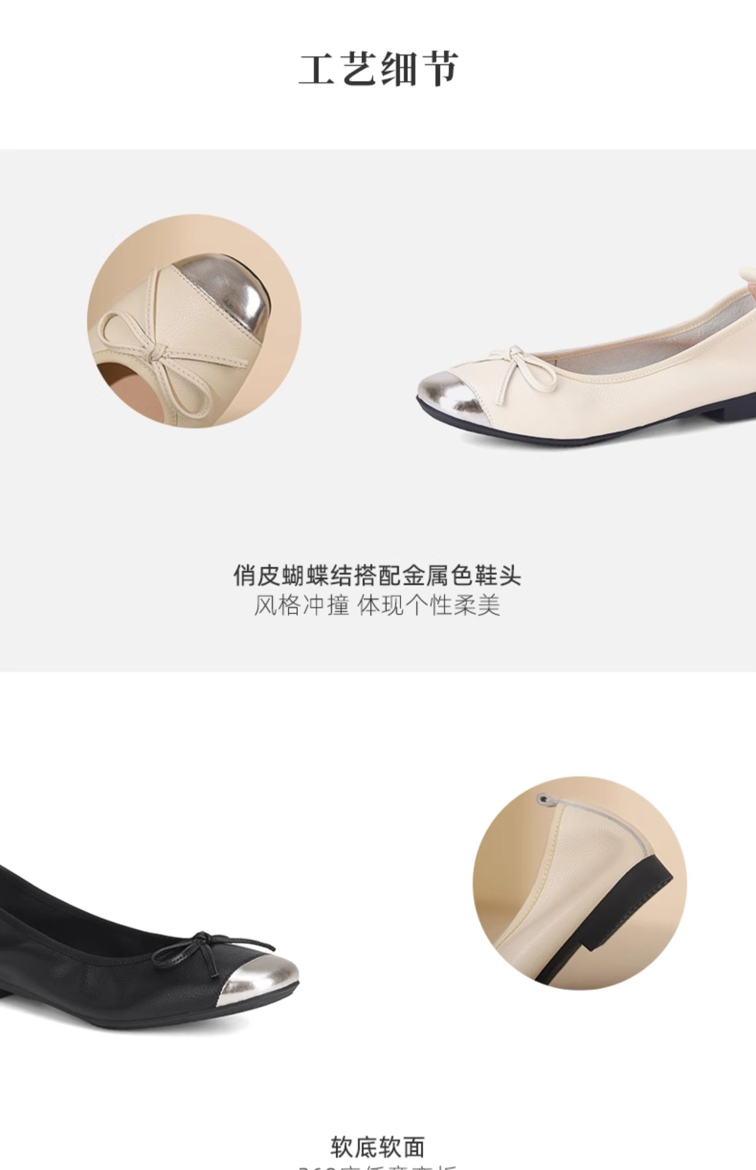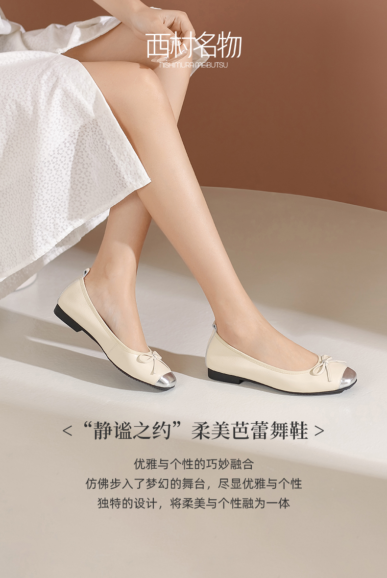 西村名物2024春季新品真皮甜美优雅平底芭蕾舞鞋浅口单鞋T24AE11101