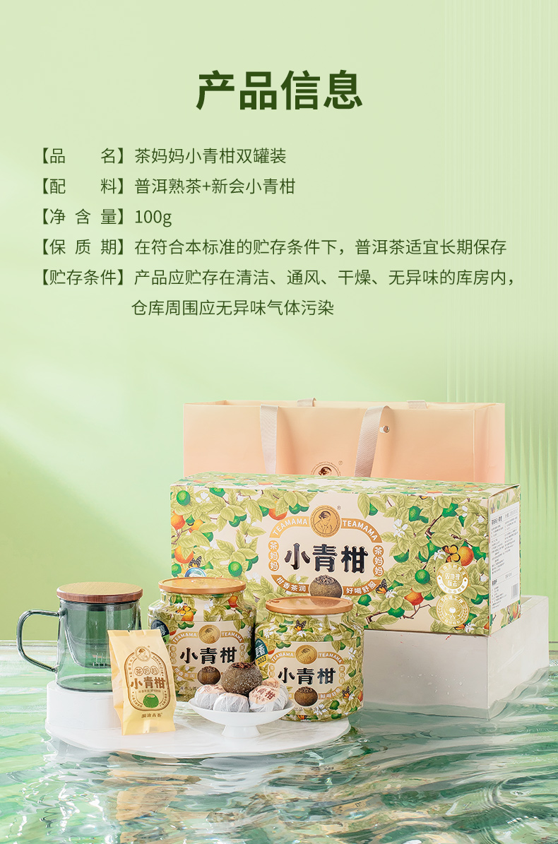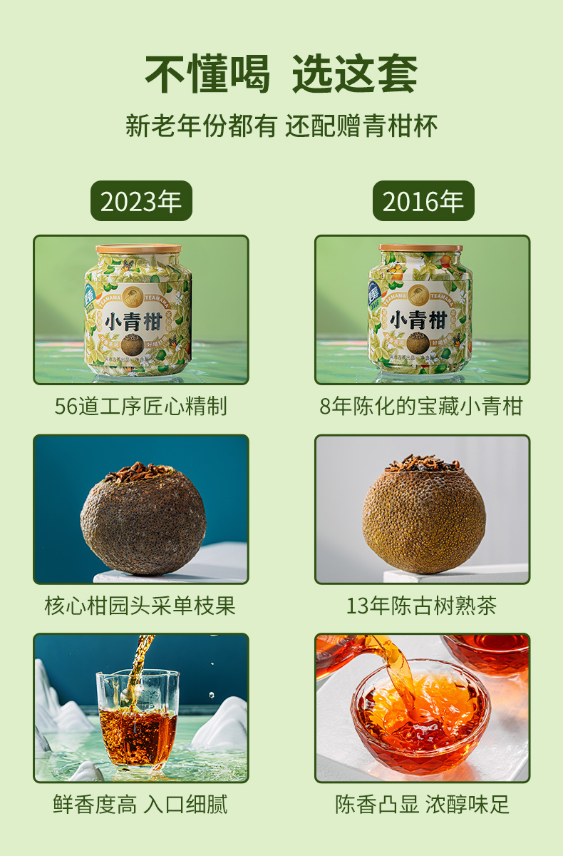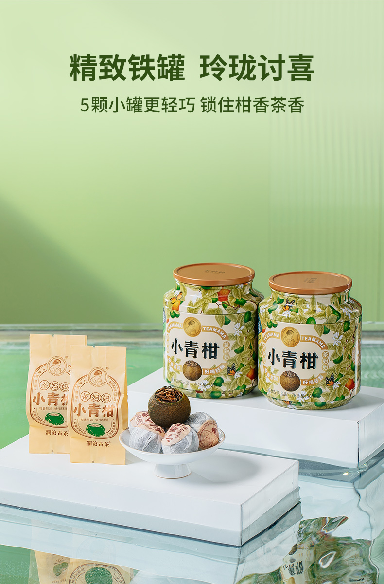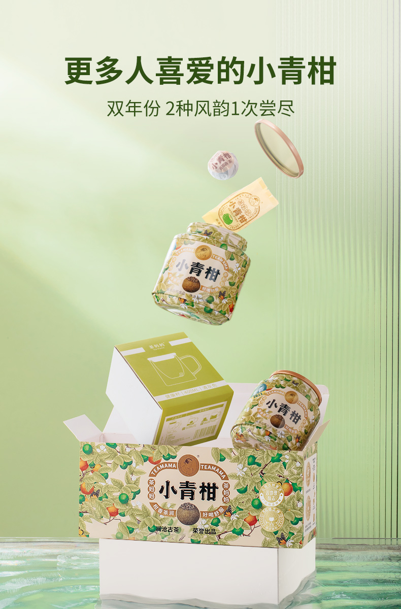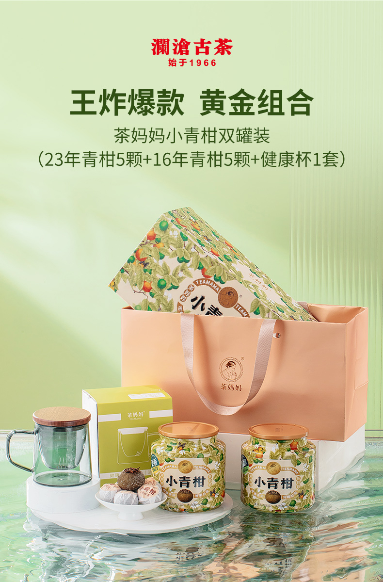 澜沧古茶2023年+2016年茶妈妈小青柑新会陈皮普洱熟茶双罐礼盒装100g