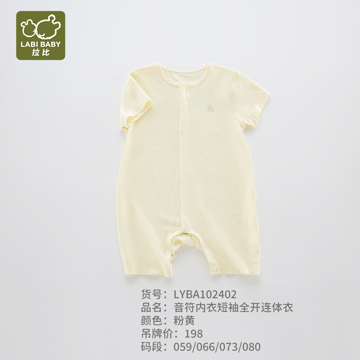 拉比-内衣类(夏)短袖全开连体衣粉黄LYBA10240235059