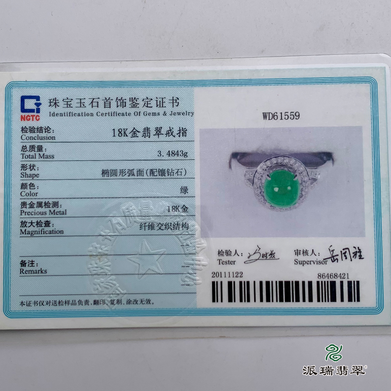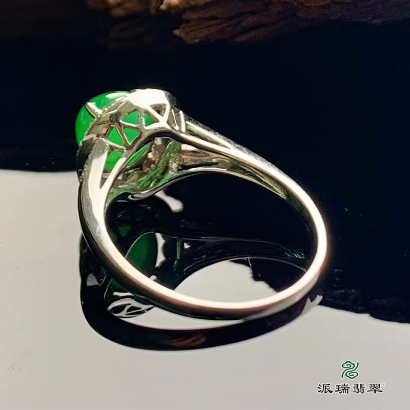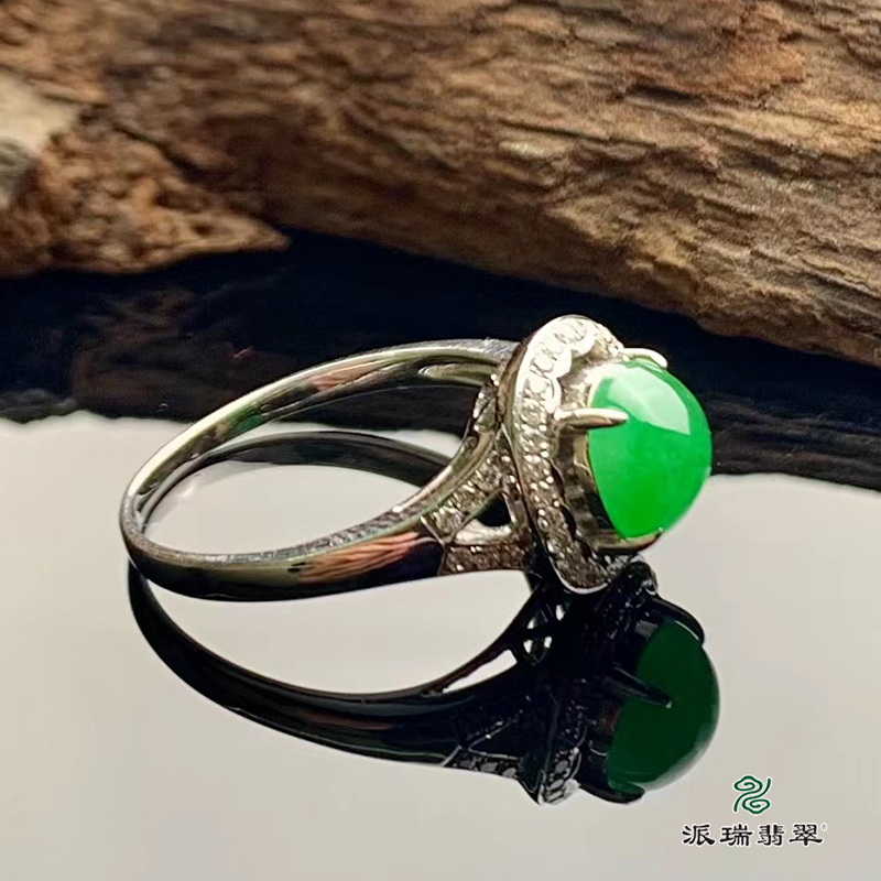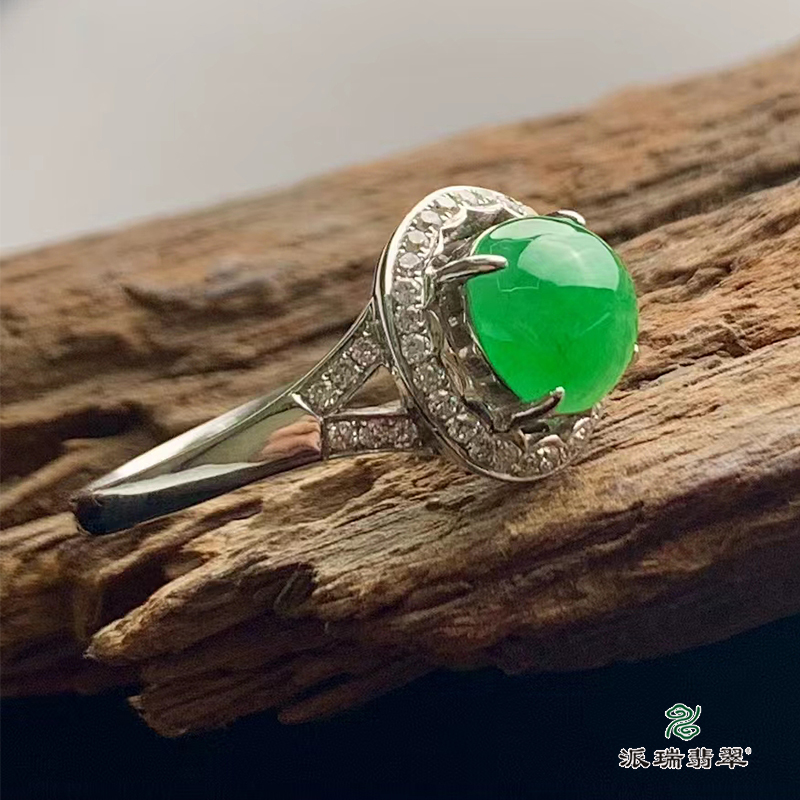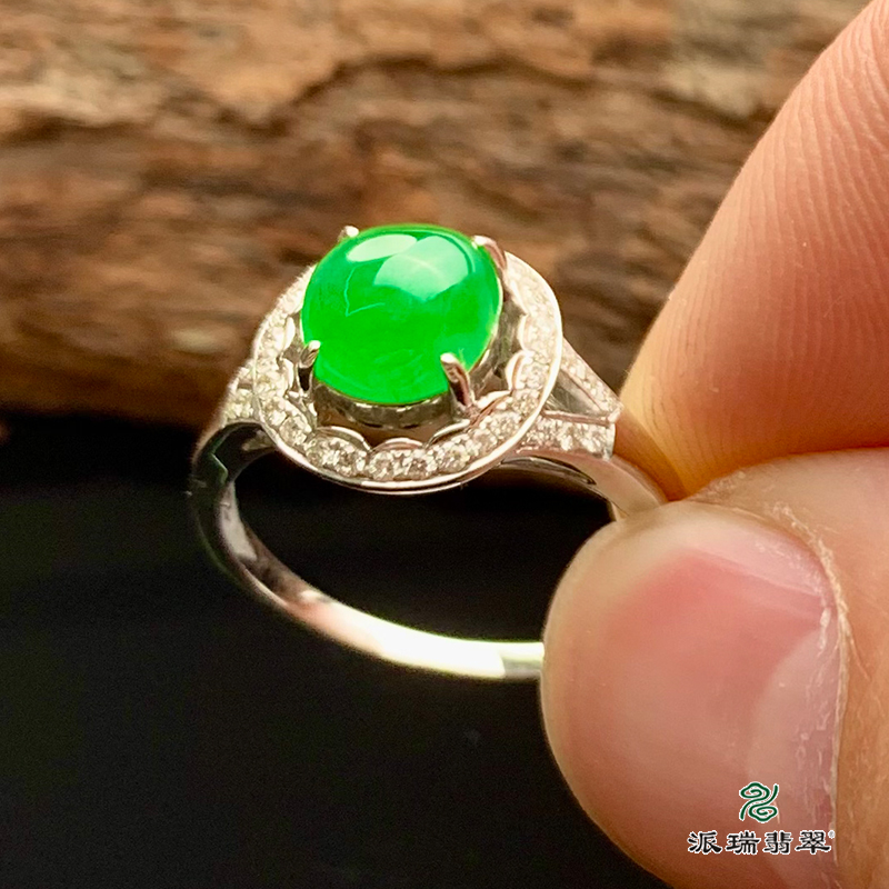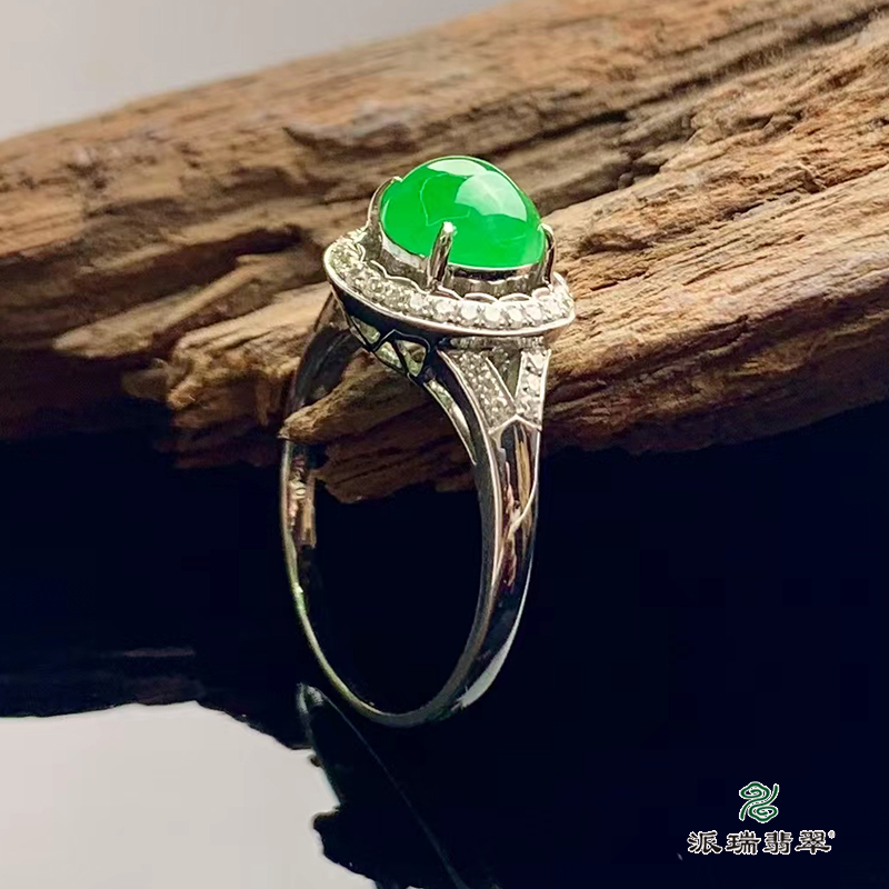 派瑞翡翠 18k金翡翠戒指 糯种 阳绿色