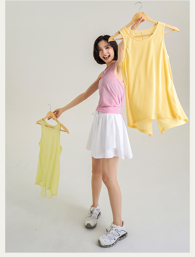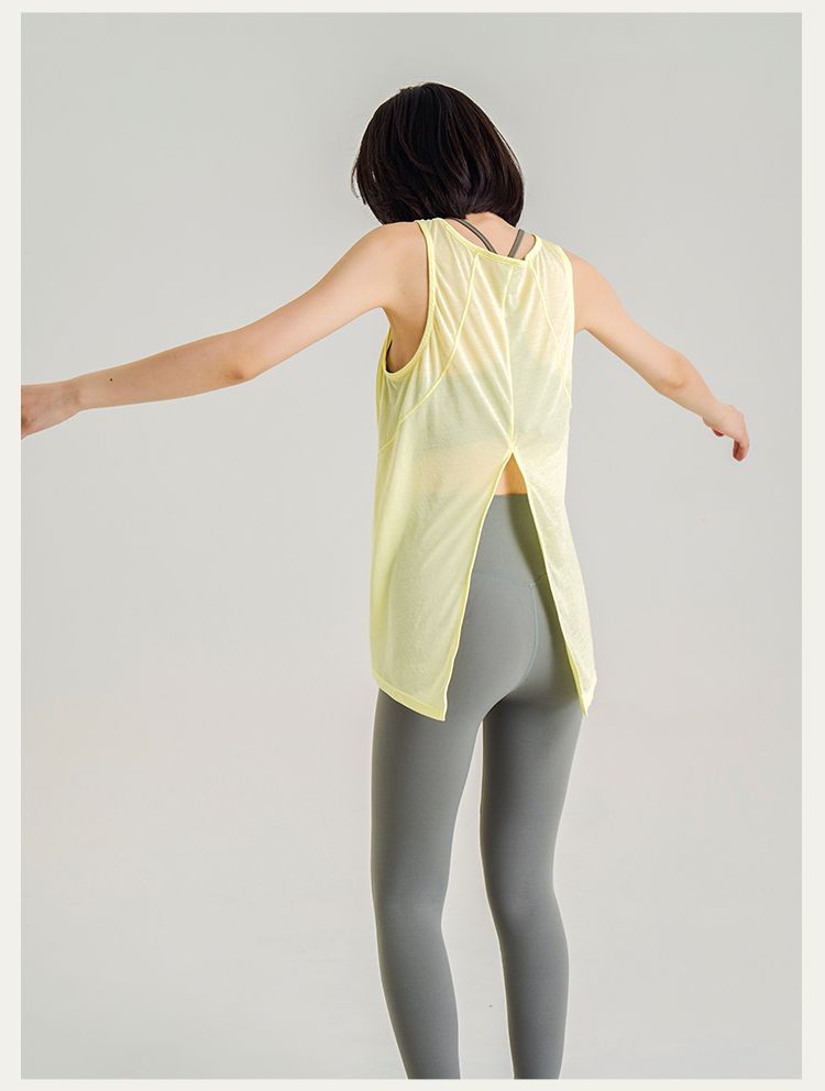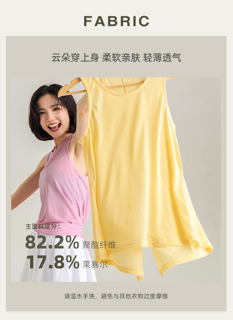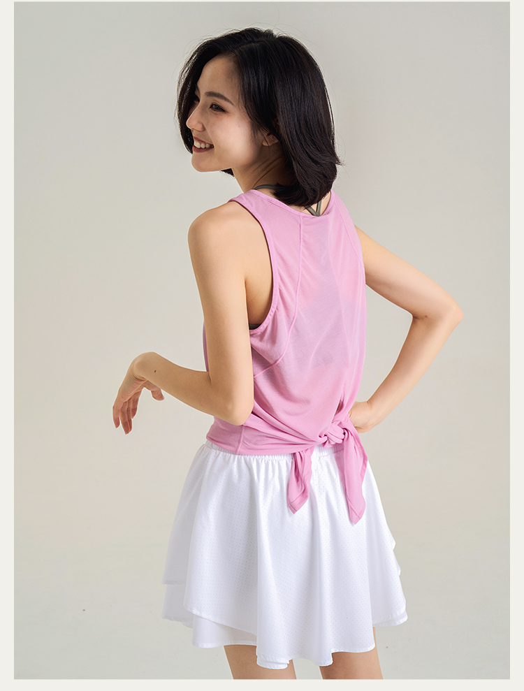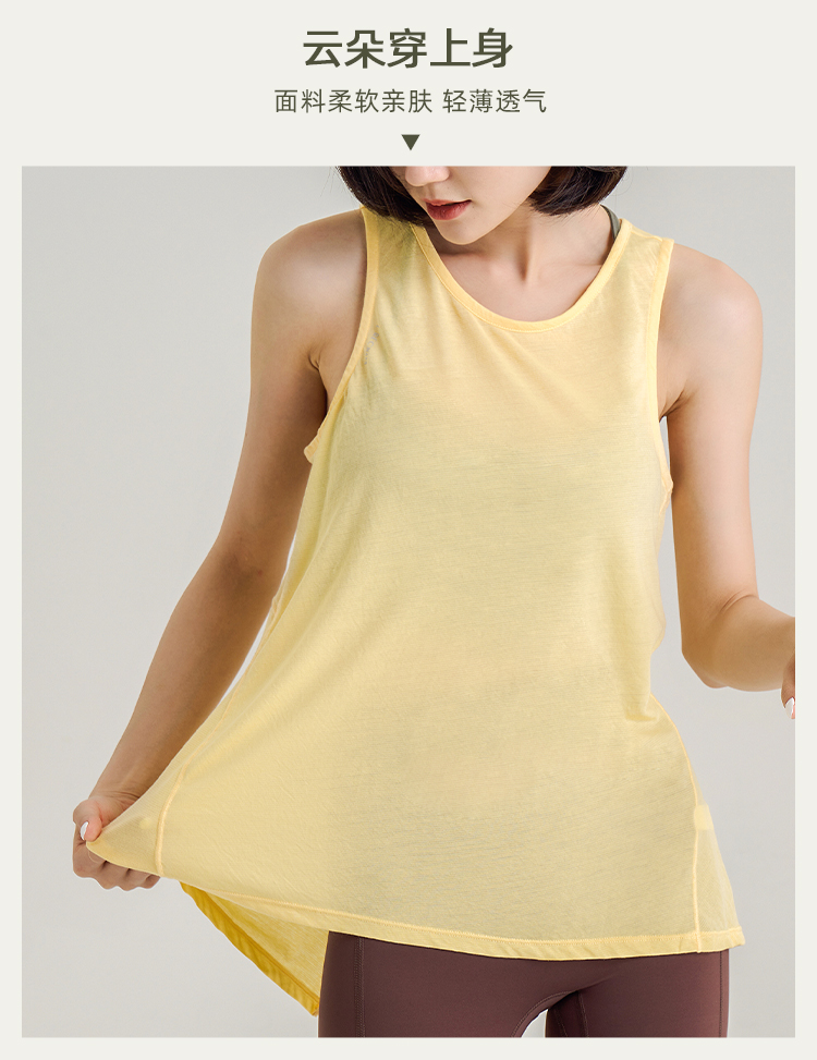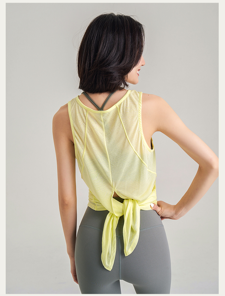 【莱赛尔天丝】后背开叉可系结背心罩衫 瑜伽轻薄圆领无袖上衣