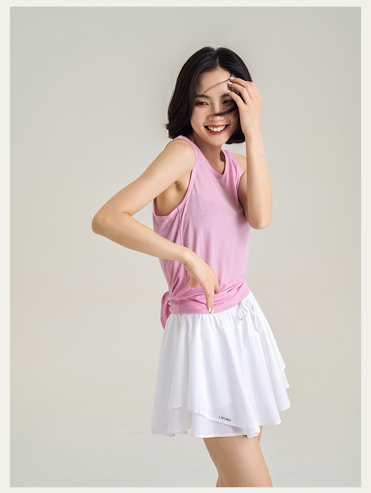 【100%棉】圆领运动休闲短裙套装 透气吸汗上衣+短裙 裤子松紧带内衬 防走光
