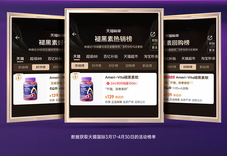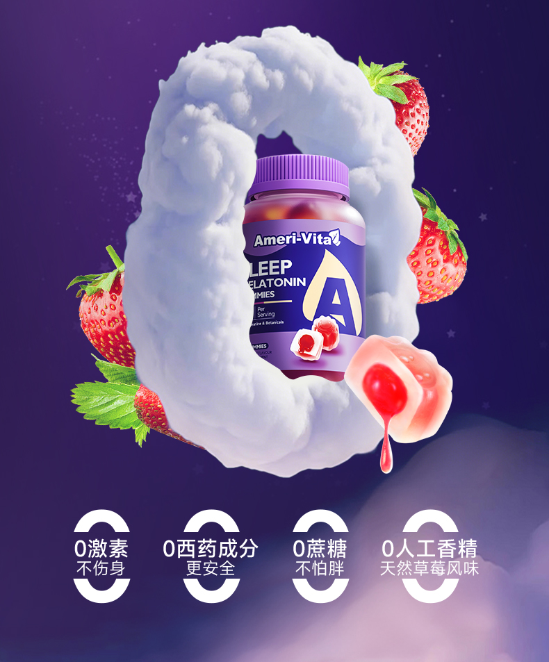 【快速安稳入睡的秘密神器】Ameri-Vita亚美唯他 加强版 3mg褪黑素软糖 60粒/瓶 Q 弹葡萄味,轻松助眠 睡个美容觉 醒来皮肤状态直接开挂~