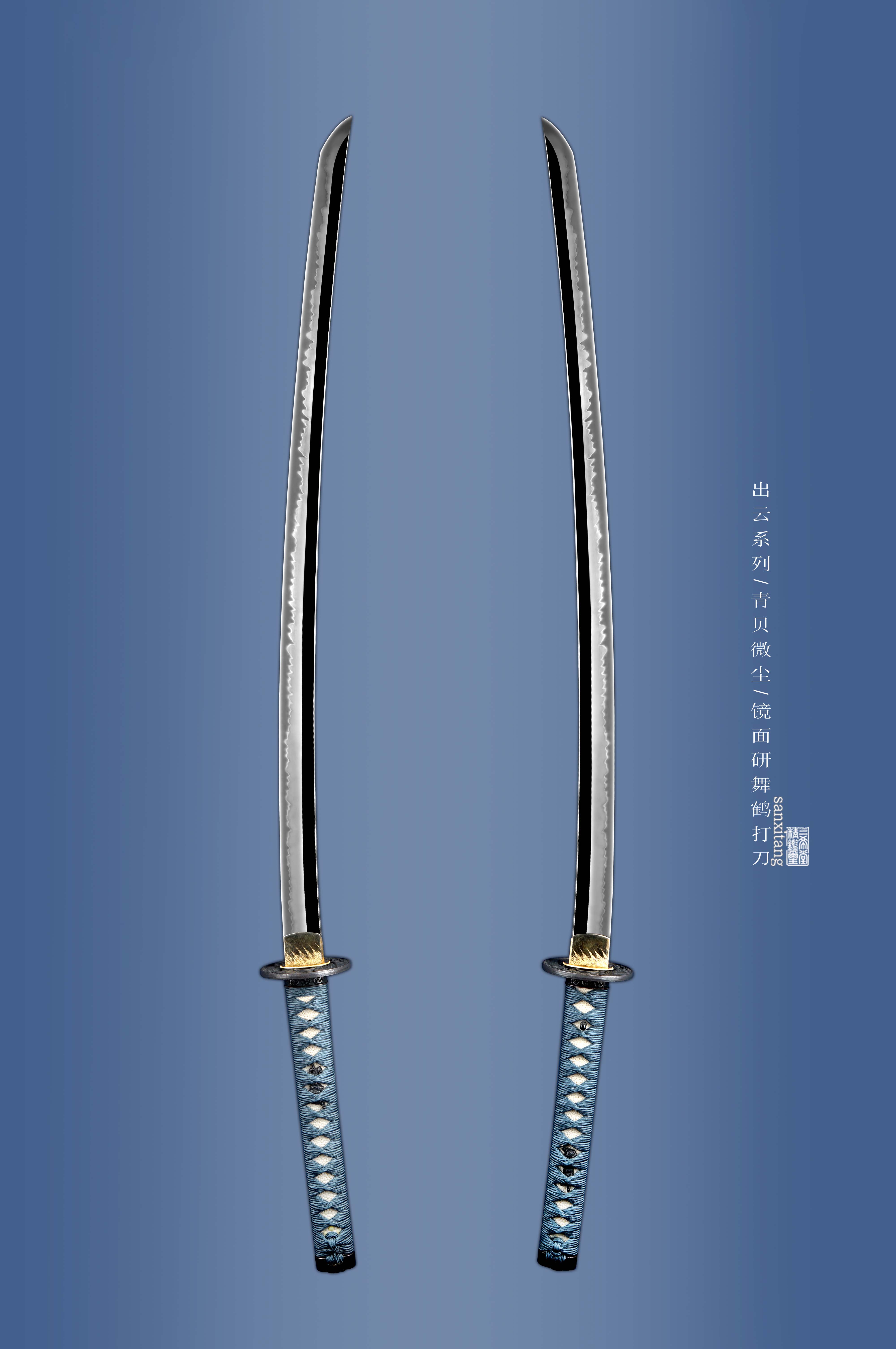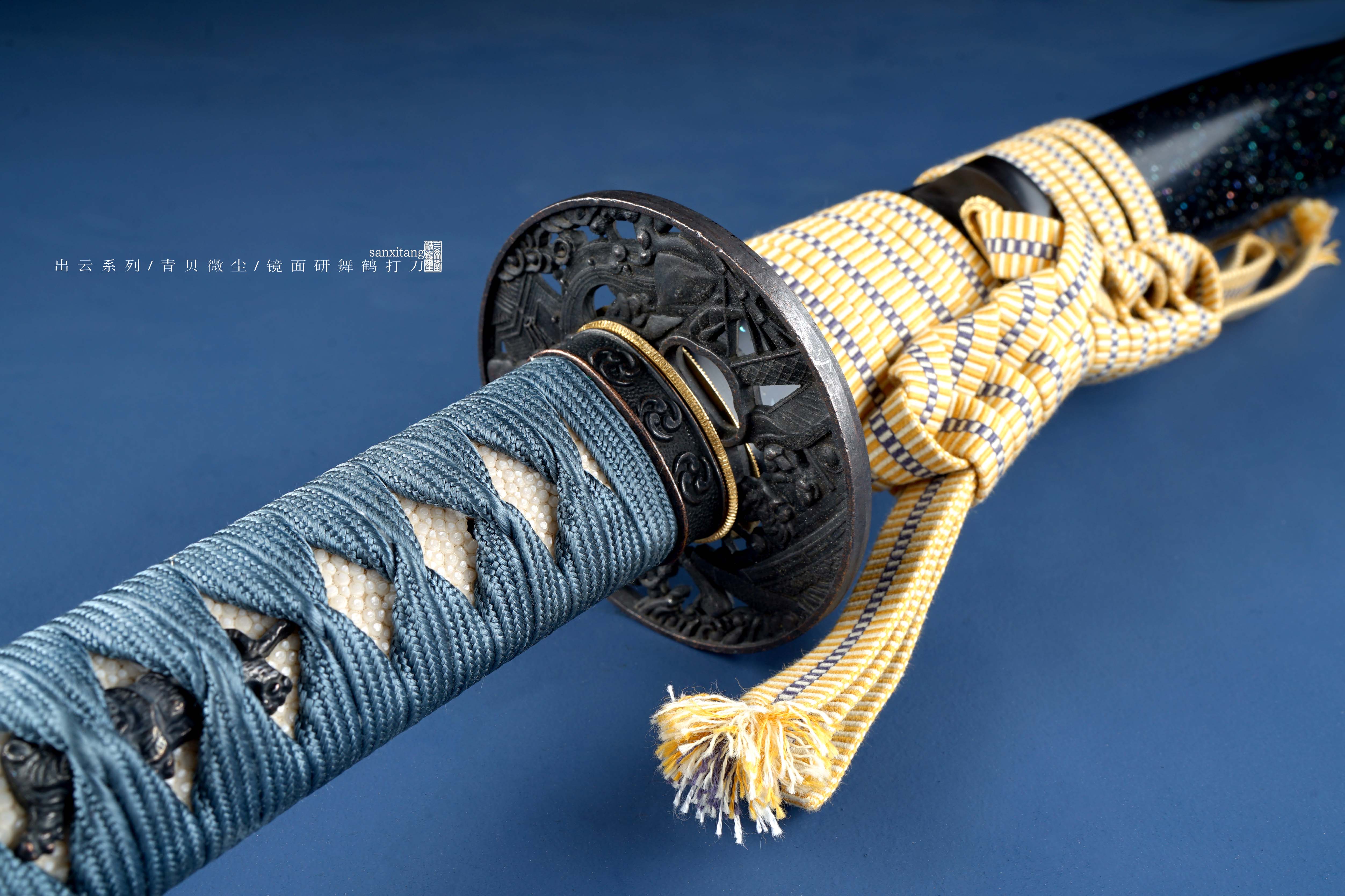新做的全手工作品 所有配件都是一比一制作的 我们正式开始给大家定制日本刀 这只和普通版本区别在于刀条烧刃研磨会更好一些 鞘是一比一定制的 漆也复杂一些 我们自己锻打的8000余层高碳钢 传统方法覆土烧刃 刀的弧度是淬火的时候自然形成的 手工用各种磨刀石一道一道磨出来的 点线面清晰分明 线条挺拔立体 三色明显 表面柔顺细腻 柄和鞘不再像入门级别的一样是通用鞘了 都是全手工根据刀条一比一制作的 贴合度可以说是完美 镶天然牛角型制还原日式味道 这一步的成本能买一把入门级别的刀了 日本进口添丝柄卷+大颗粒珍珠鱼皮 手工缠绳 质感相当不错 传统天然大漆鞘 青贝微尘涂鞘 这是日本一个非常经典的漆艺 艺术感很不错 用在很多名刀拵上面 这只作品可以说是现代美学和传统工艺的完美结合 我自己很满意的一把好刀 非常感谢各位支持 这只作品大家自己玩或者送礼都相当合适!!