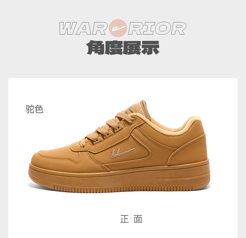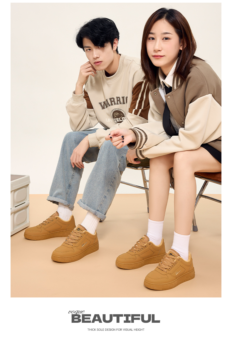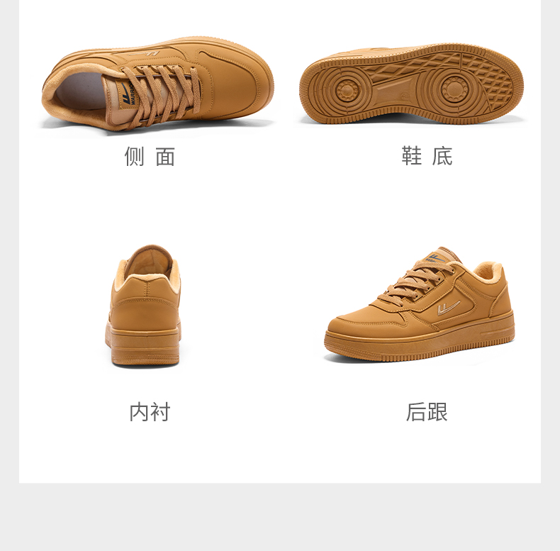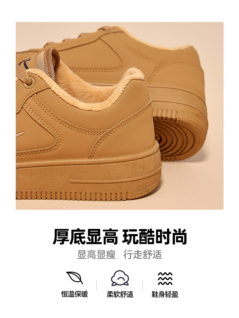 回力男鞋板鞋小麦色冬季新款美拉德鞋子男款加绒加厚棉鞋情侣鞋