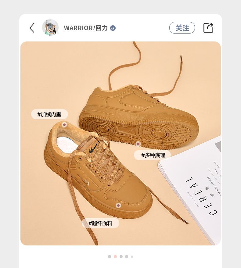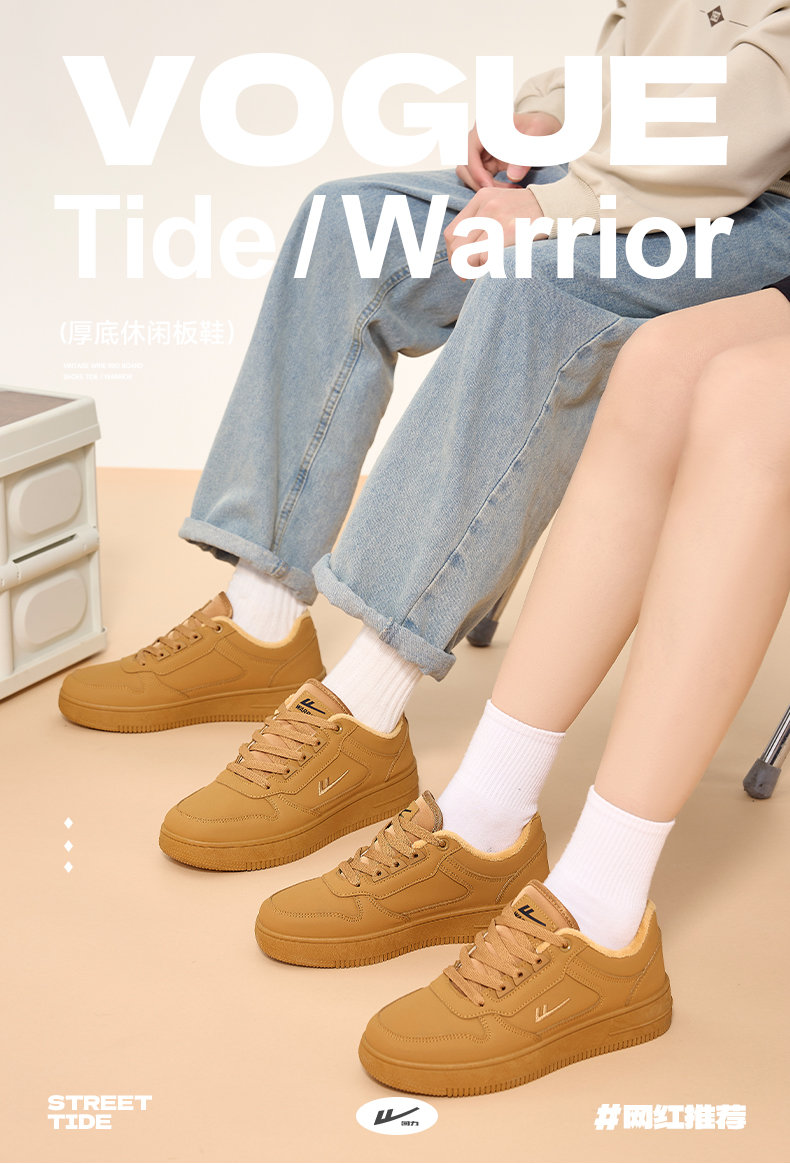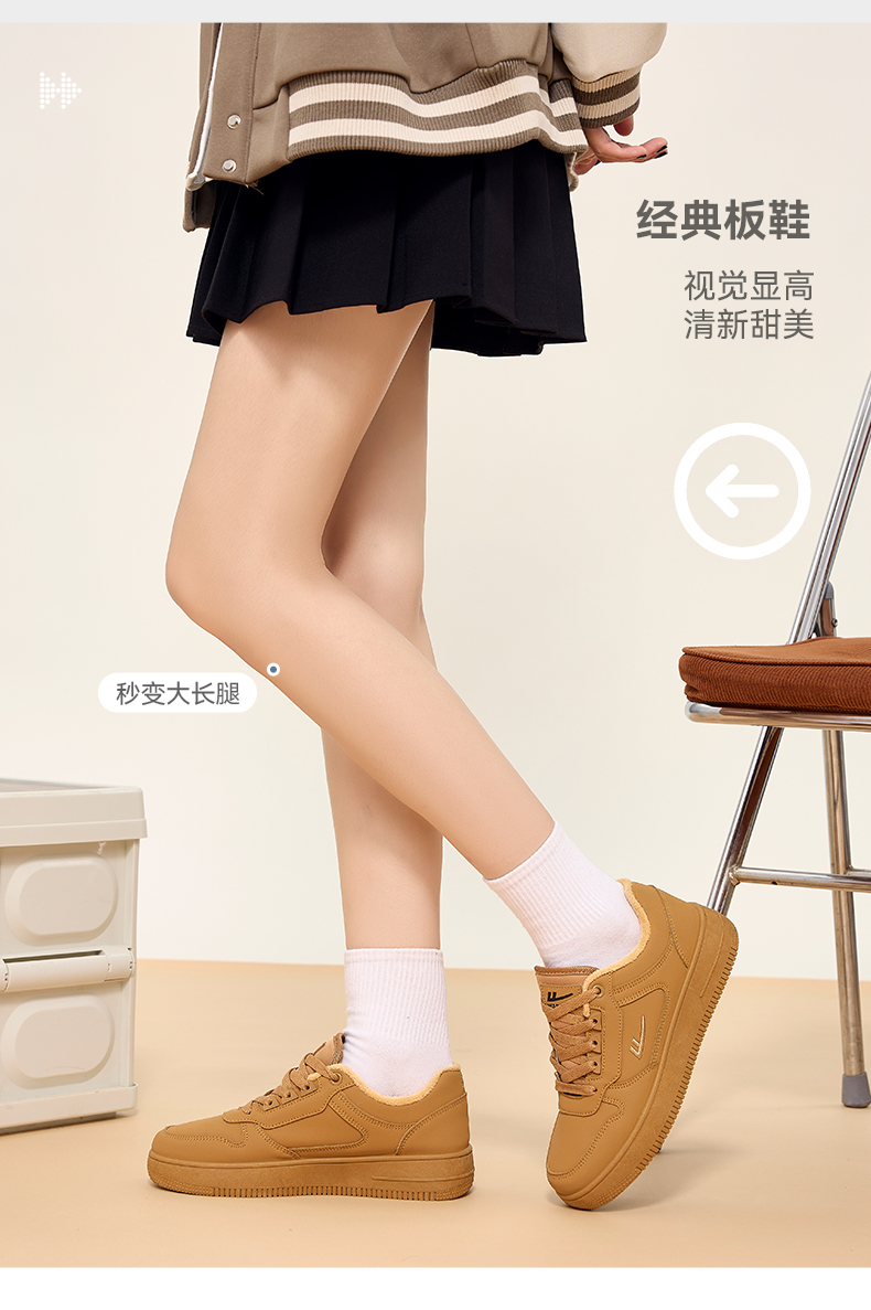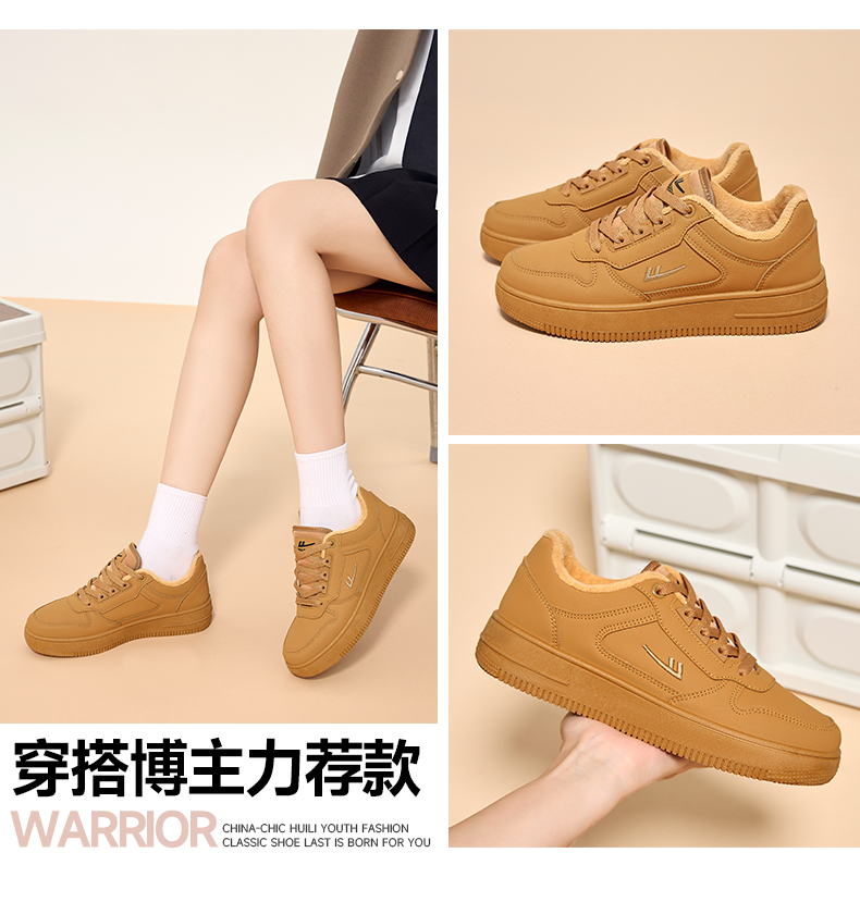 回力男鞋板鞋小麦色冬季新款美拉德鞋子男款加绒加厚棉鞋情侣鞋